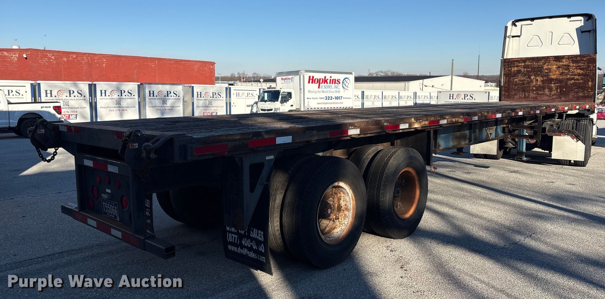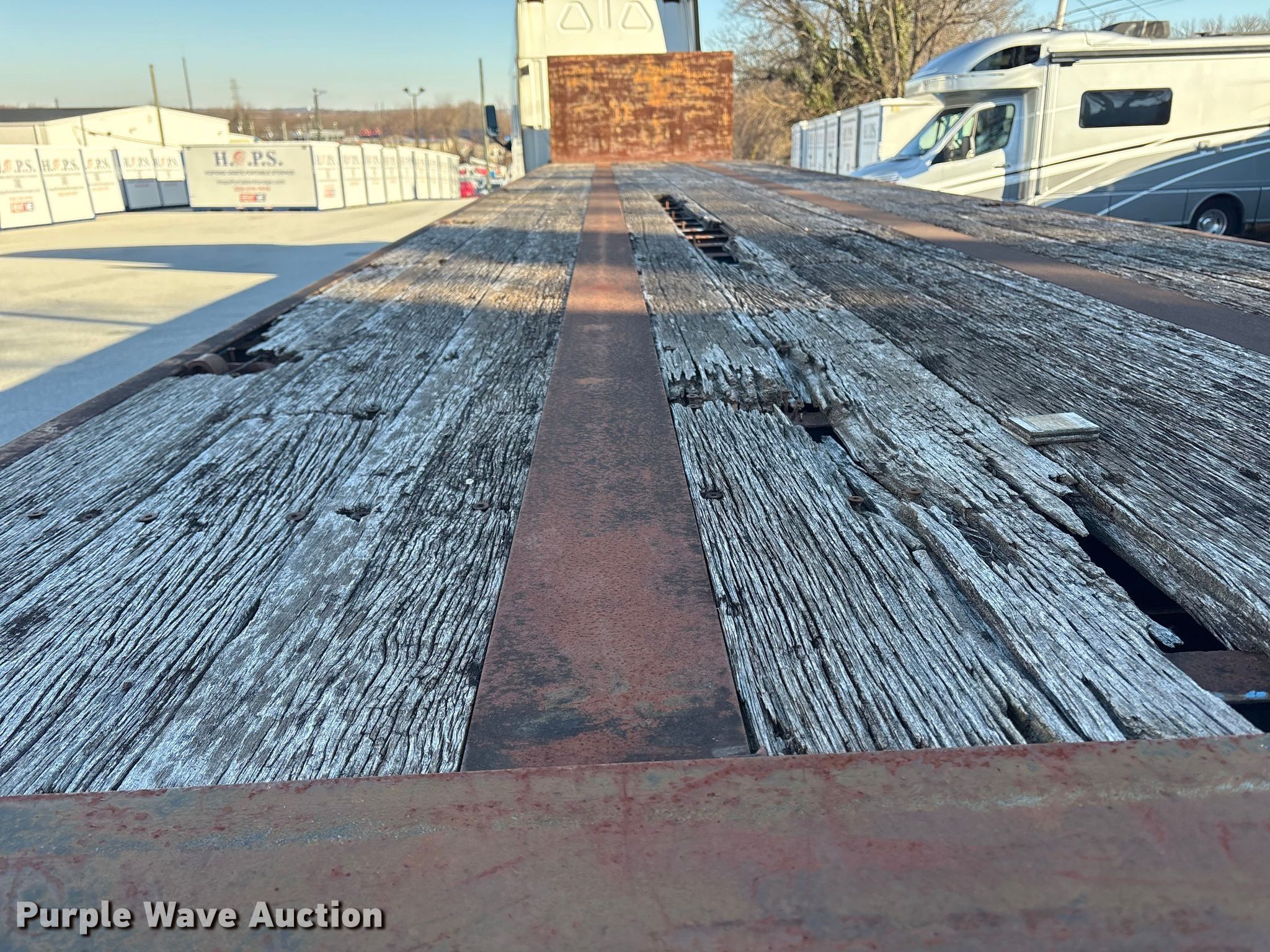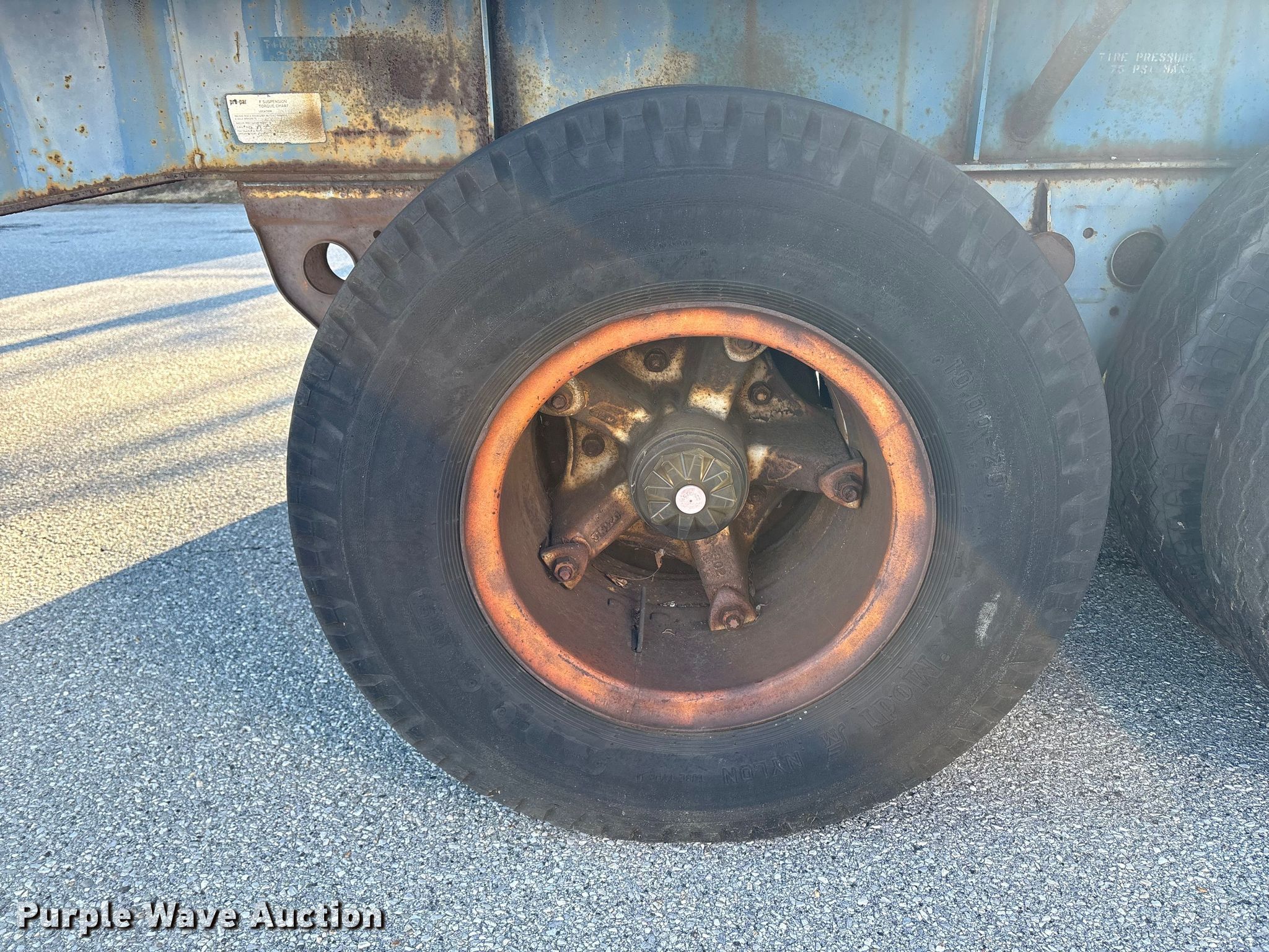 1986 Fruehauf PB80-F2-40 flatbed trailer. VIN: 1H4P04024GF115102. Dimensions Overall Length: 40', Width: 96", Deck Length: 40', Width: 96", Deck height: 57". Features Deck type: Wood. Chassis Landing gear: Dual, Suspension: Spring, Brakes: Air, Axles: Tandem, GVWR: 68,000 lbs. Tires Steel wheels, Size: 10.00-20. Notes Deck boards damage, Tires damaged, dry rot, Semi truck not included. Delaware title. Title distribution may be delayed up to 14 days from verification of funds. Hopkins & Sons Inc. New Castle, DE 19720