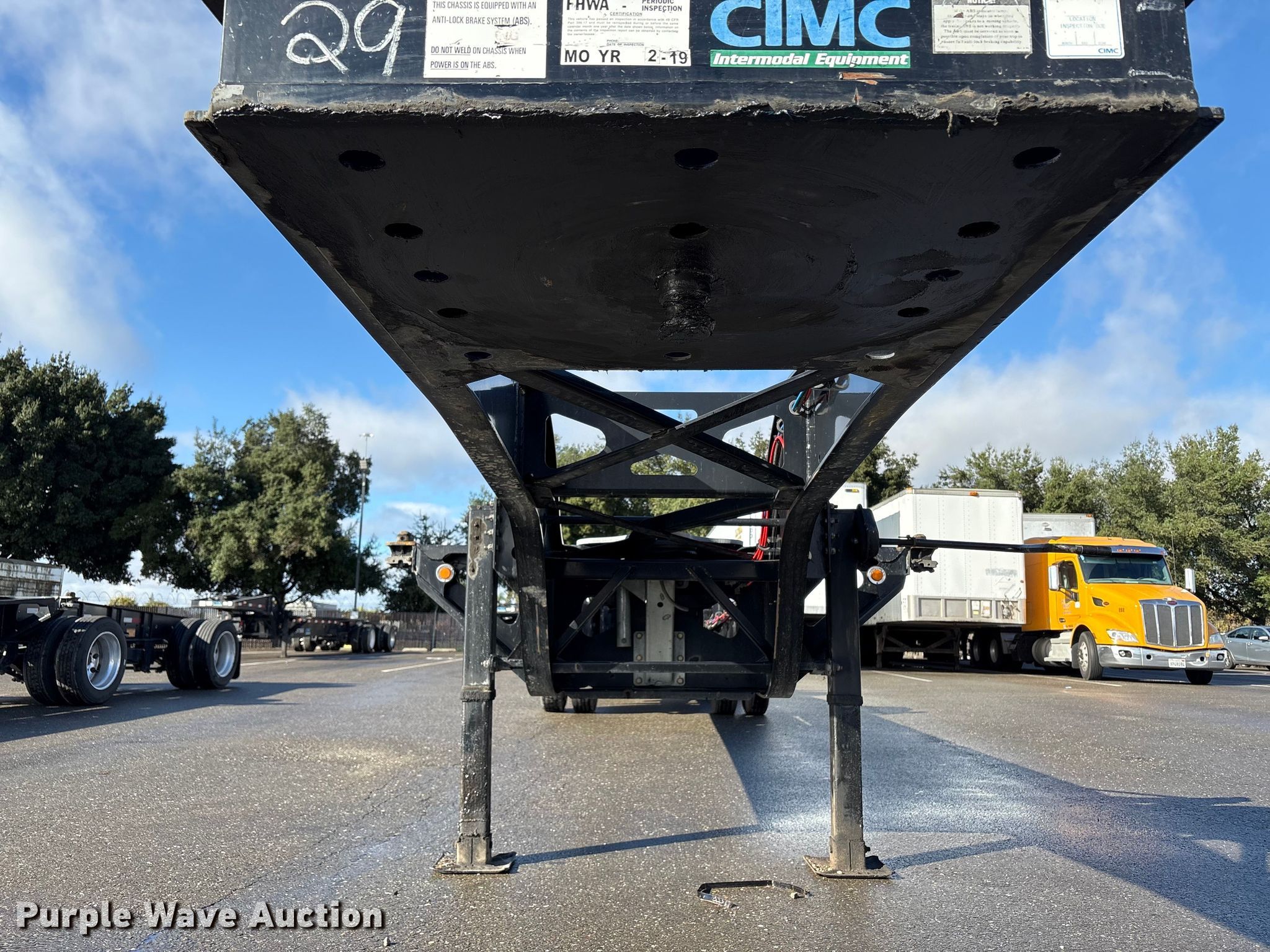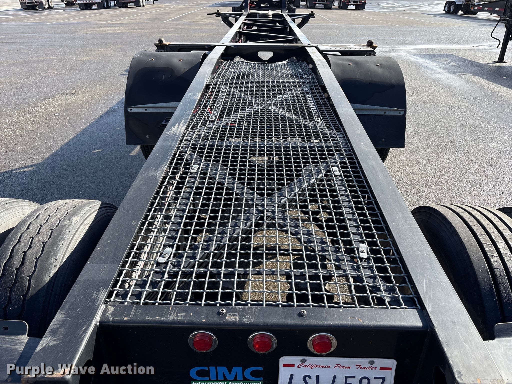 2018 CIMC SZJ9347TJZ54 container trailer. VIN: LJRC43267J1010288. Dimensions Overall Length: 40', Width: 96". Features Deck type: Steel. Chassis Landing gear: Dual, Suspension: Spring, Brakes: Air, Axles: Tandem, Spread, GVWR: 75,000 lbs, GAWR: 20,000 lbs. Tires Aluminum wheels, Size: 255/70R22.5. California title. Title distribution may be delayed up to 14 days from verification of funds. California Freight. Modesto, CA 95357
