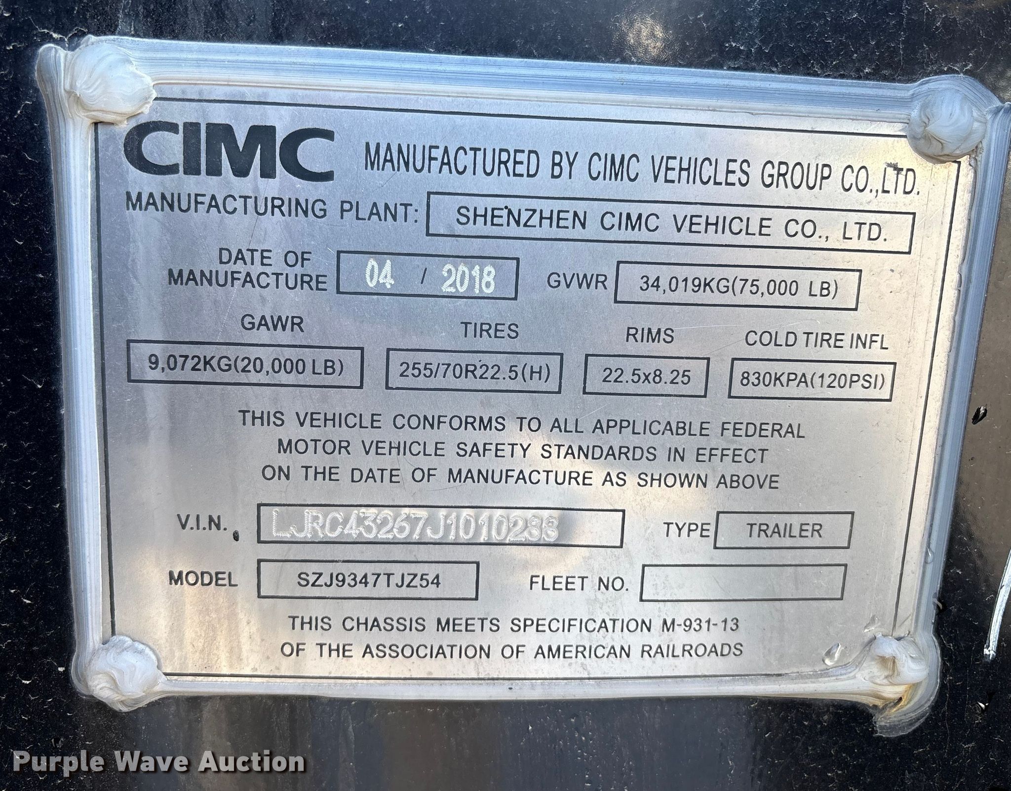 2018 CIMC SZJ9347TJZ54 container trailer | Thursday April 16 Truck and Trailer Auction