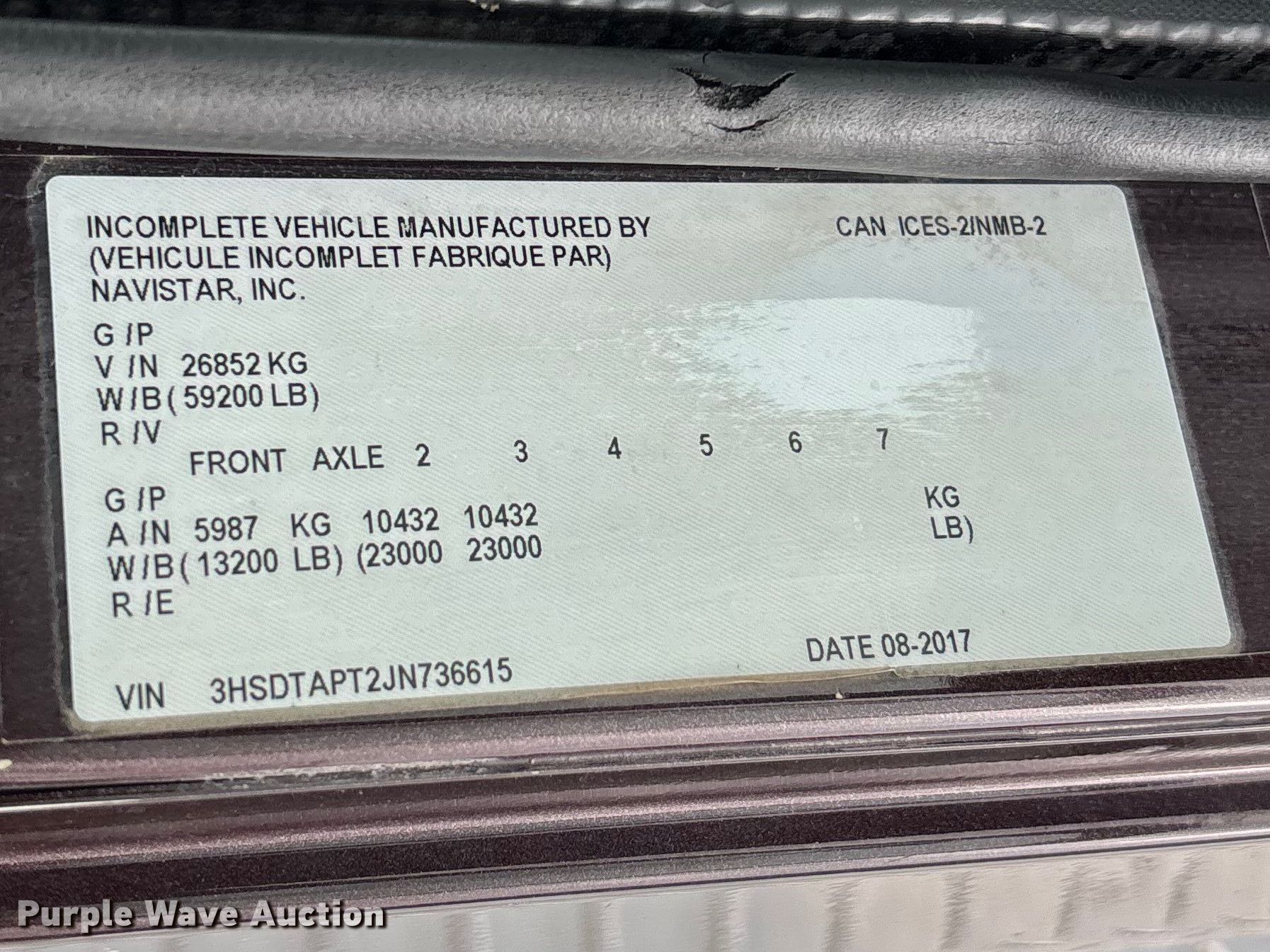 - VIN: 3HSDTAPT2JN736615