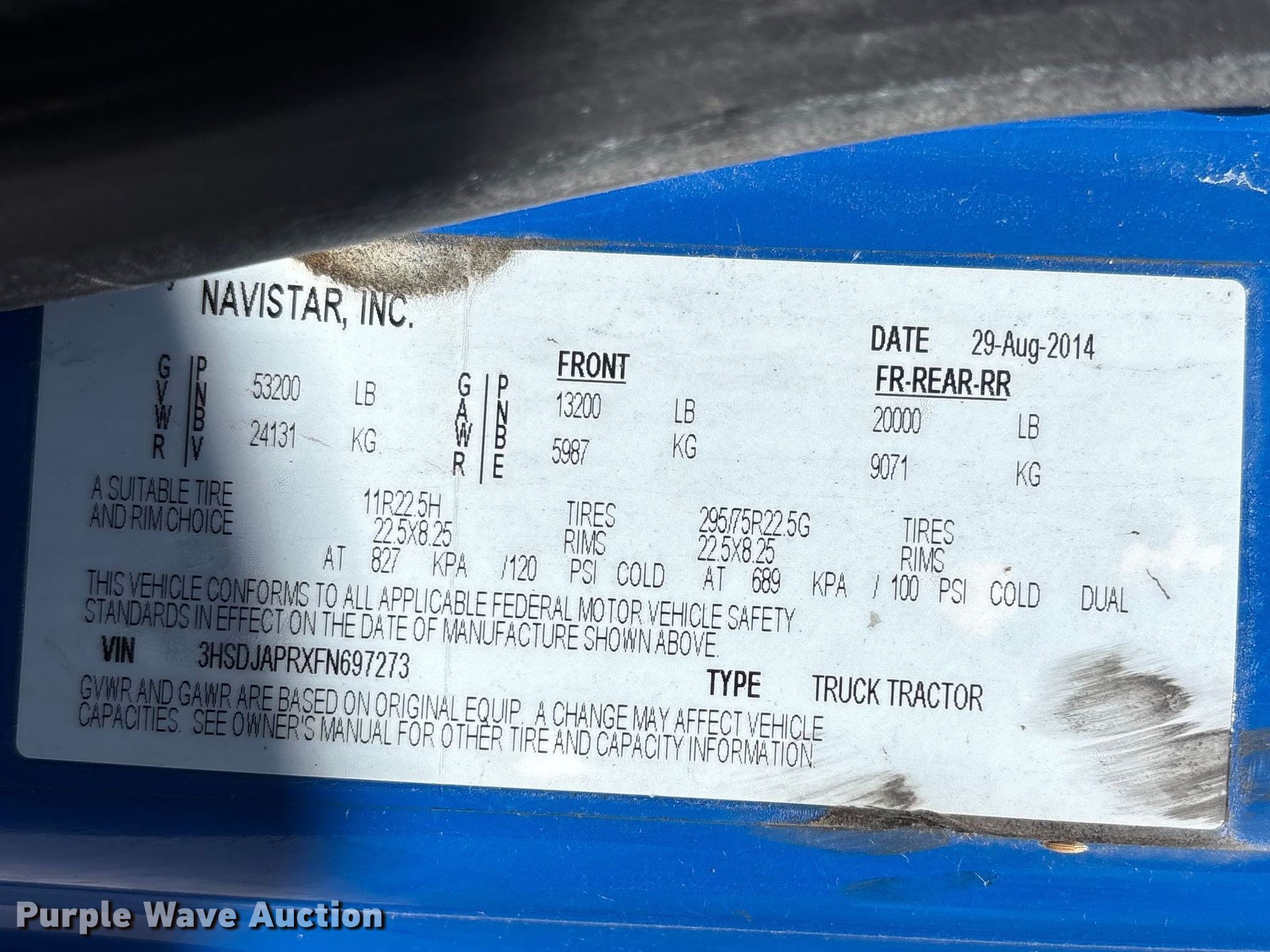 Purple Wave is selling a used Truck Tractor in Missouri. This item is a 2015 International Prostar+ 122 semi truck with the following: Miles: 813,439 on odometer, VIN: 3HSDJAPRXFN697273