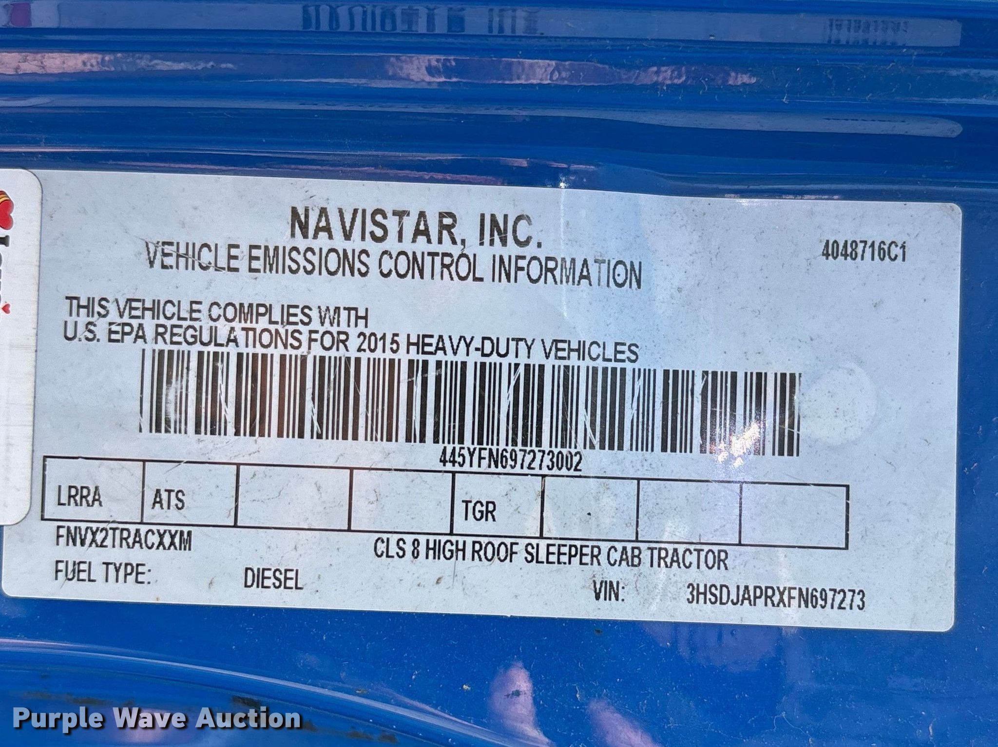 This 2015 International Prostar+ 122 semi truck will sell to the highest bidder regardless of price.