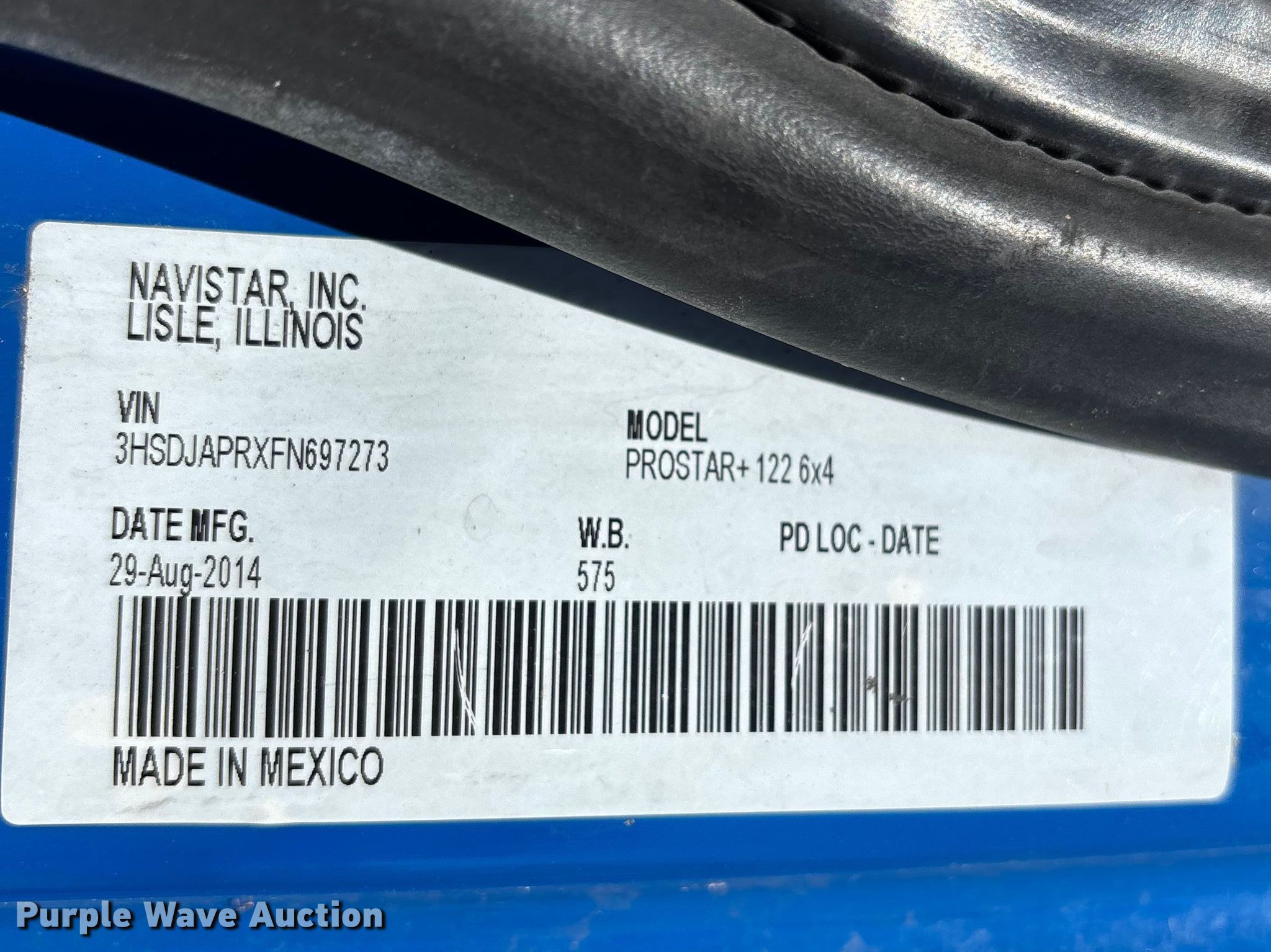 Take a look at this used 2015 International Prostar+ 122 semi truck being sold on April 16th, 2026 in the Thursday April 16 Truck and Trailer Auction made by International. Take a look at all of the item information below or take a look at similar auctions for Trucks.