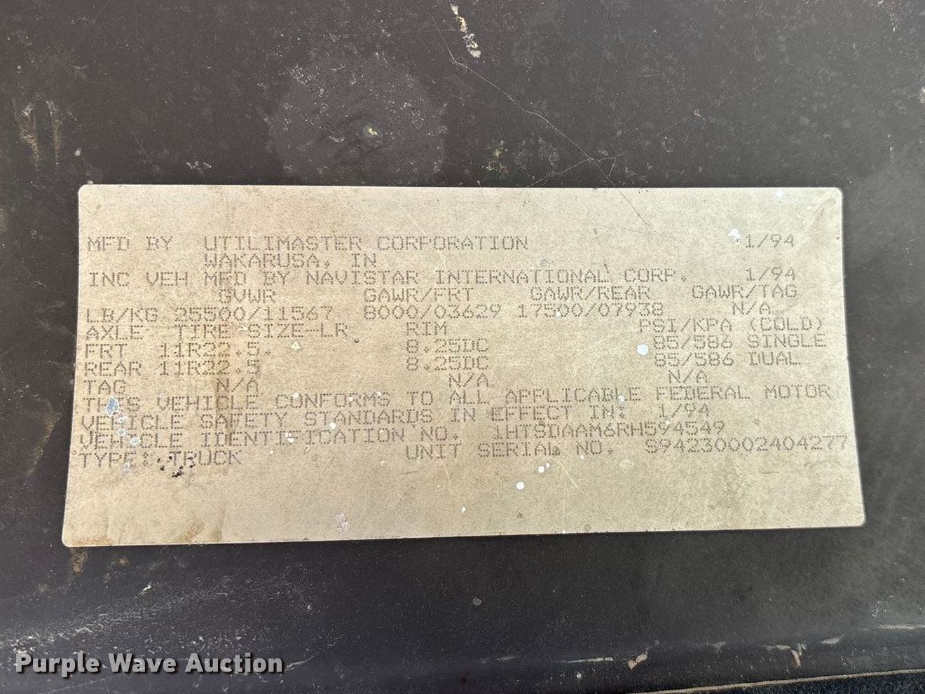 Purple Wave is selling a used Service Truck in Missouri. This item is a 1994 International 4900 utility / service truck with the following: Miles: 183,940 on odometer, VIN: 1HTSDAAM6RH594549