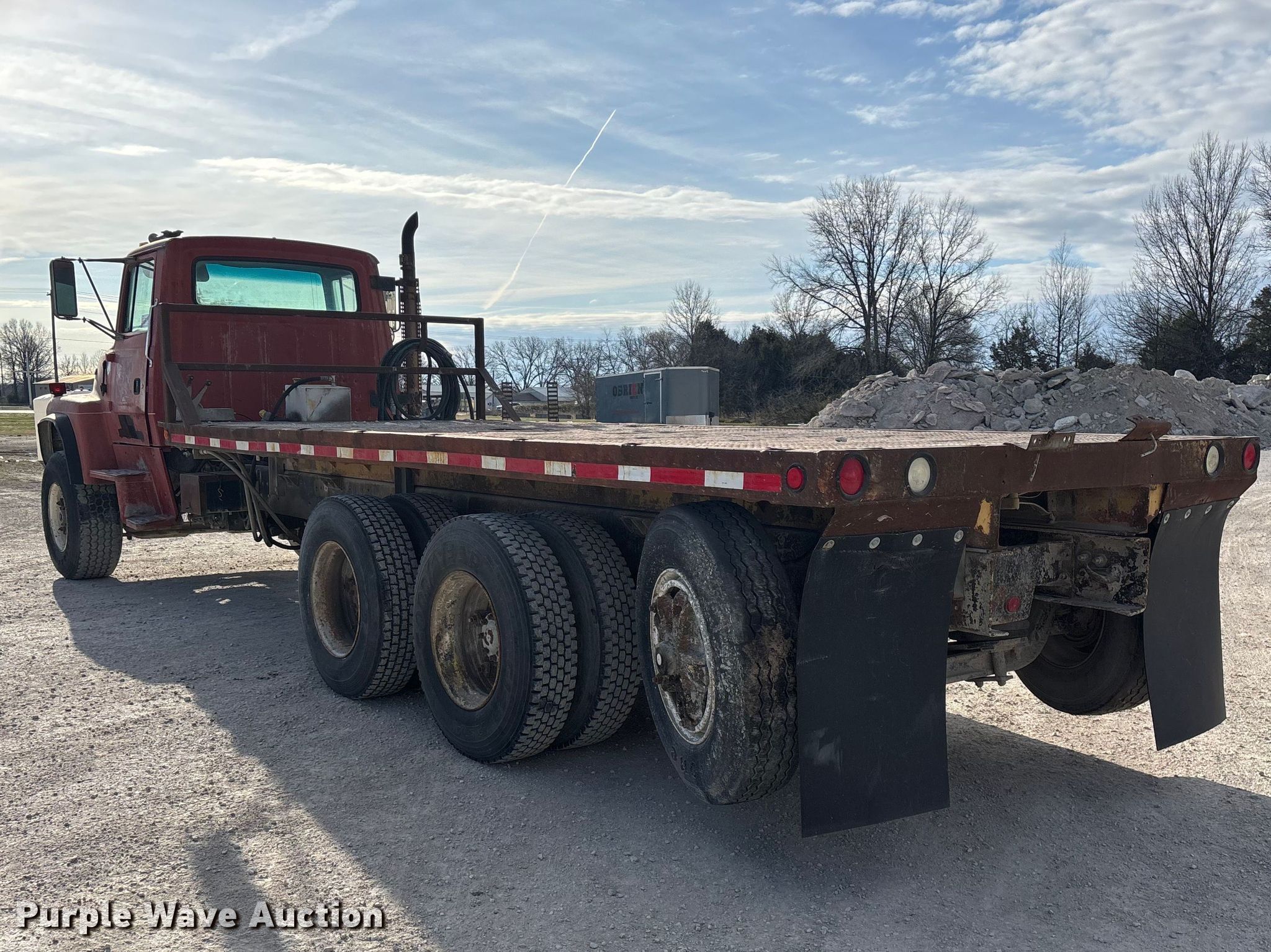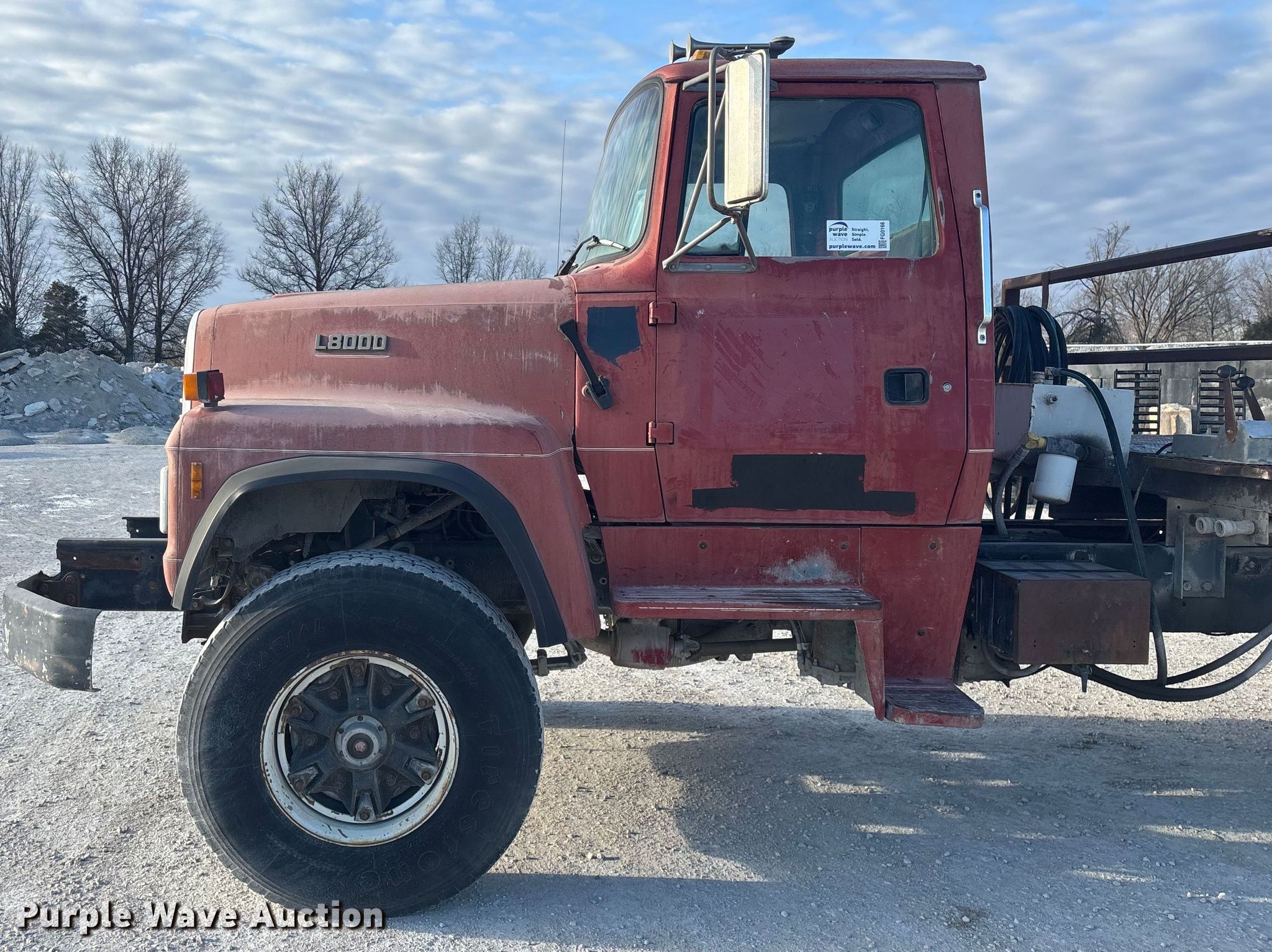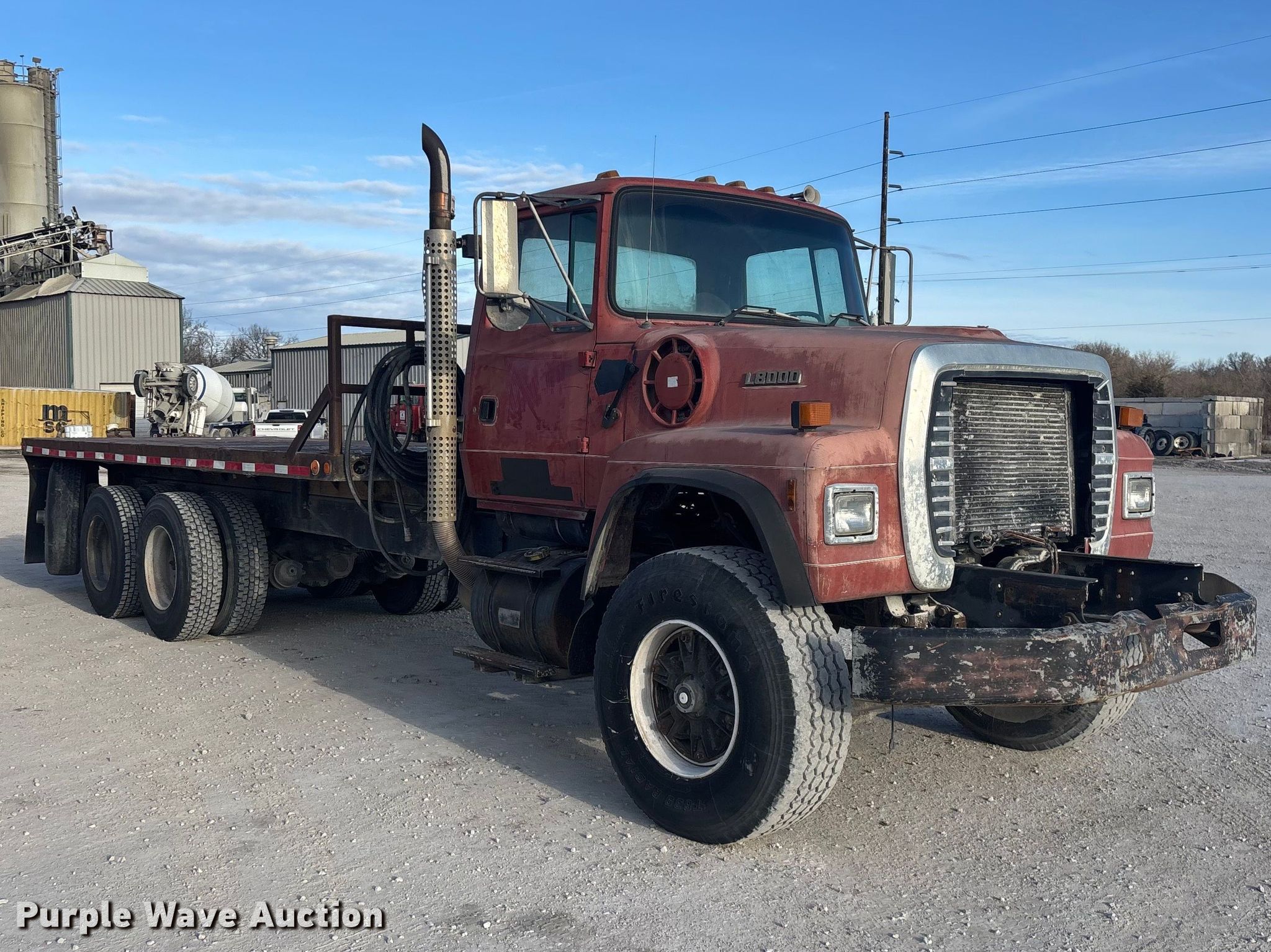 This 1997 Ford L8000 flatbed truck will sell to the highest bidder regardless of price.