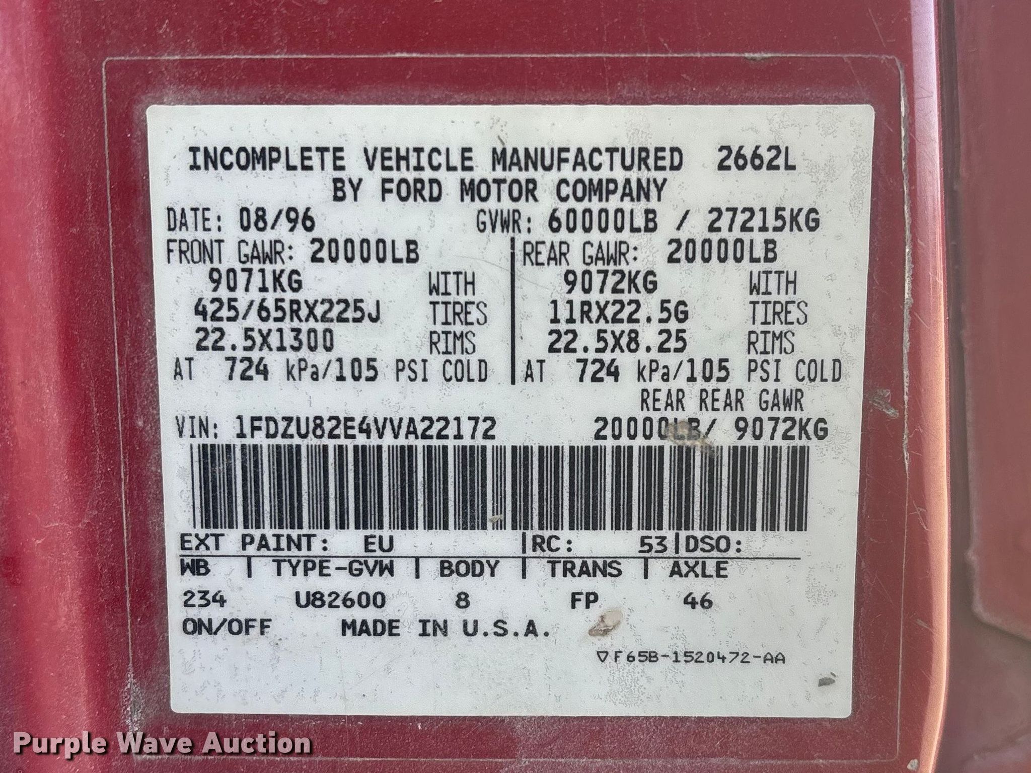 - VIN: 1FDZU82E4VVA22172