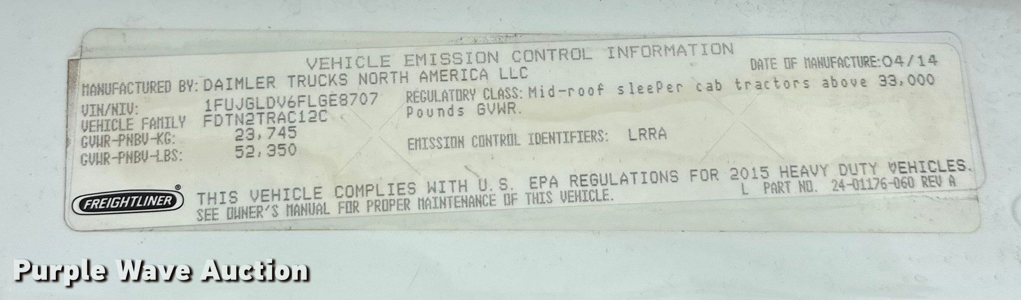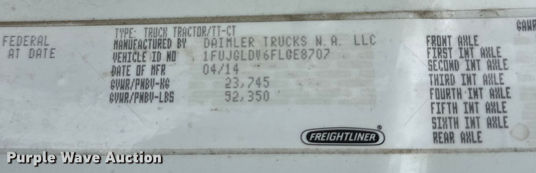 - VIN: 1FUJGLDV6FLGE8707