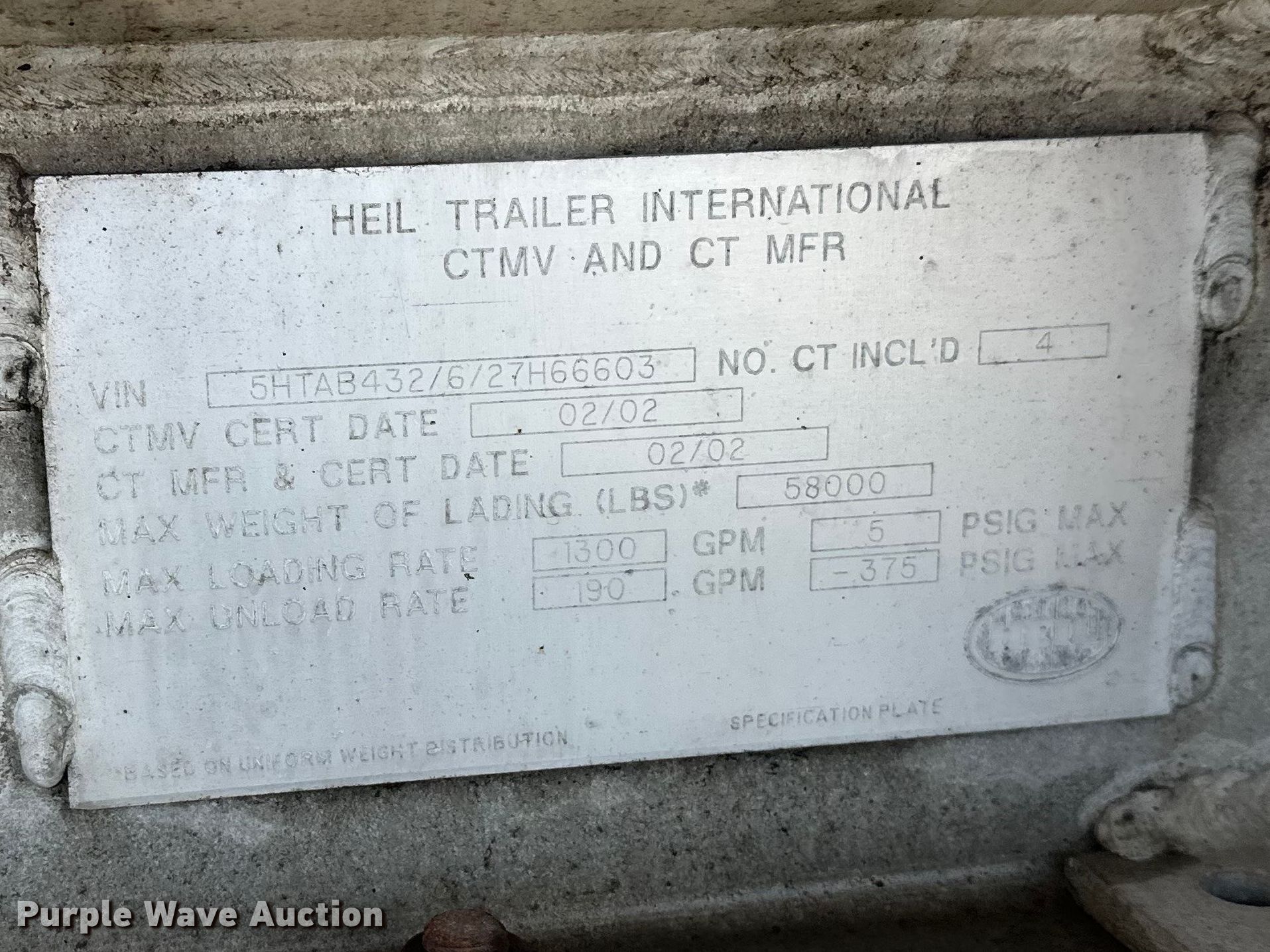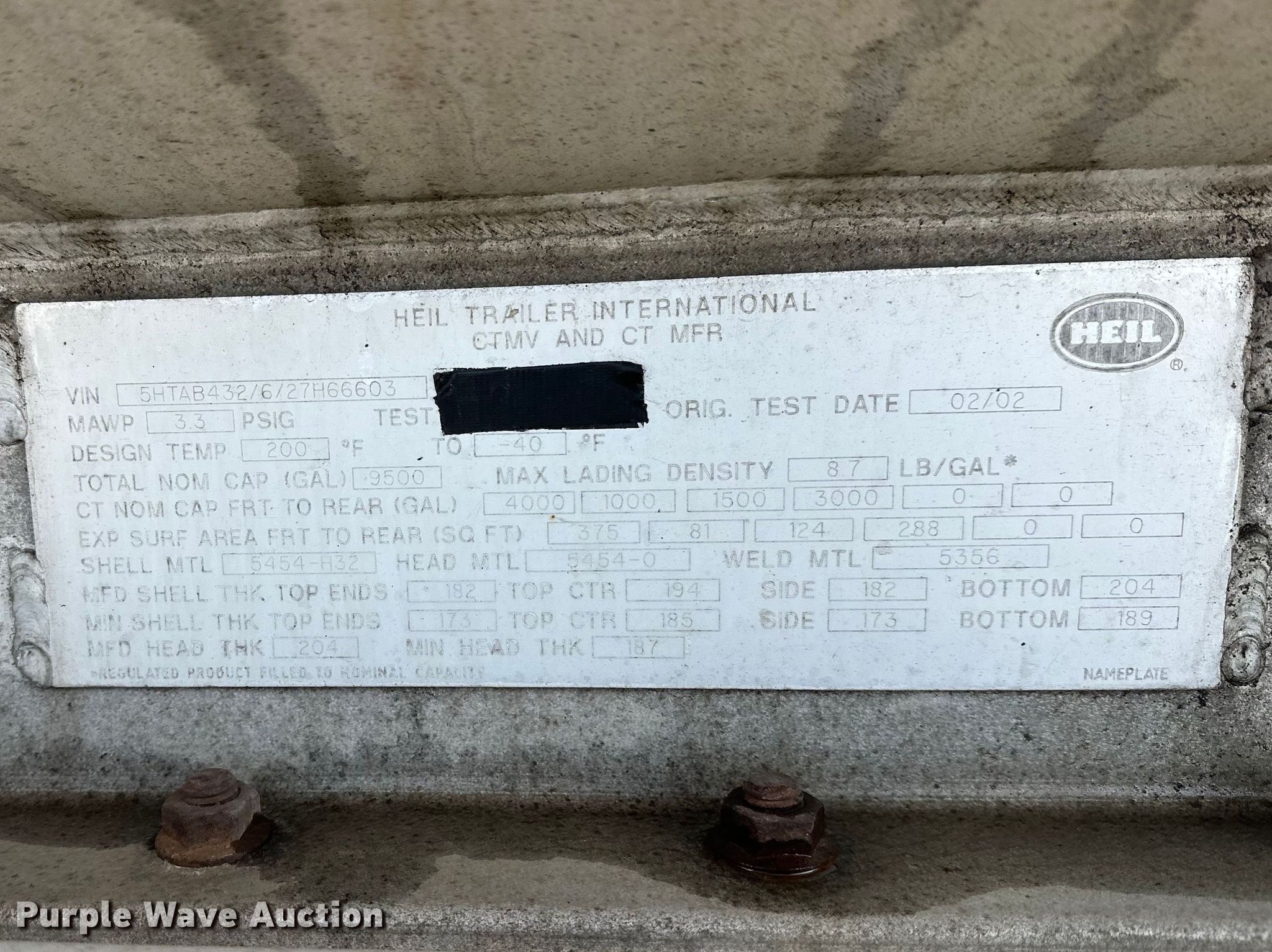 Purple Wave is selling a used Tank Trailer in Minnesota. This item is a 2002 Heil tank trailer with the following: VIN: 5HTAB432627H66603, Unit #: 025600