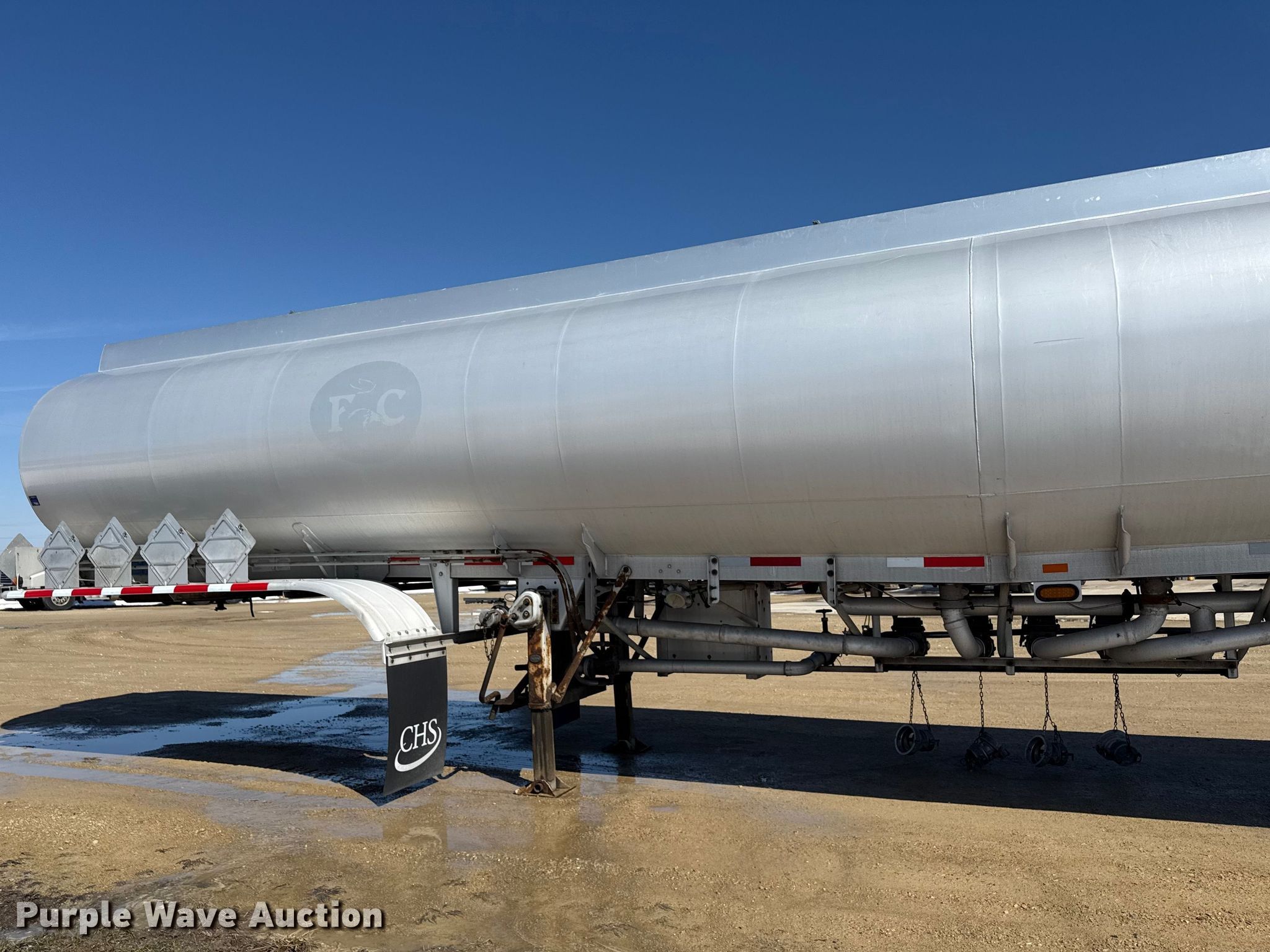 2009 Heil tank trailer. VIN: 5HTAM442197H74837, Unit #: 095600. Dimensions Overall Length: 44', Width: 102". Features Tank type: Aluminum Capacity: 9,500 gallons, Compartments: 4, Outlet valves: 4 Size: 6", Relief valve size: 3", No. of manways/manholes: 4 Width: 10", Full length walkway, Pump Outlet size: 3", (5) hoses (2) 20' L x 3" diameter, (2) 20' L x 2 " diameter, 10' L x 3" diameter, Fittings. Chassis Landing gear: Dual, Suspension: Air, Brakes: Air, Axles: Tandem, GVWR: 68,000 lbs. Tires Aluminum wheels, Size: 445/50R22.5. Notes Possible suspension issues. Minnesota title. Title distribution may be delayed up to 30 days from verification of funds. CHS, Inc.. Edgerton, WI 53534
