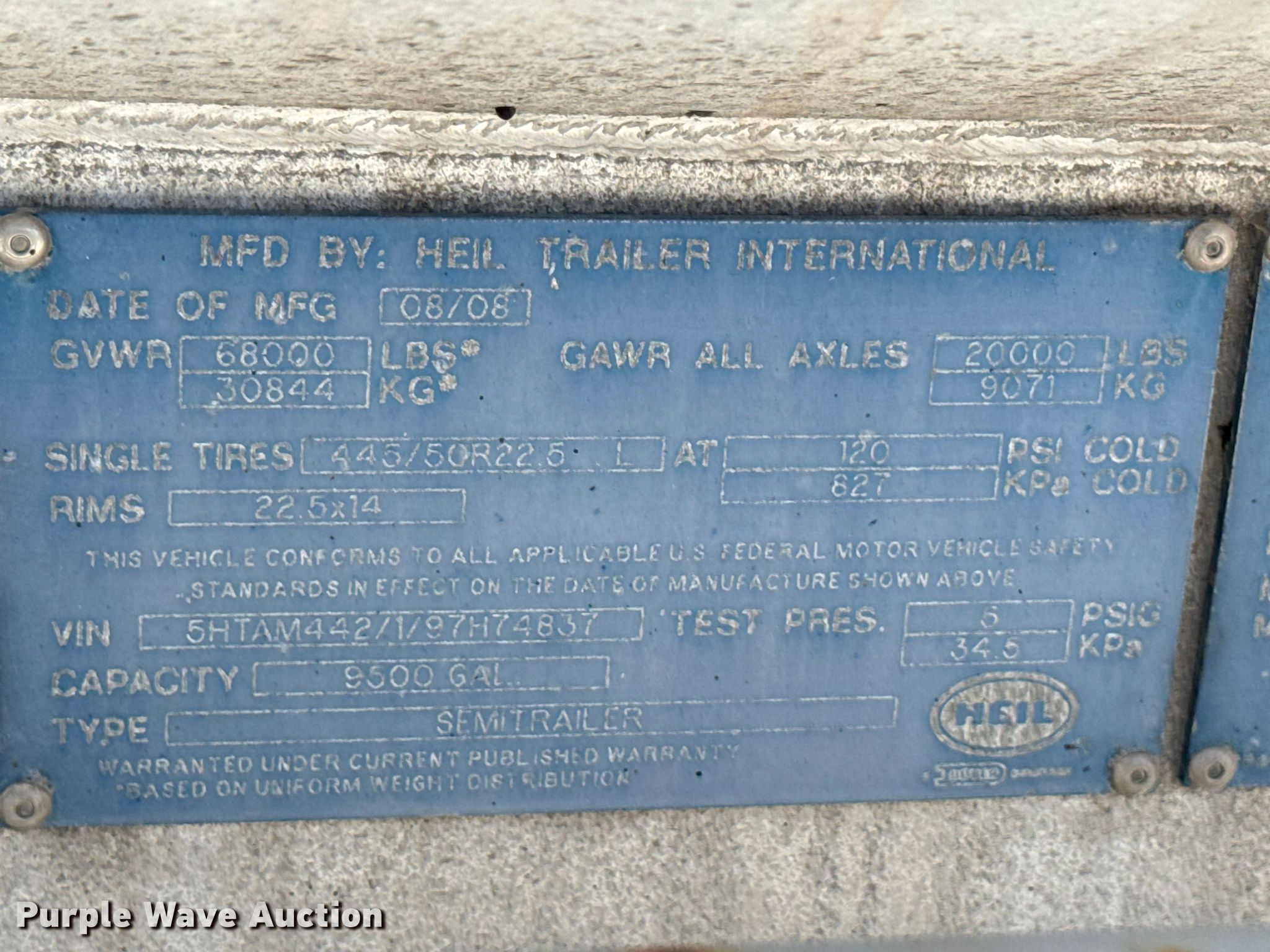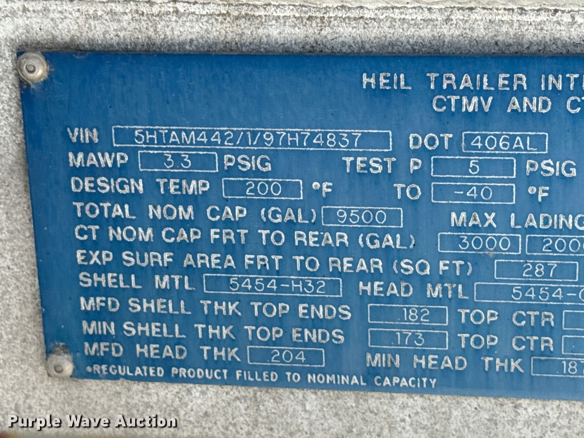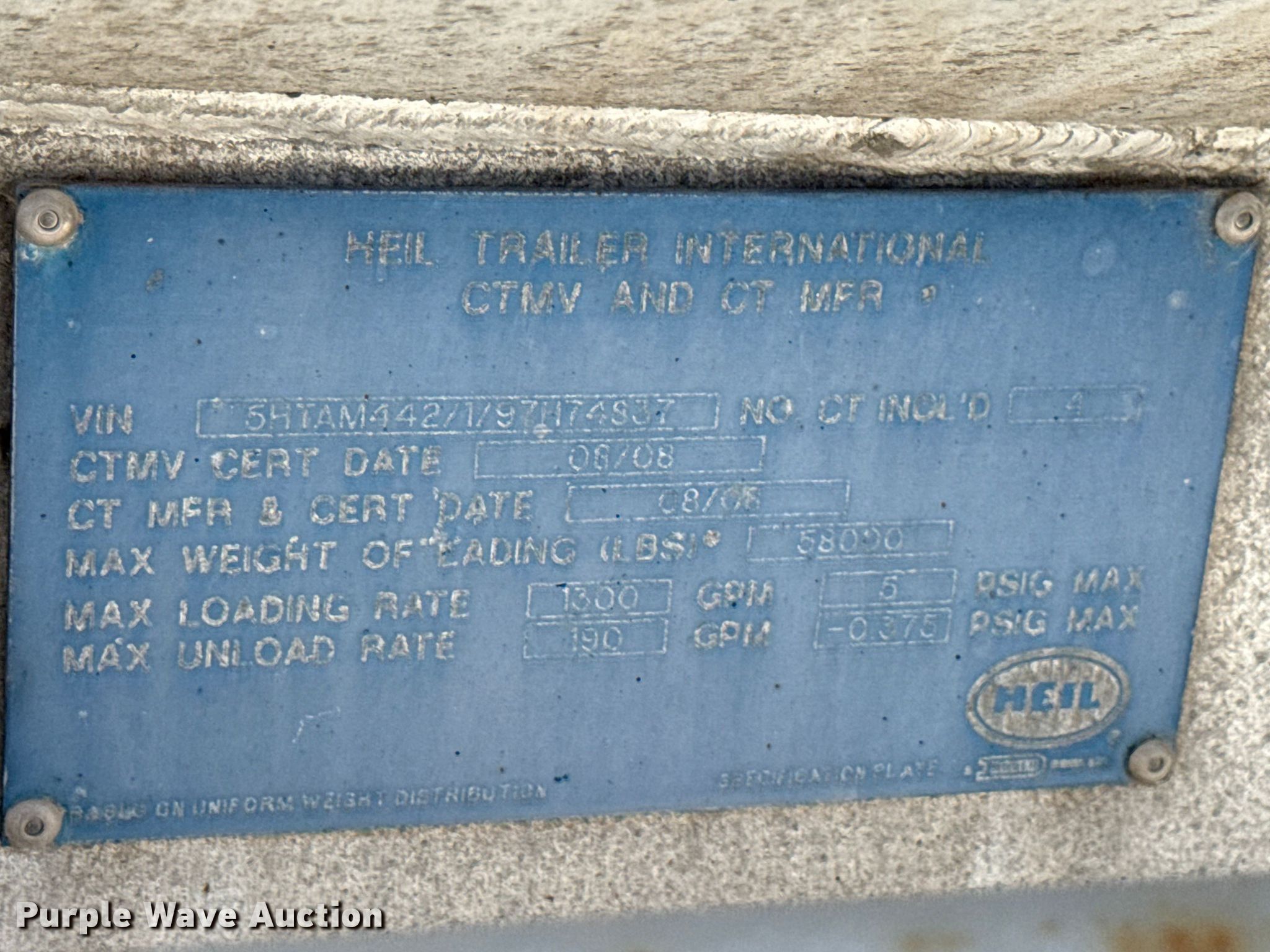 Purple Wave is selling a used Tank Trailer in Wisconsin. This item is a 2009 Heil tank trailer with the following: VIN: 5HTAM442197H74837, Unit #: 095600