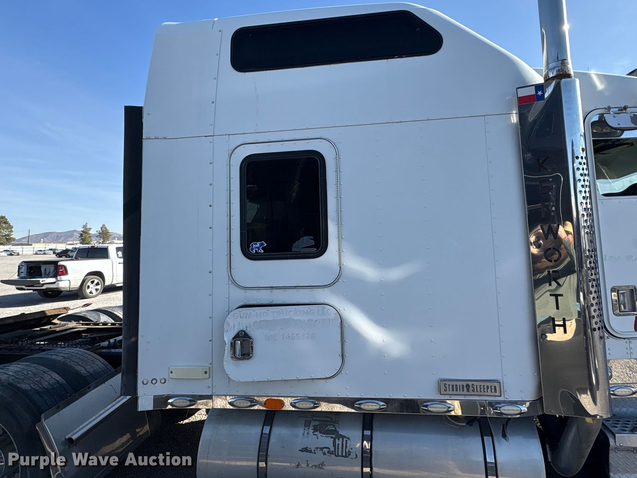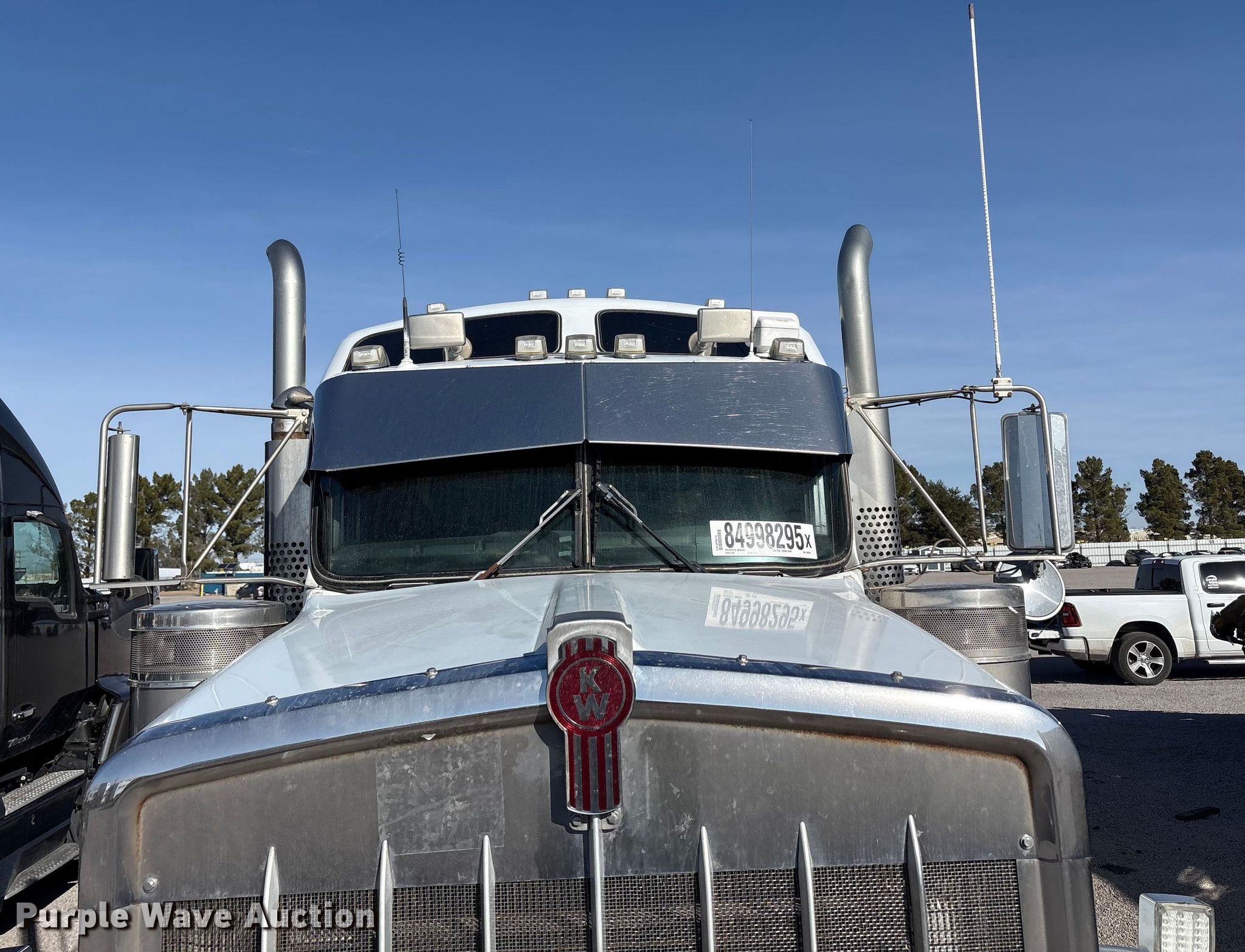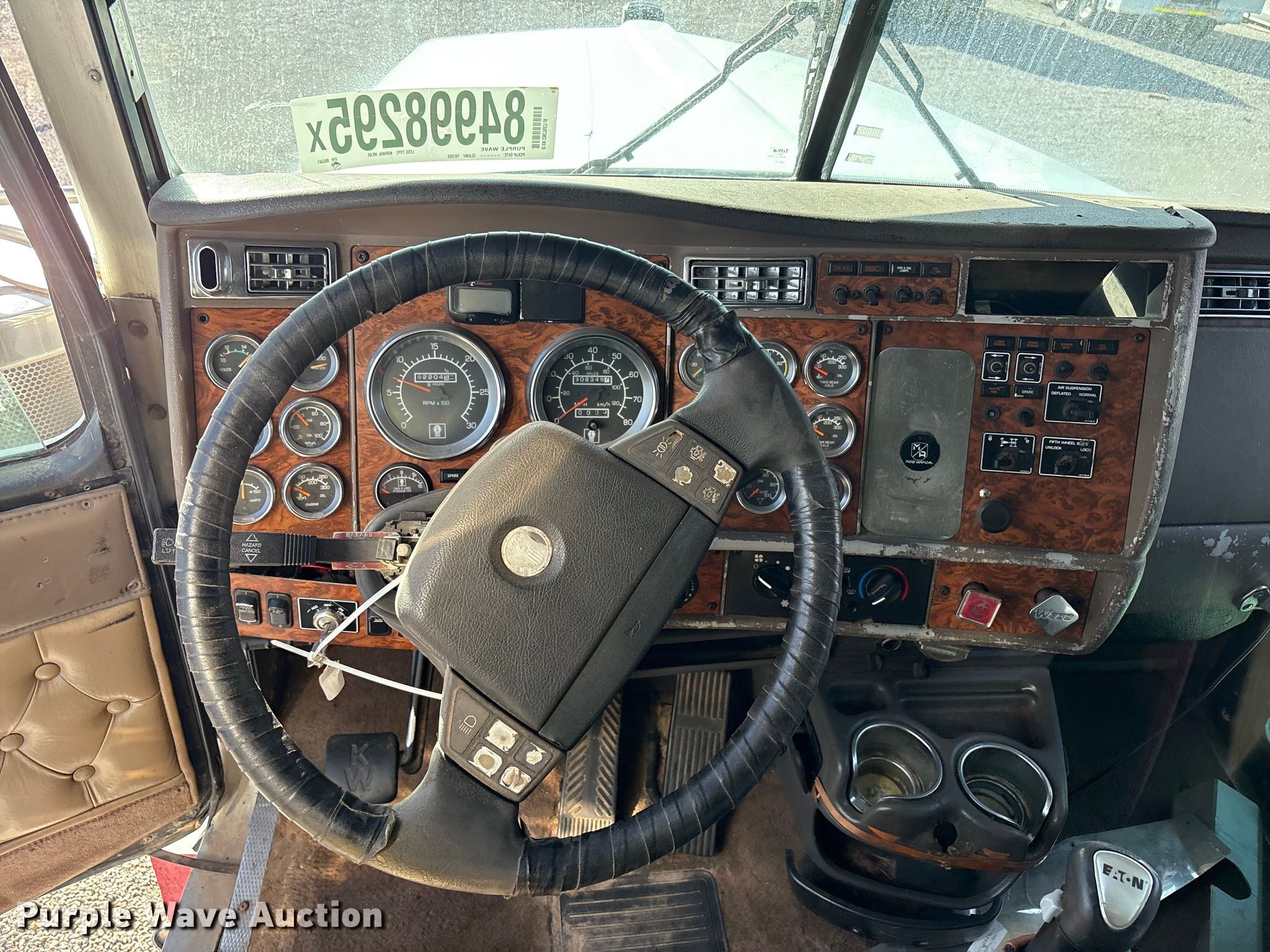 2002 Kenworth W900B semi truck. Miles: 908,350 on odometer, Hours: 62,205 on meter, VIN: 1XKWD49X92R885341, Unit #: 84998295. Engine Cummins, Displacement: 14.9L, Cylinders: 6, Fuel type: Diesel, Engine brake. Transmission Eaton Fuller, Manual, Speed: 10. Chassis Axles: Tandem, Differential lock: Inter-axle, Suspension: Air Dump valves, Brakes: Air. Interior AC, Heat, Heated mirrors, Power windows, Cruise control, Sleeper Sleeper length: 68", Beds: Single, Rear climate control. Features Deck plate: Aluminum, Fifth wheel type: Air operated, Sliding, Fuel tank: Dual. Tires Front: 275/80R22.5, Rear: 11R24.5. Notes Glass cracked, Windshield chipped or cracked, Jump start required during on-site data collection. Repossessed item, stored at a secured facility. Please review REQUIRED REMOVAL INSTRUCTIONS. Titles will be distributed after confirmation of payment and removal. Washington title. Title distribution may be delayed up to 30 days from verification of funds. Lender Owned. 501 Valley Chili Road. Anthony, TX 79821