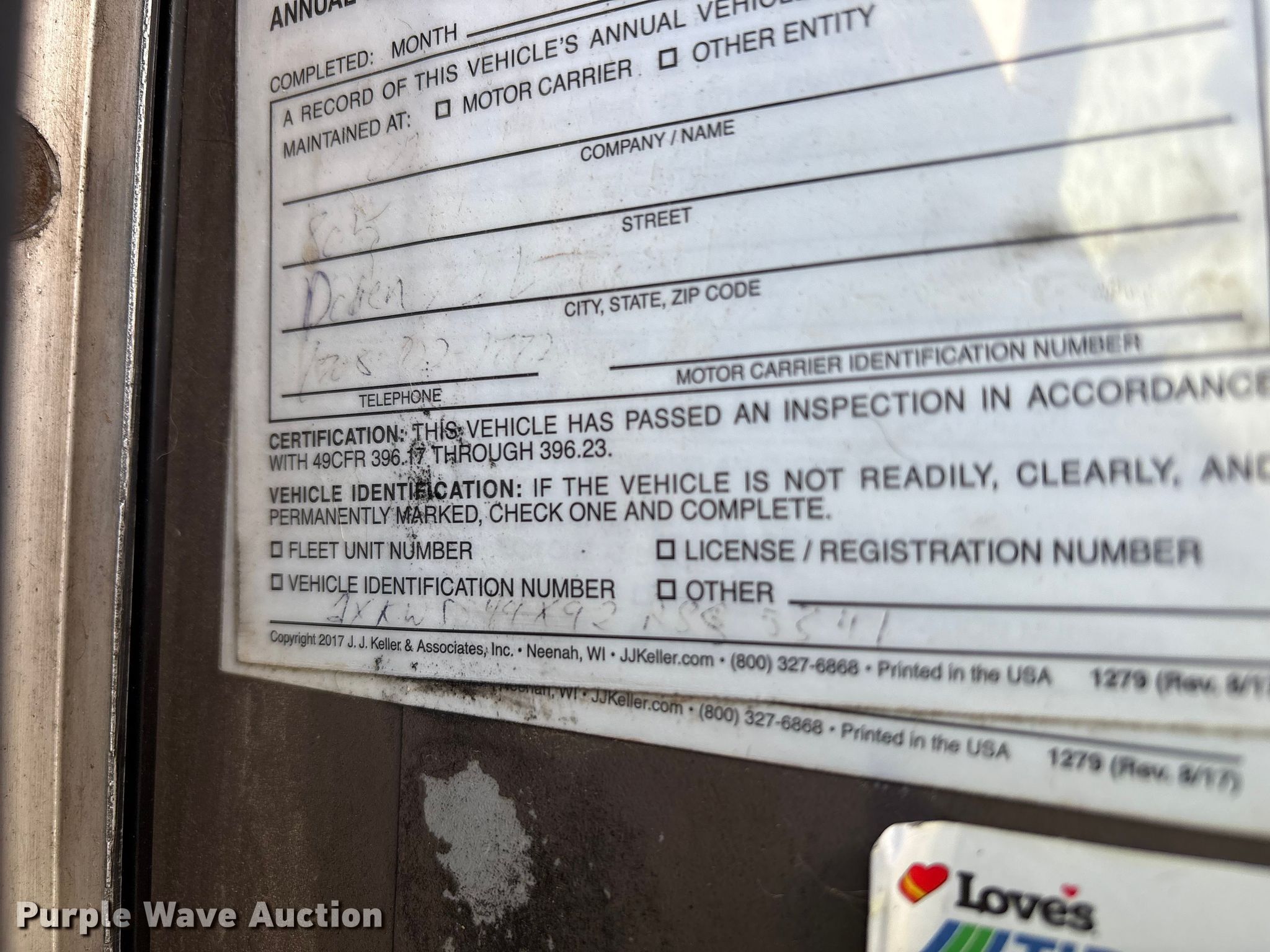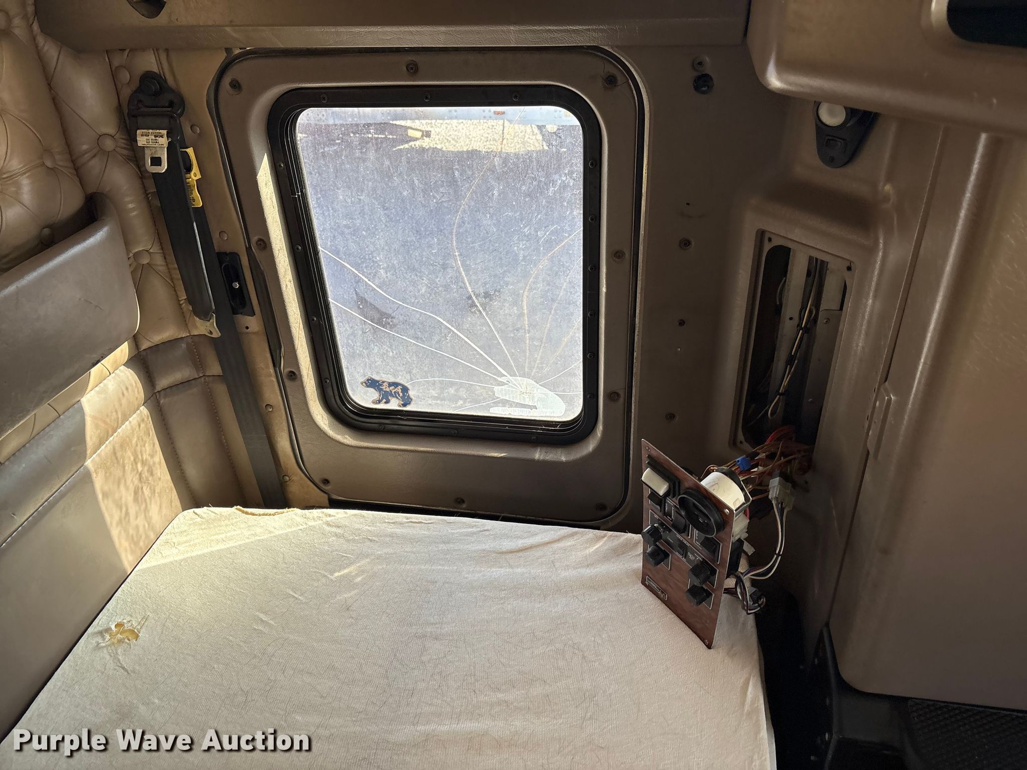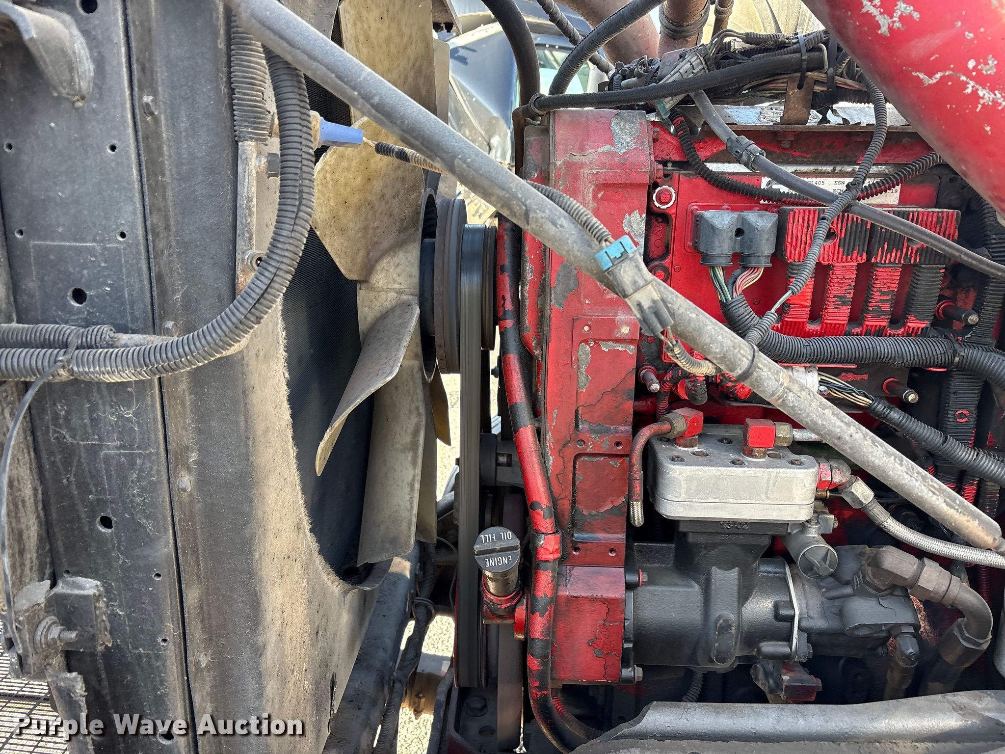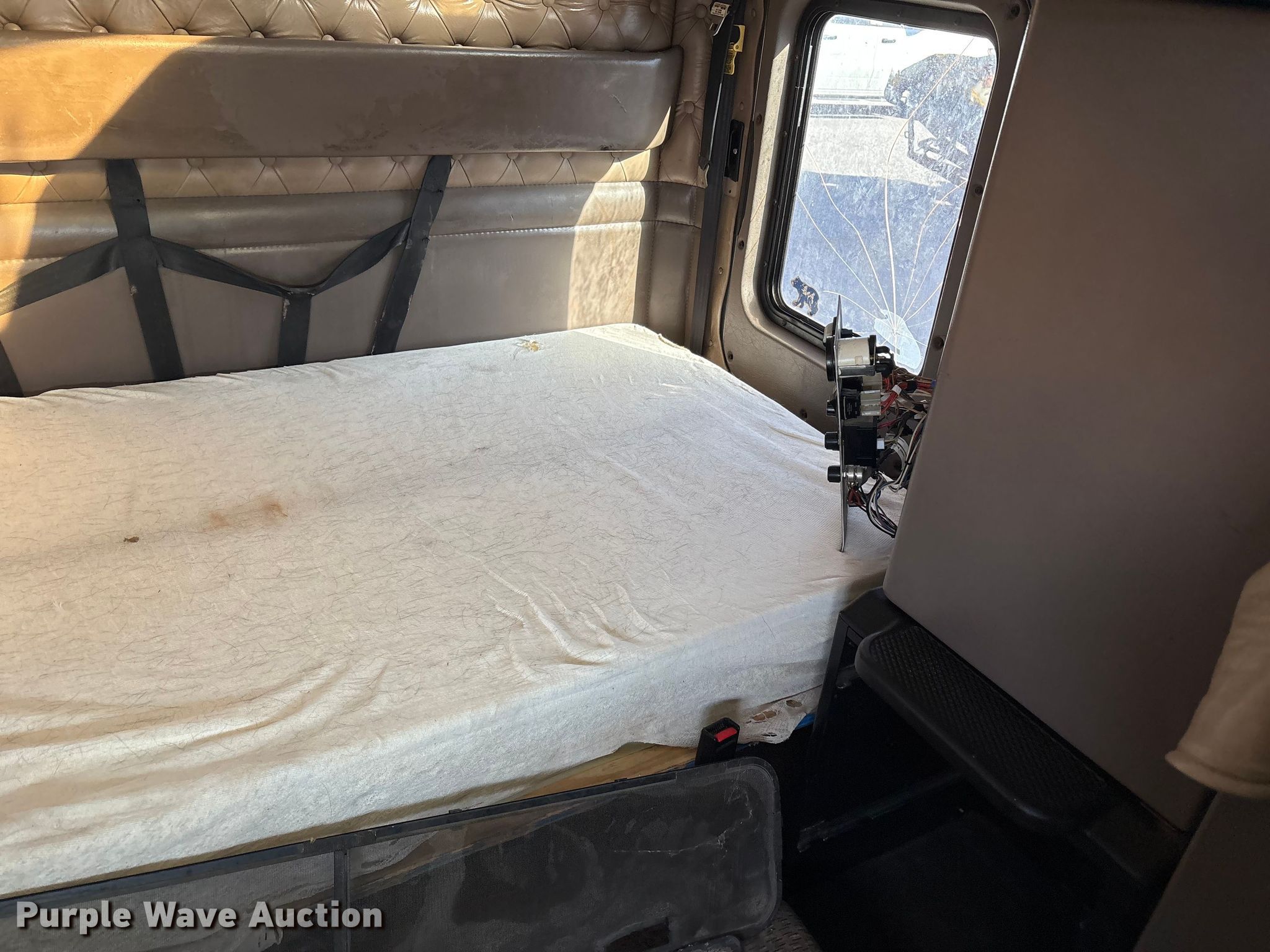 2002 Kenworth W900B semi truck. Miles: 908,350 on odometer, Hours: 62,205 on meter, VIN: 1XKWD49X92R885341, Unit #: 84998295. Engine Cummins, Displacement: 14.9L, Cylinders: 6, Fuel type: Diesel, Engine brake. Transmission Eaton Fuller, Manual, Speed: 10. Chassis Axles: Tandem, Differential lock: Inter-axle, Suspension: Air Dump valves, Brakes: Air. Interior AC, Heat, Heated mirrors, Power windows, Cruise control, Sleeper Sleeper length: 68", Beds: Single, Rear climate control. Features Deck plate: Aluminum, Fifth wheel type: Air operated, Sliding, Fuel tank: Dual. Tires Front: 275/80R22.5, Rear: 11R24.5. Notes Glass cracked, Windshield chipped or cracked, Jump start required during on-site data collection. Repossessed item, stored at a secured facility. Please review REQUIRED REMOVAL INSTRUCTIONS. Titles will be distributed after confirmation of payment and removal. Washington title. Title distribution may be delayed up to 30 days from verification of funds. Lender Owned. 501 Valley Chili Road. Anthony, TX 79821