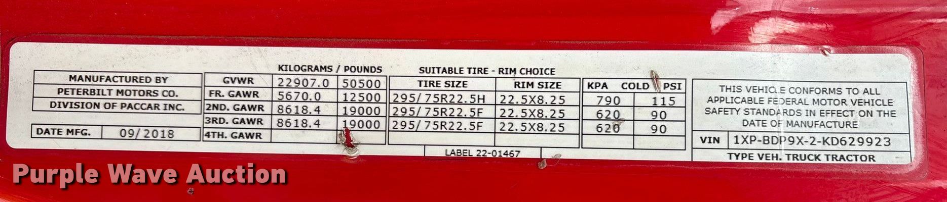 - VIN: 1XPBDP9X2KD629923