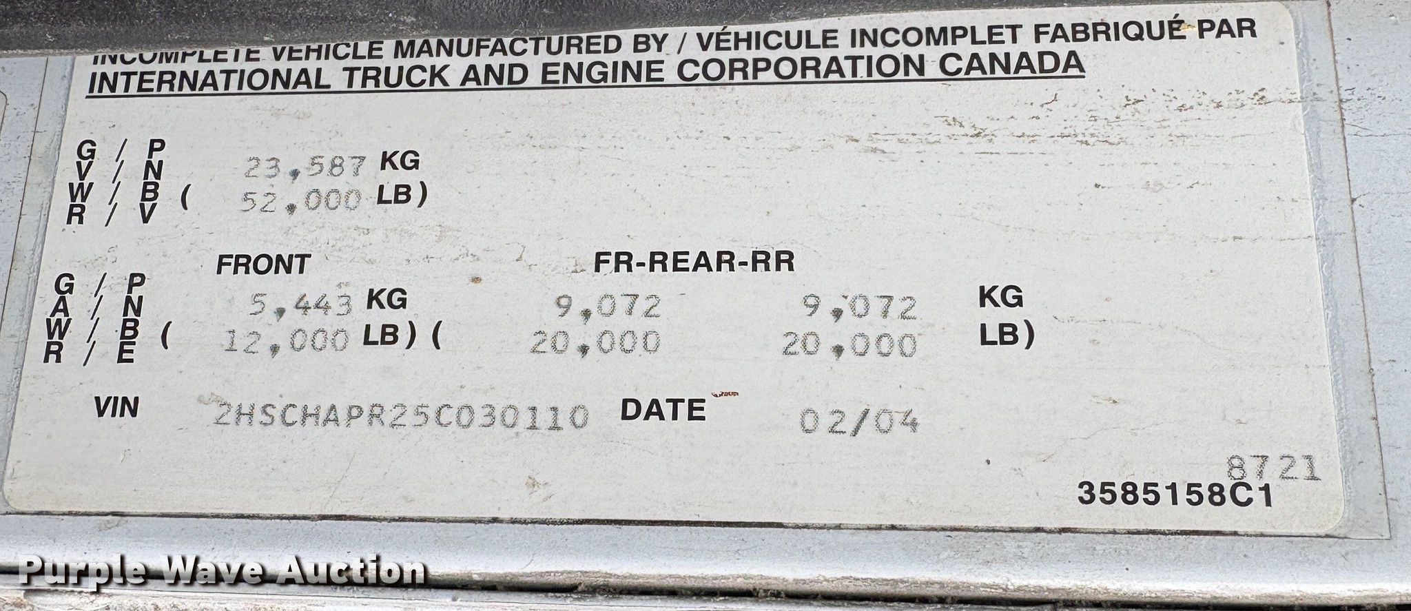 - VIN: 2HSCHAPR25C030110