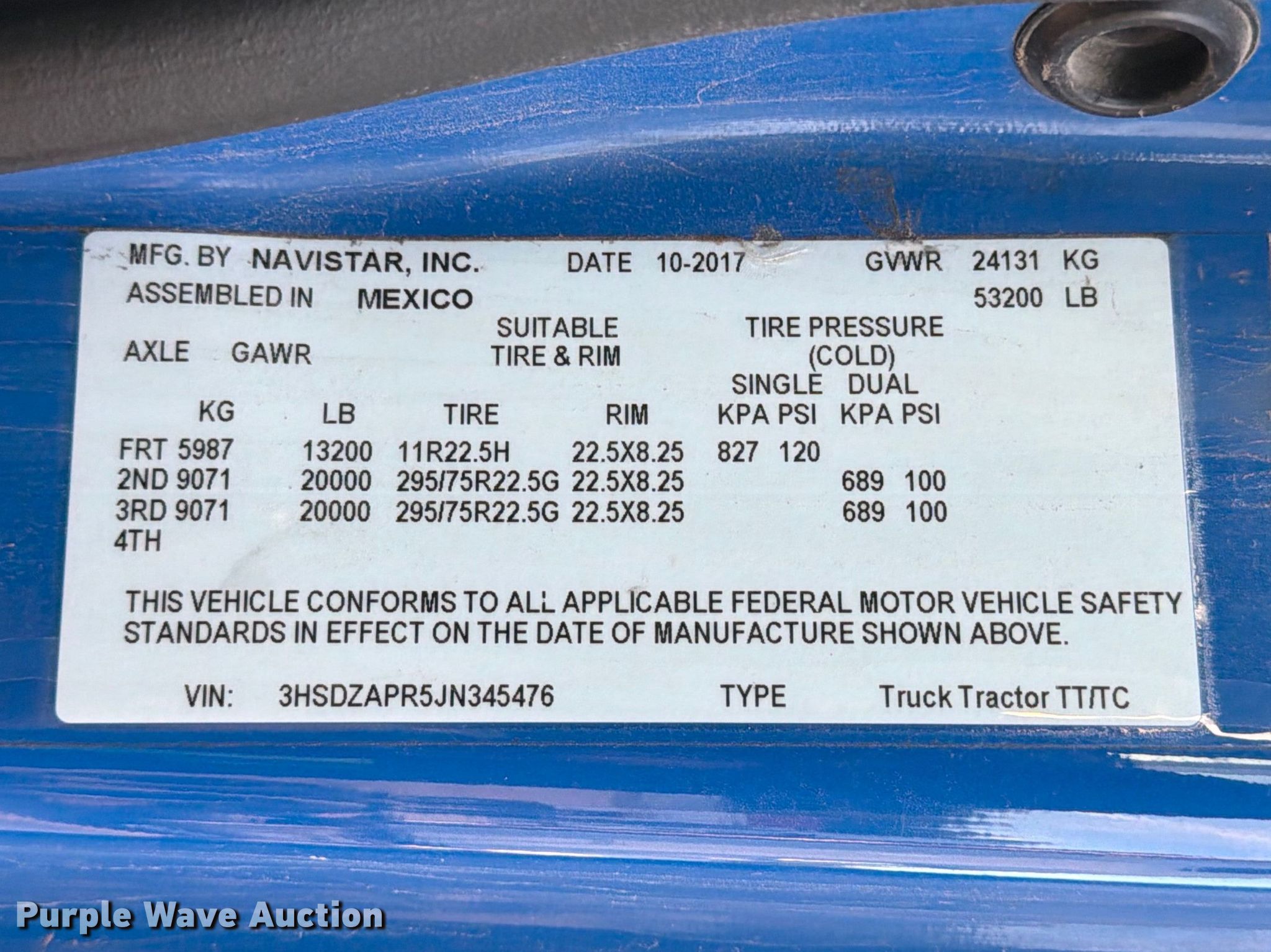 - VIN: 3HSDZAPR5JN345476