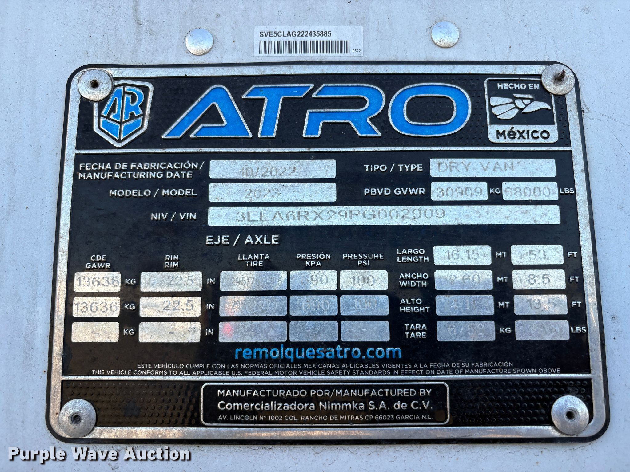 Purple Wave is selling a used Dry Van Trailer in California. This item is a 2023 Atro dry van trailer with the following: VIN: 3ELA6RX29PG002909, Unit #: 77207175