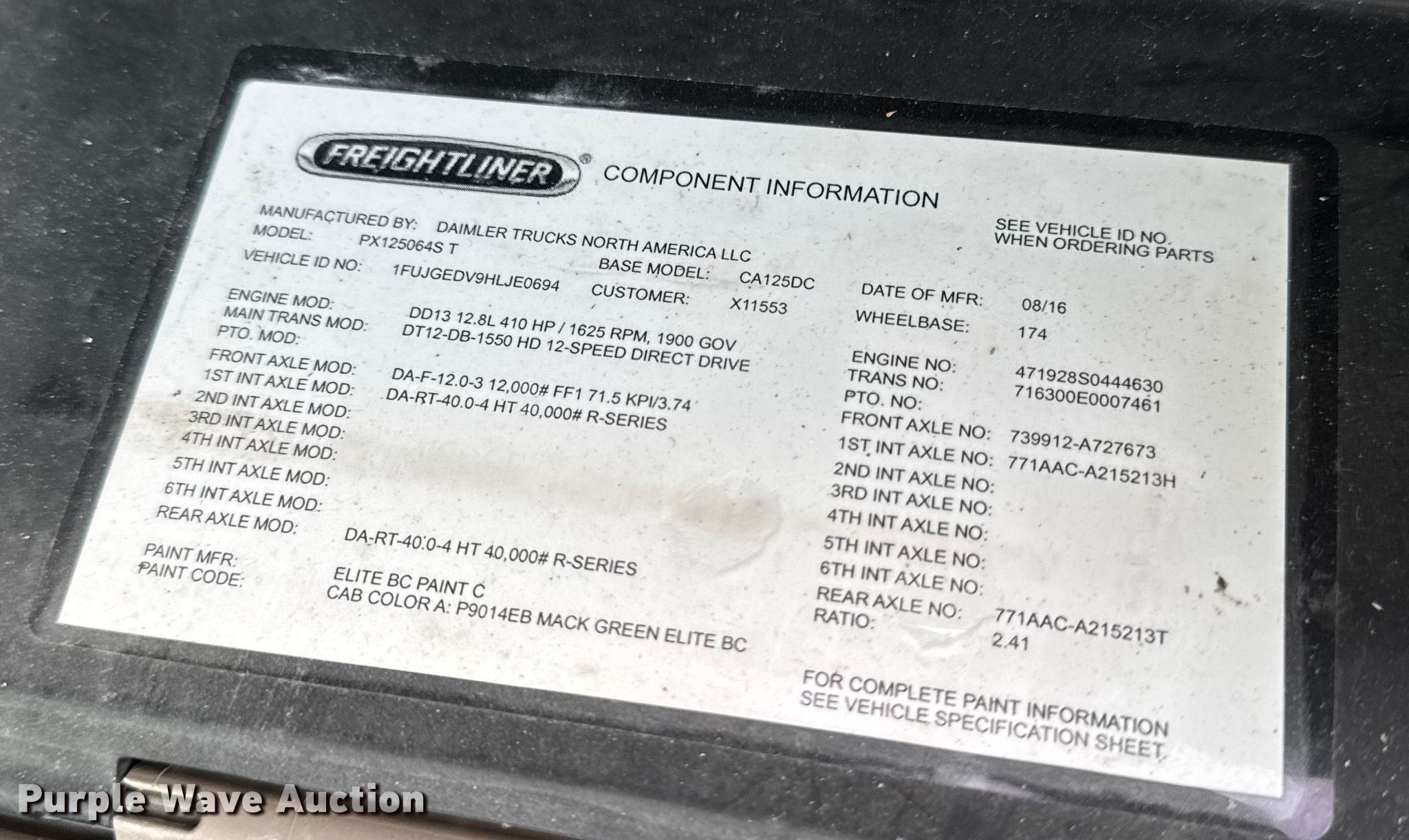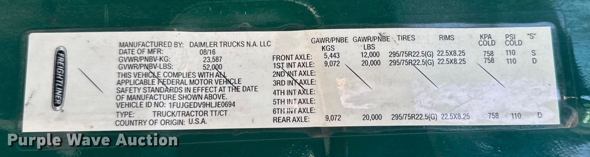 - VIN: 1FUJGEDV9HLJE0694