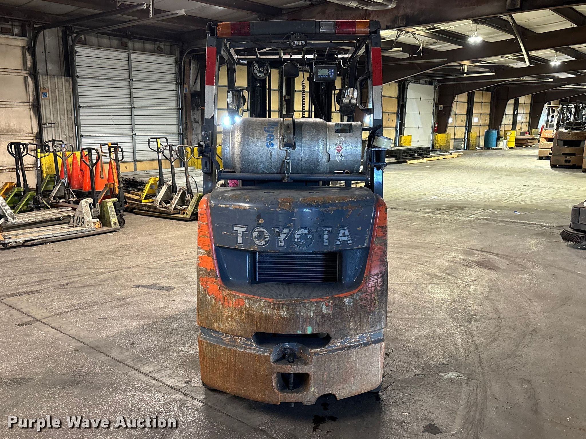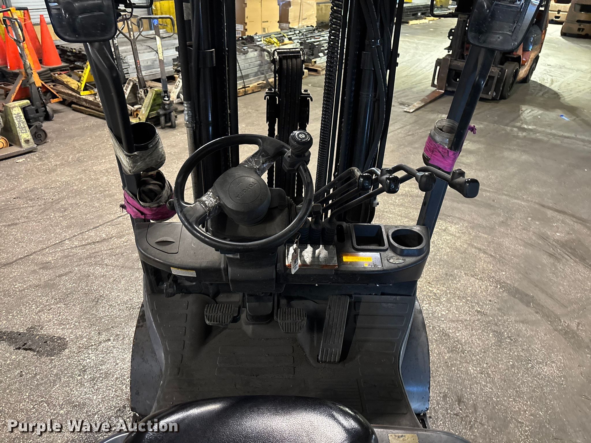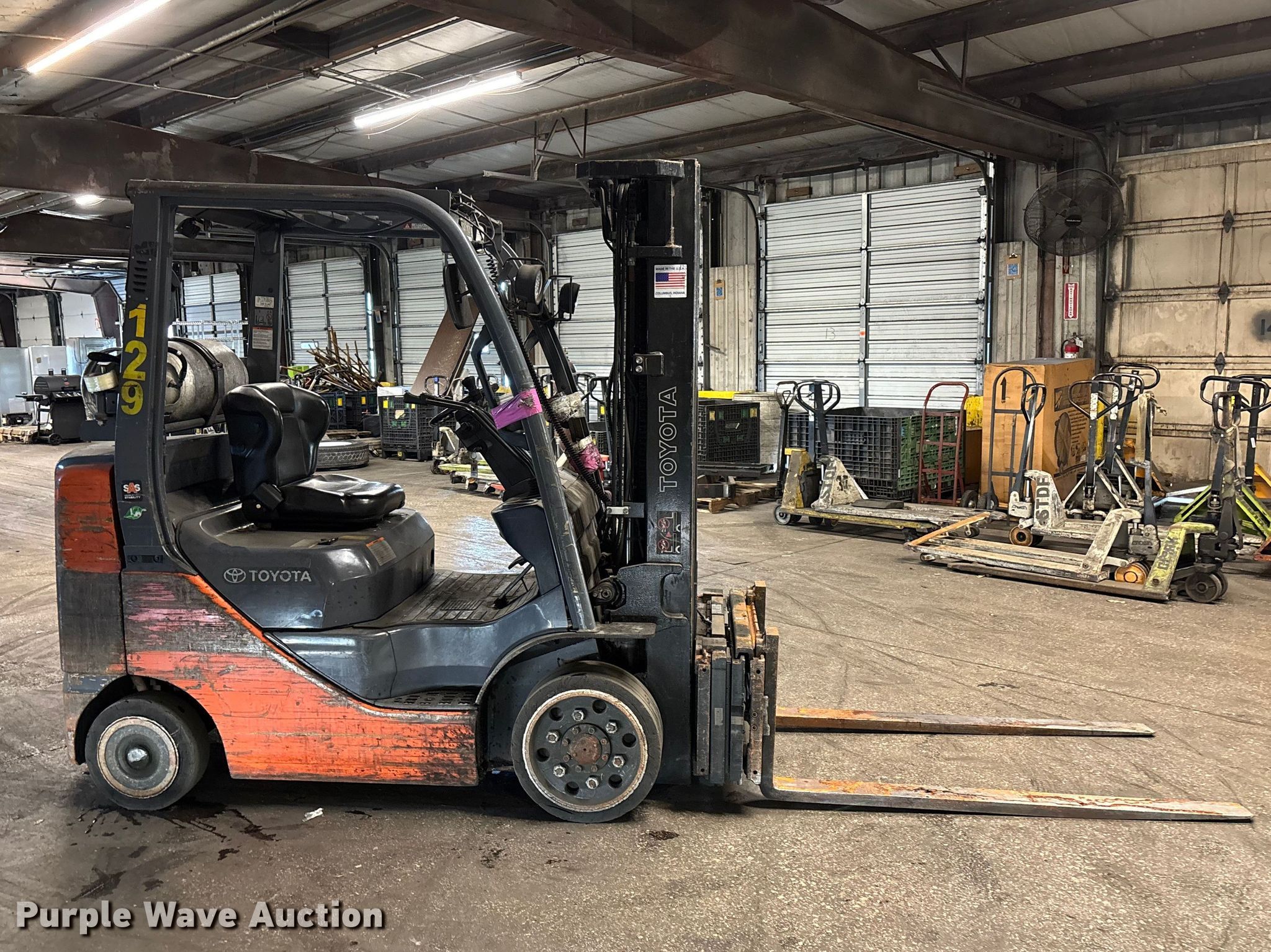Purple Wave is selling a used Warehouse Forklift in Illinois. This item is a Toyota 8FGCU25 forklift with the following: Hours: 21,257 on meter, Serial: 60475, Unit #: 129