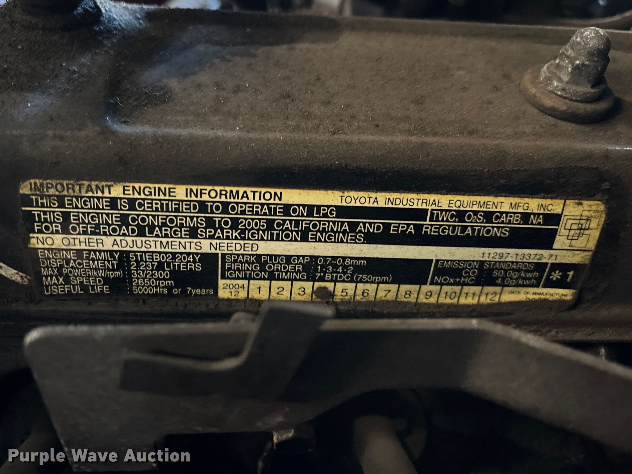 Toyota 7FGCU25 forklift. Hours: 27,927 on meter, Serial: 91593, Unit #: 69. Engine Toyota, Displacement: 2.23L, Cylinders: 4, Fuel type: LPG LP bottle: Not included, kW: 33. Transmission Powershift. Operators station OROPS, Onboard scale system. Features Maximum lift capacity: 4,700 lbs, Maximum lift height: 131", Collapsed mast height: 82", Mast stages: 2, Side shift, Mast tilt, Fork length: 60". Tires Front: 21x7x15, Rear: 16x5x10.5. Standard Forwarding, LLC Strategic Fleet Realignment Sale - Open Inspection April 20th 2026 from 9:00 a.m. to 3:00 p.m.. 2925 Morton Drive. East Moline, IL 61244