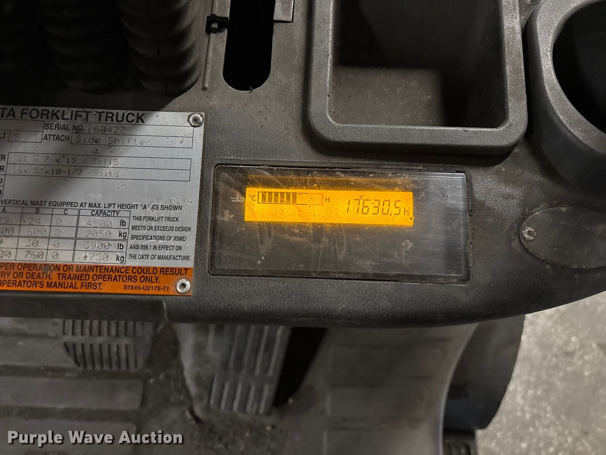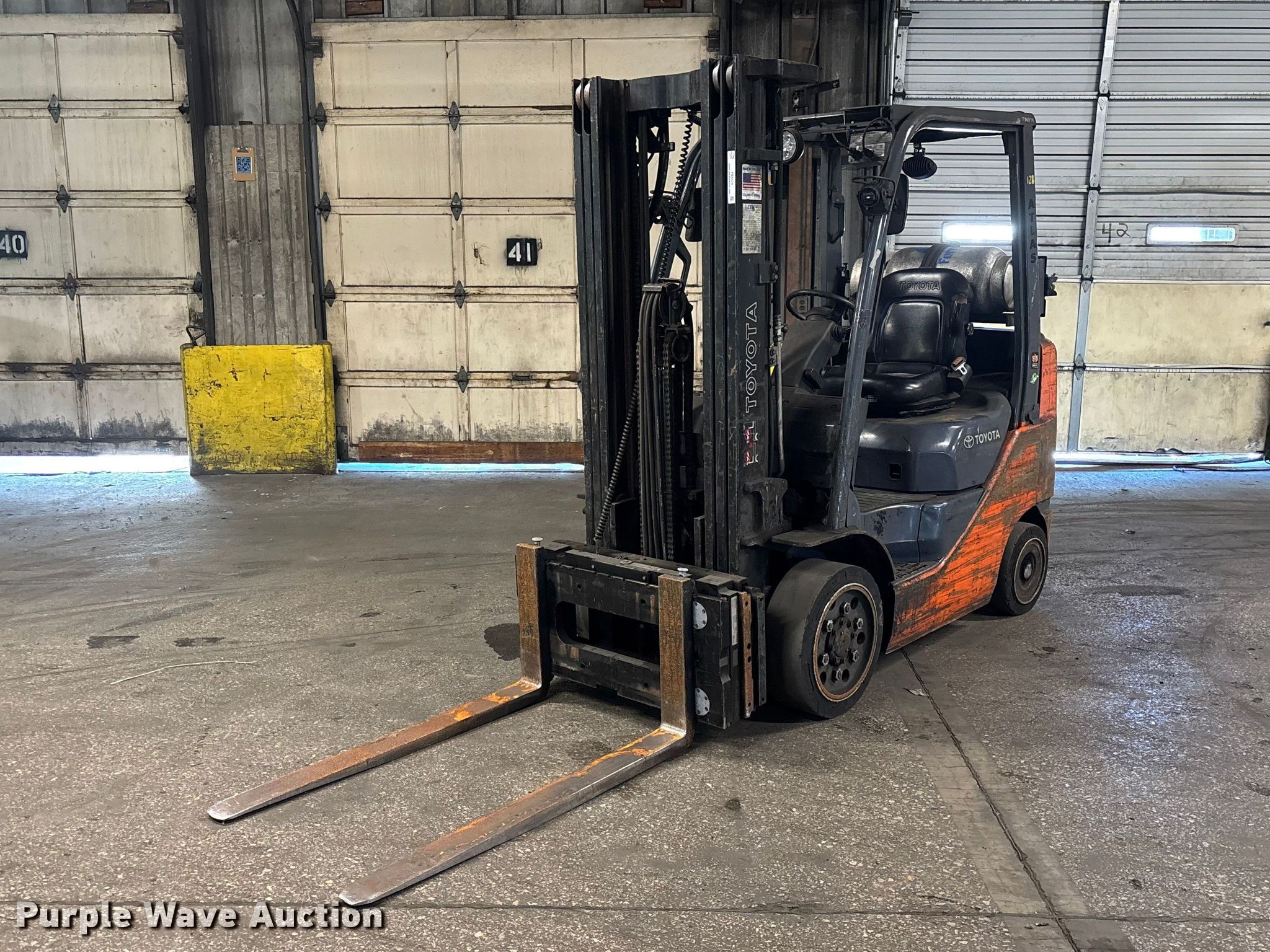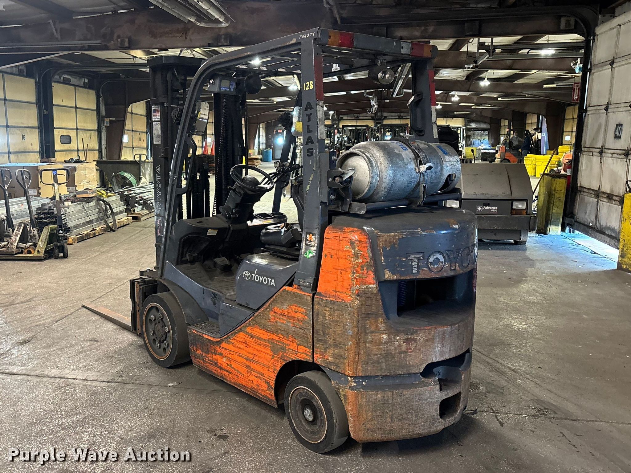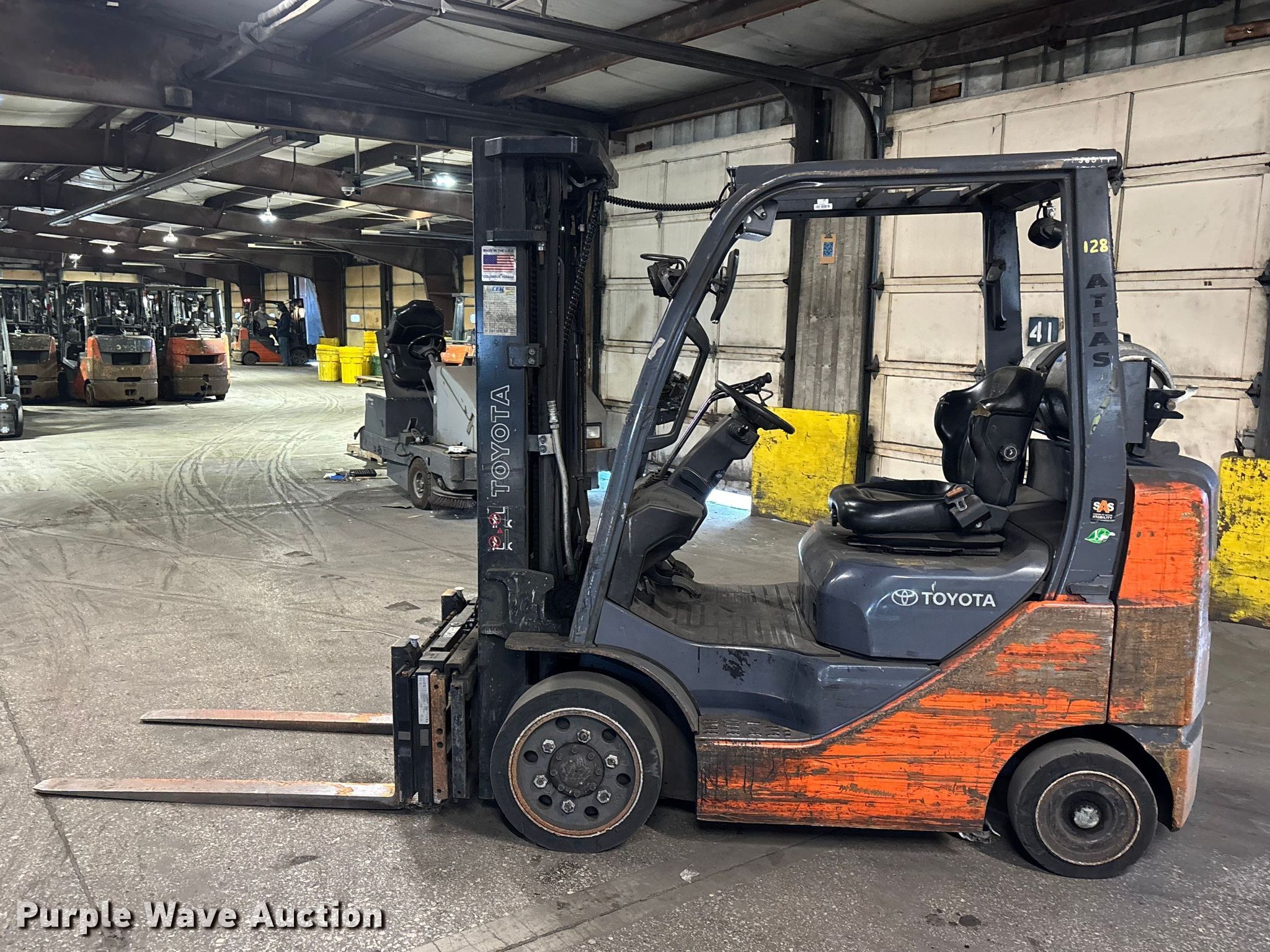 Purple Wave is selling a used Warehouse Forklift in Illinois. This item is a Toyota 8FGCU25 forklift with the following: Hours: 17,631 on meter, Serial: 60427, Unit #: 128
