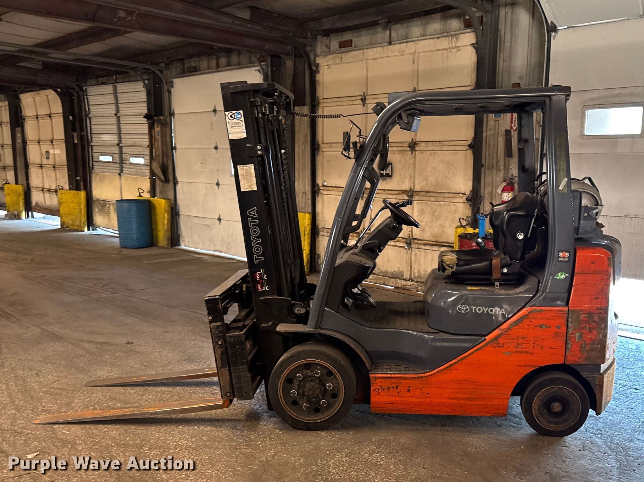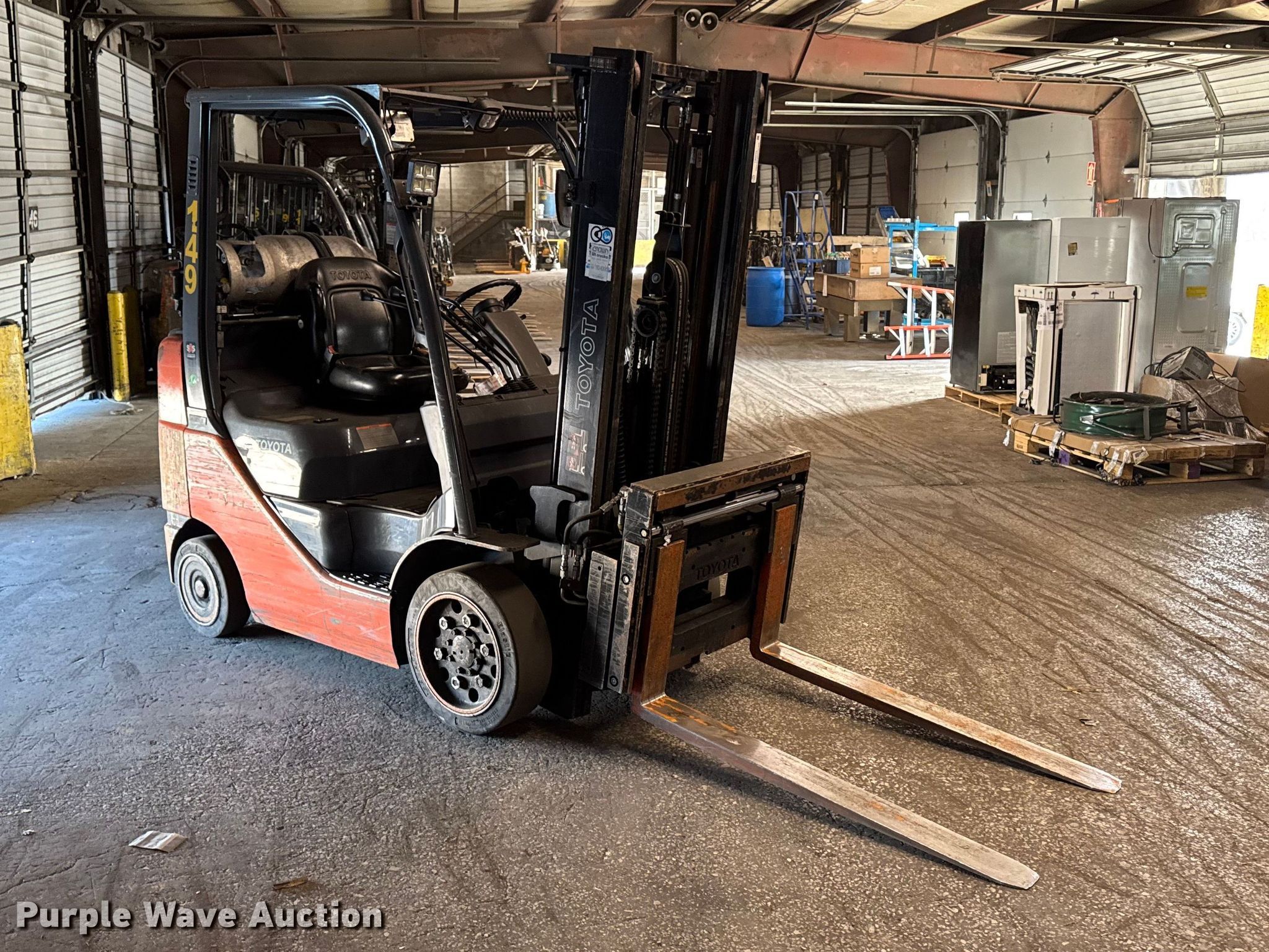 Purple Wave is selling a used Warehouse Forklift in Illinois. This item is a Toyota 8FGCU25 forklift with the following: Hours: 7,835 on meter, Serial: 82856, Unit #: 149