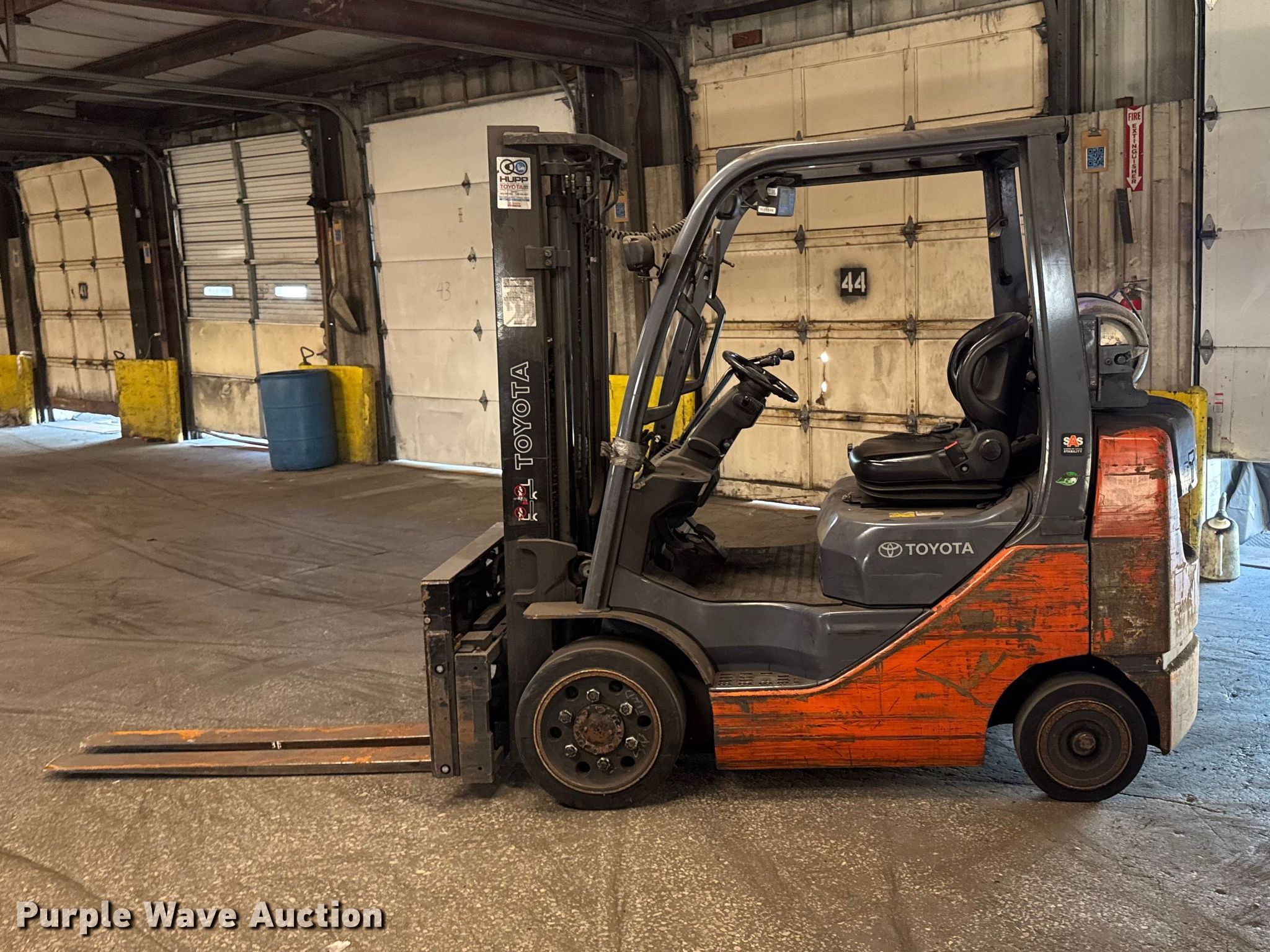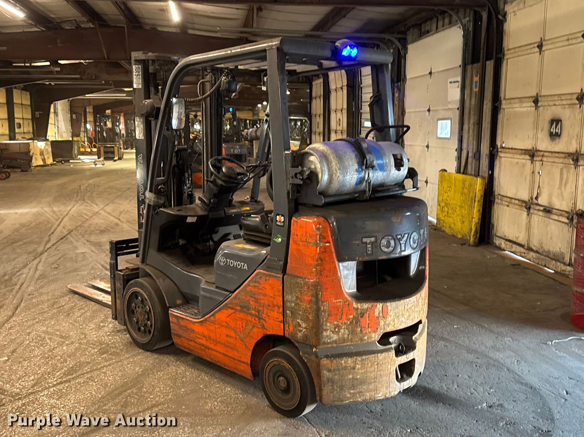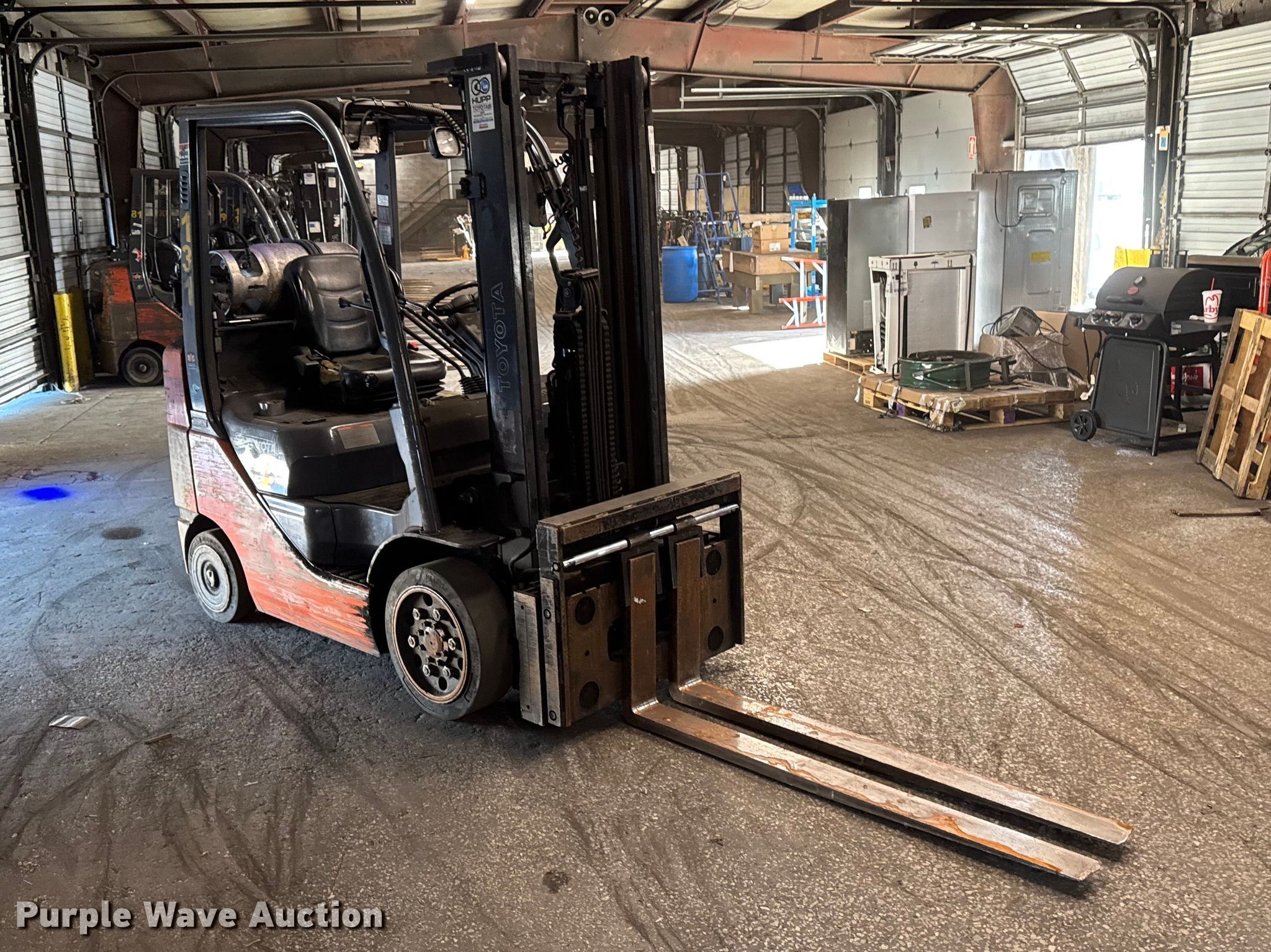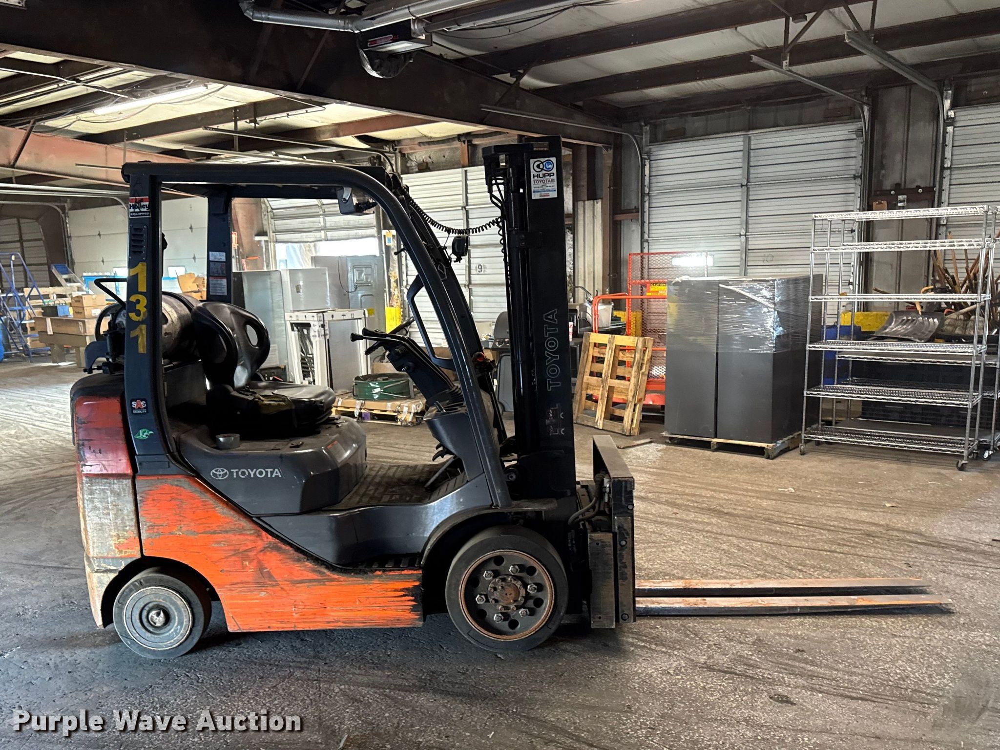 Purple Wave is selling a used Warehouse Forklift in Illinois. This item is a Toyota 8FGCU25 forklift with the following: Hours: 10,314 on meter, Serial: 82325, Unit #: 131