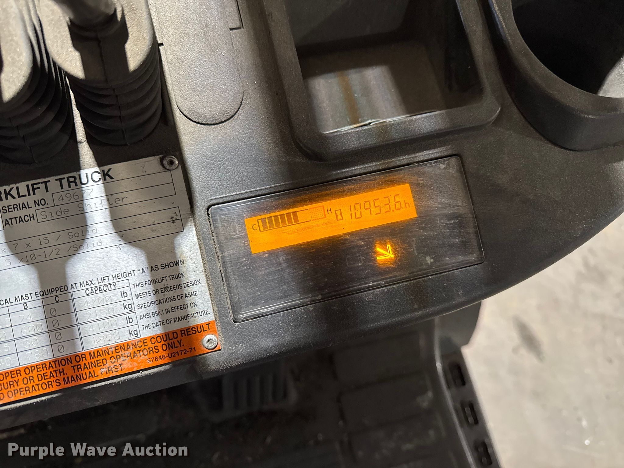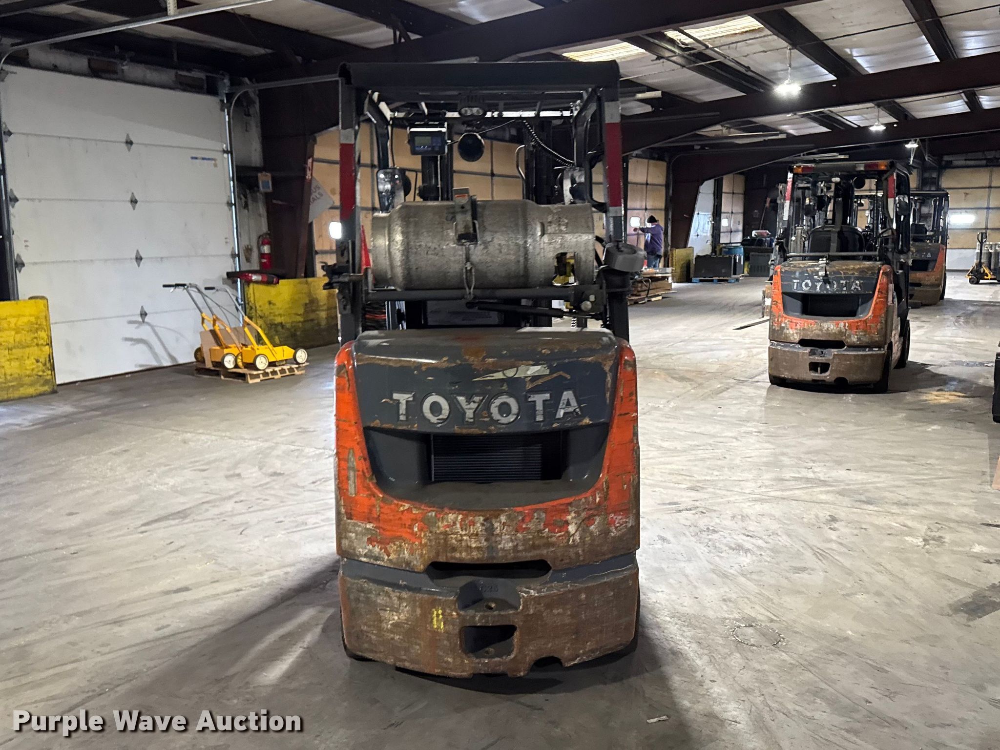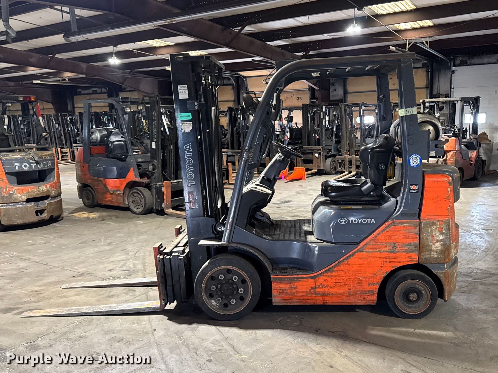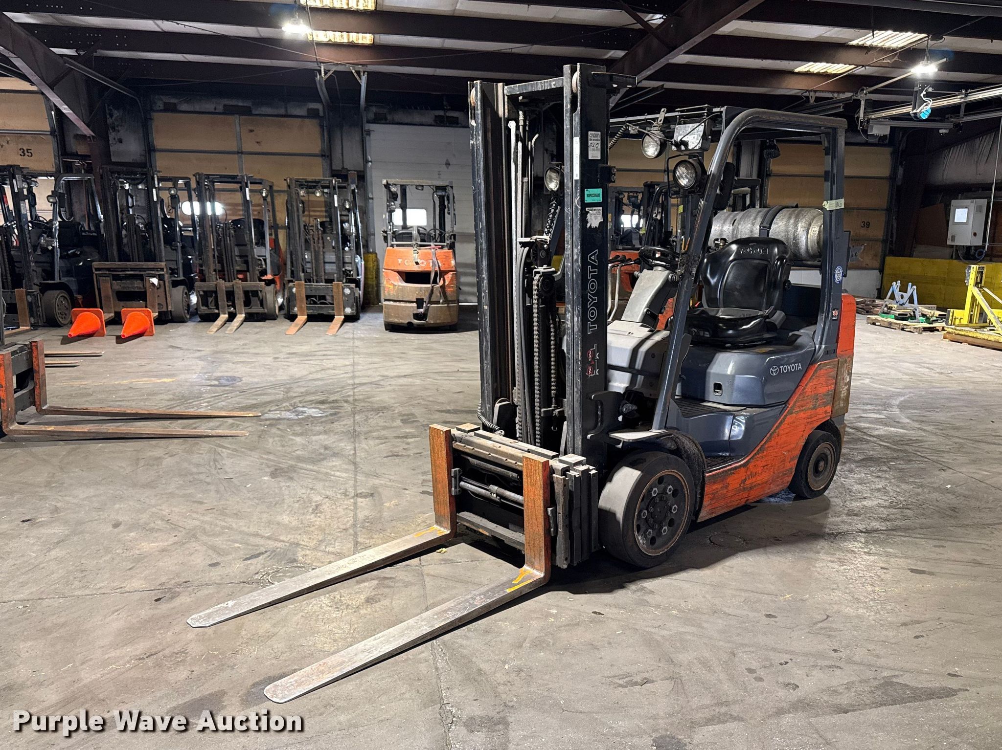 Purple Wave is selling a used Warehouse Forklift in Illinois. This item is a Toyota 8FGCU25 forklift with the following: Hours: 10,954 on meter, Serial: 49677, Unit #: 117
