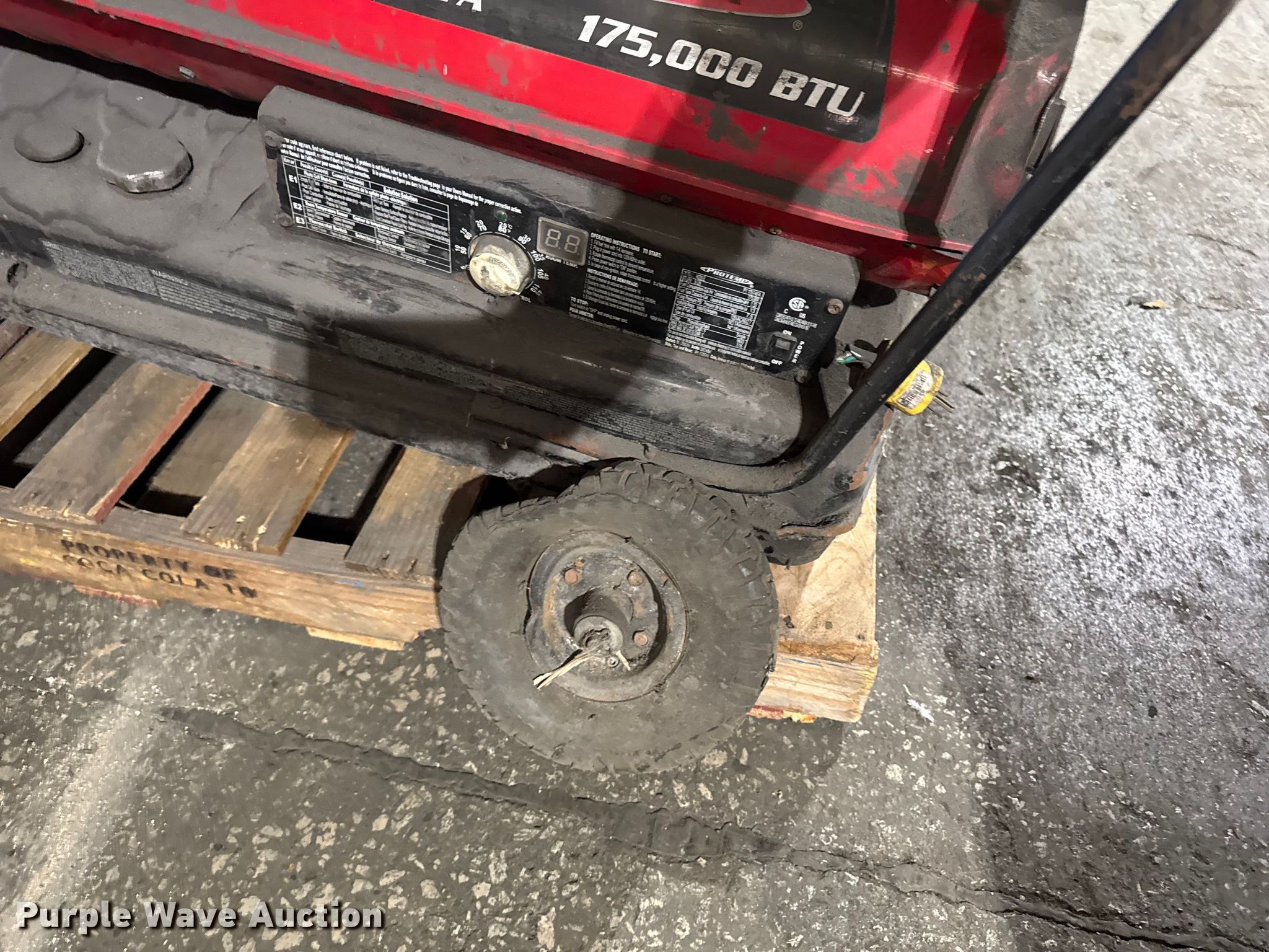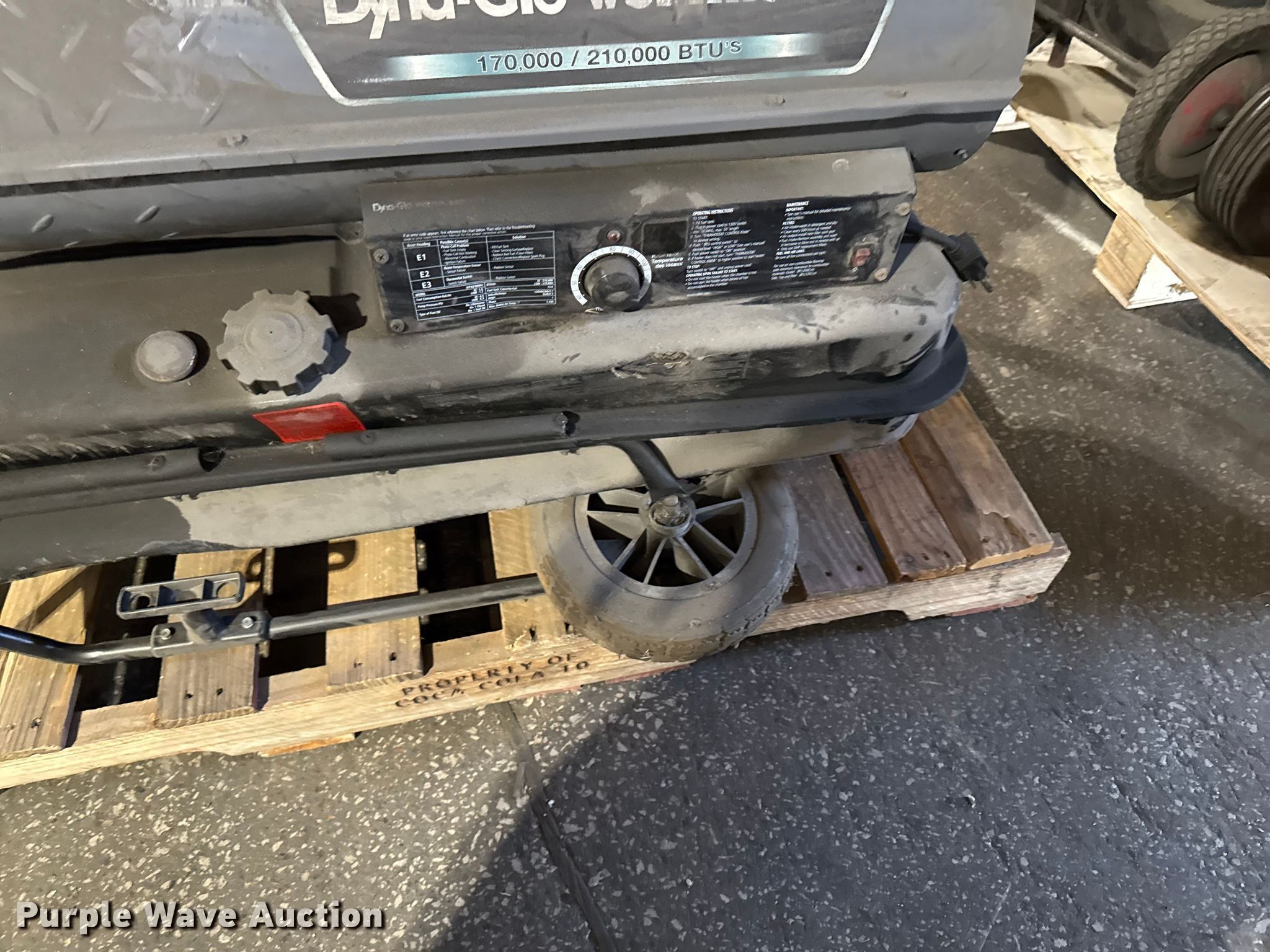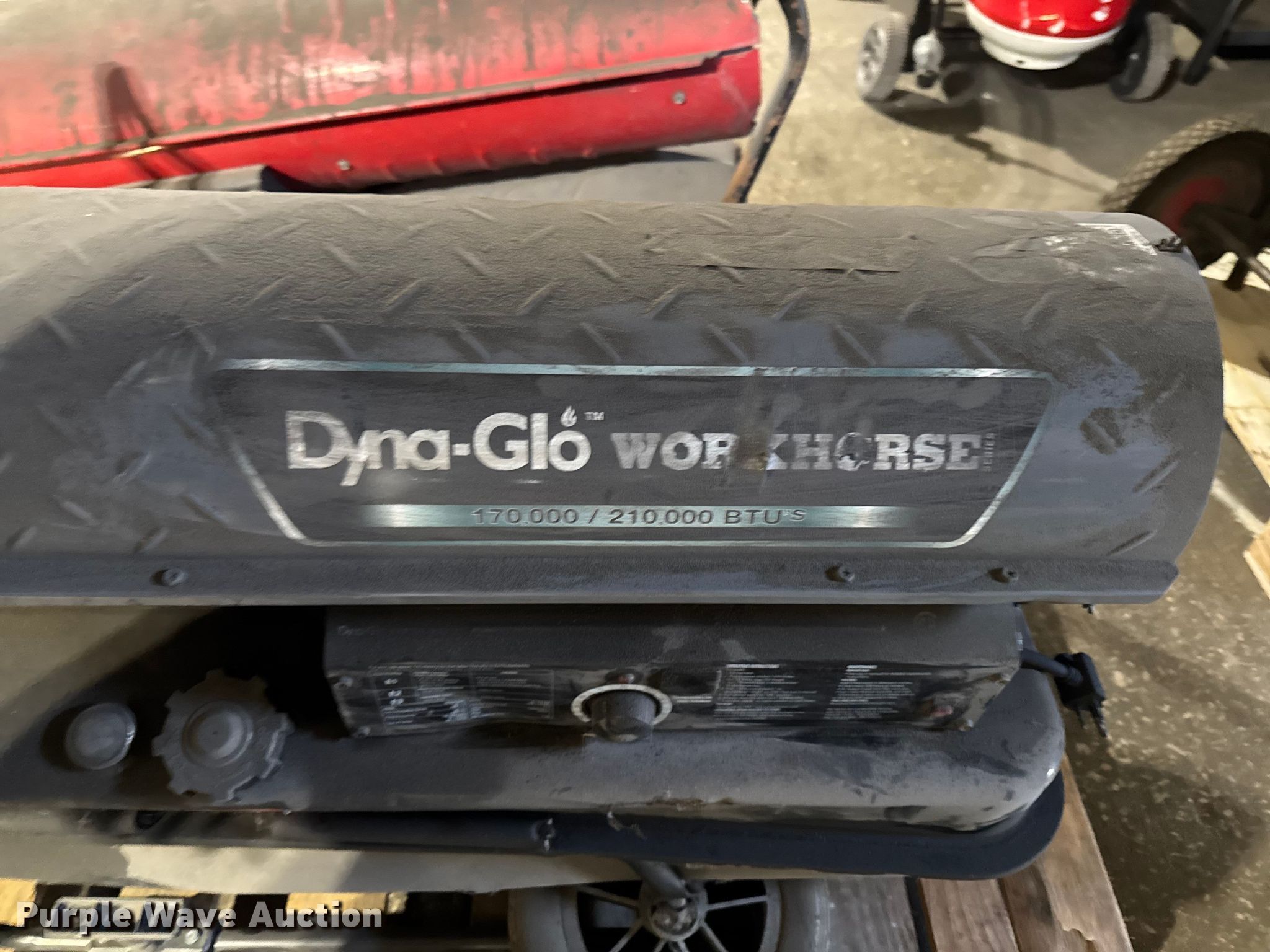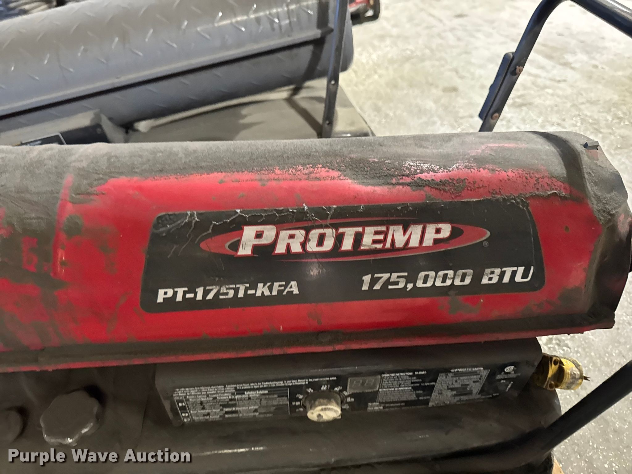 Purple Wave is selling a used Portable Heater or Fan in Illinois. This item is a (2) heaters with the following: ProTemp PT-175T-KFA, BTU: 175,000, Volts: 120, Fuel type: Kerosene, Dyna-Glo Workhorse, BTU: 210,000, Volts: 120, Fuel type: Kerosene