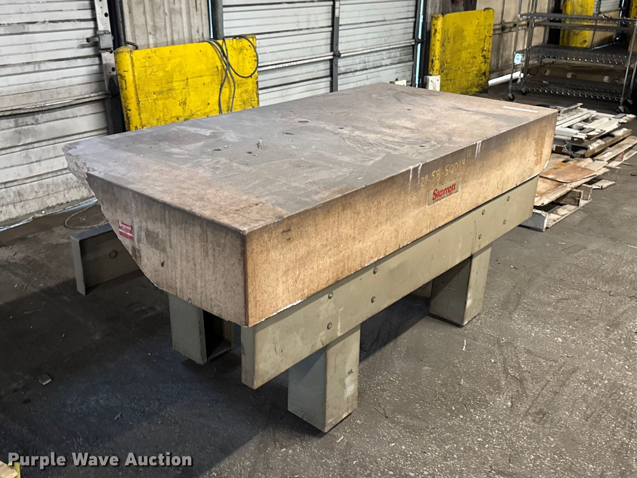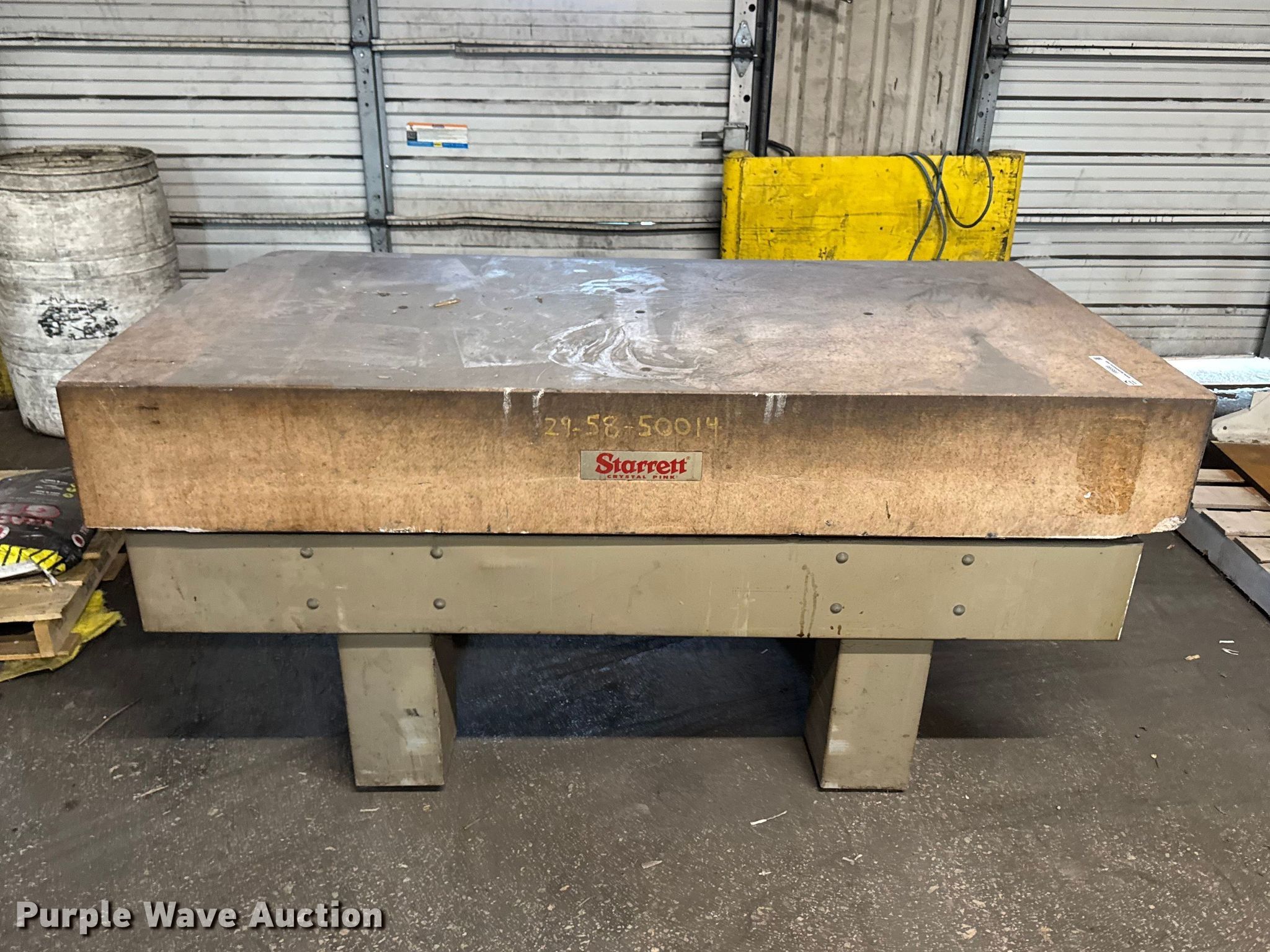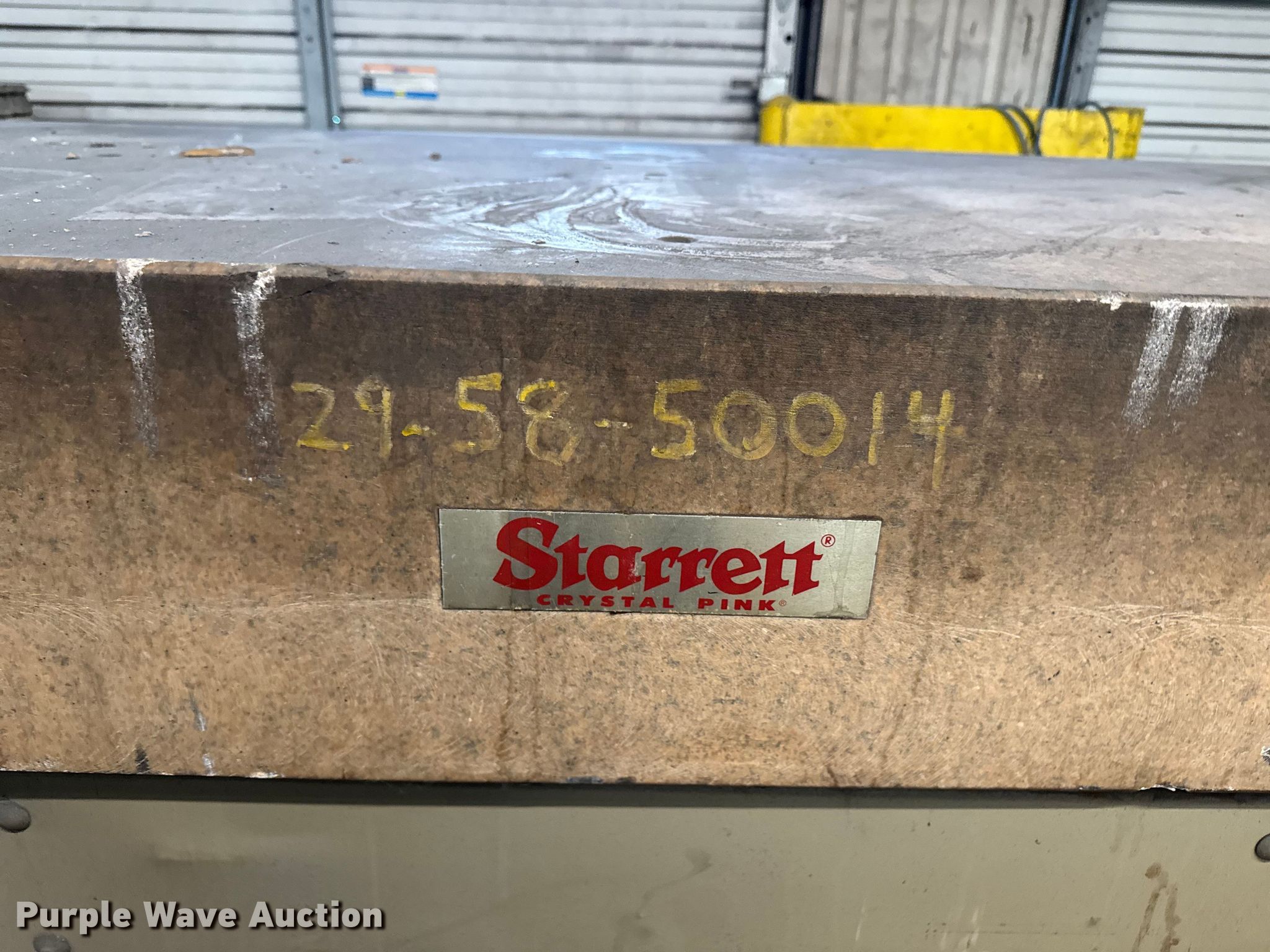 Purple Wave is selling a used Tools in Illinois. This item is a Starret Crystal Pink surface plate with the following: Serial: 730284, Dimensions: 72" x 36" x 33", Steel table frame