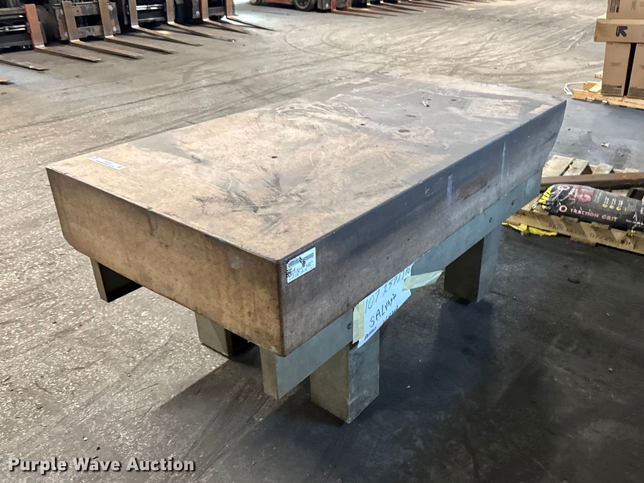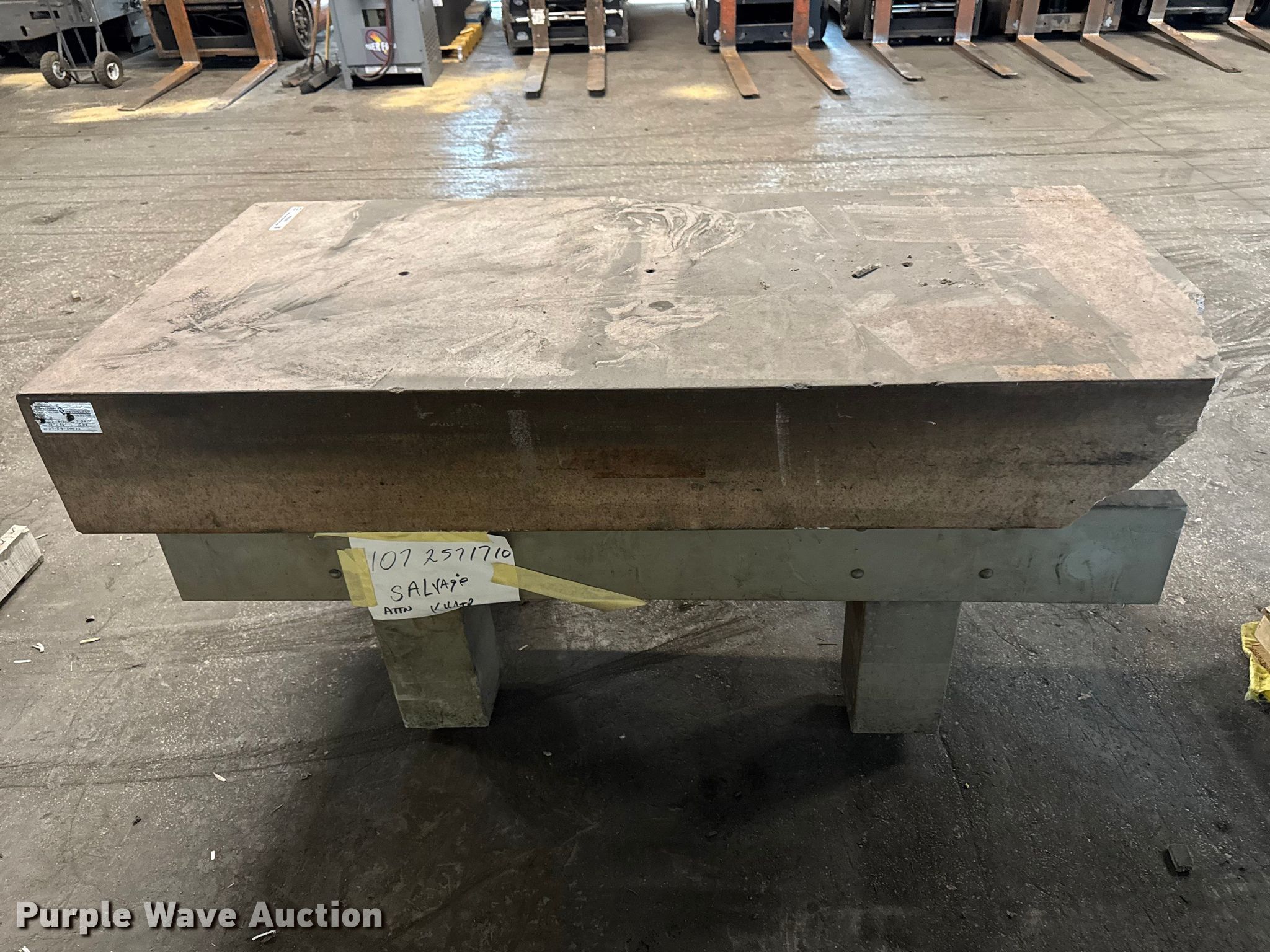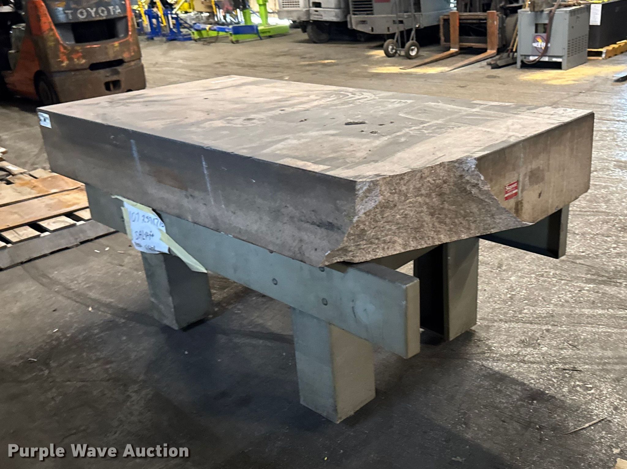 Purple Wave is selling a used Tools in Illinois. This item is a Starret Crystal Pink surface plate with the following: Serial: 730284, Dimensions: 72" x 36" x 33", Steel table frame