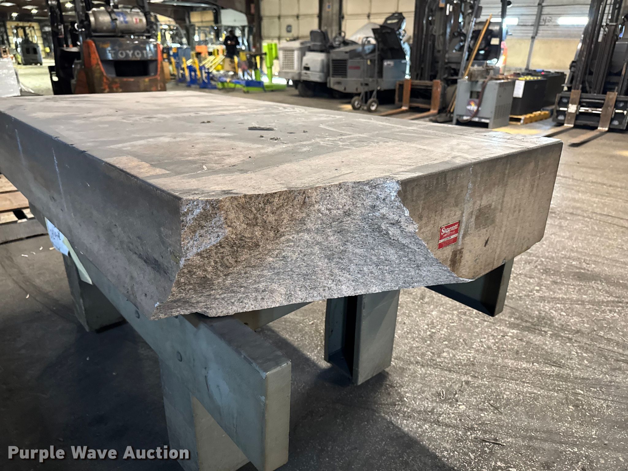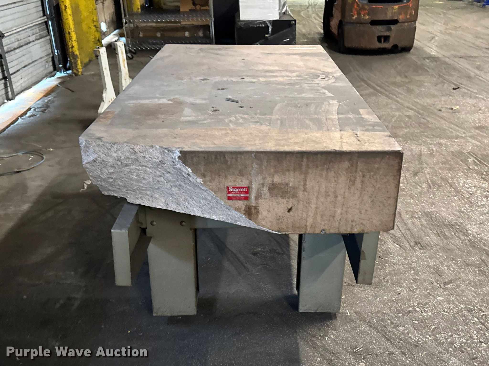 Starret Crystal Pink surface plate. Serial: 730284, Dimensions: 72" x 36" x 33", Steel table frame. Notes Granite damaged. Standard Forwarding, LLC Strategic Fleet Realignment Sale - Open Inspection April 20th 2026 from 9:00 a.m. to 3:00 p.m.. 2925 Morton Drive. East Moline, IL 61244