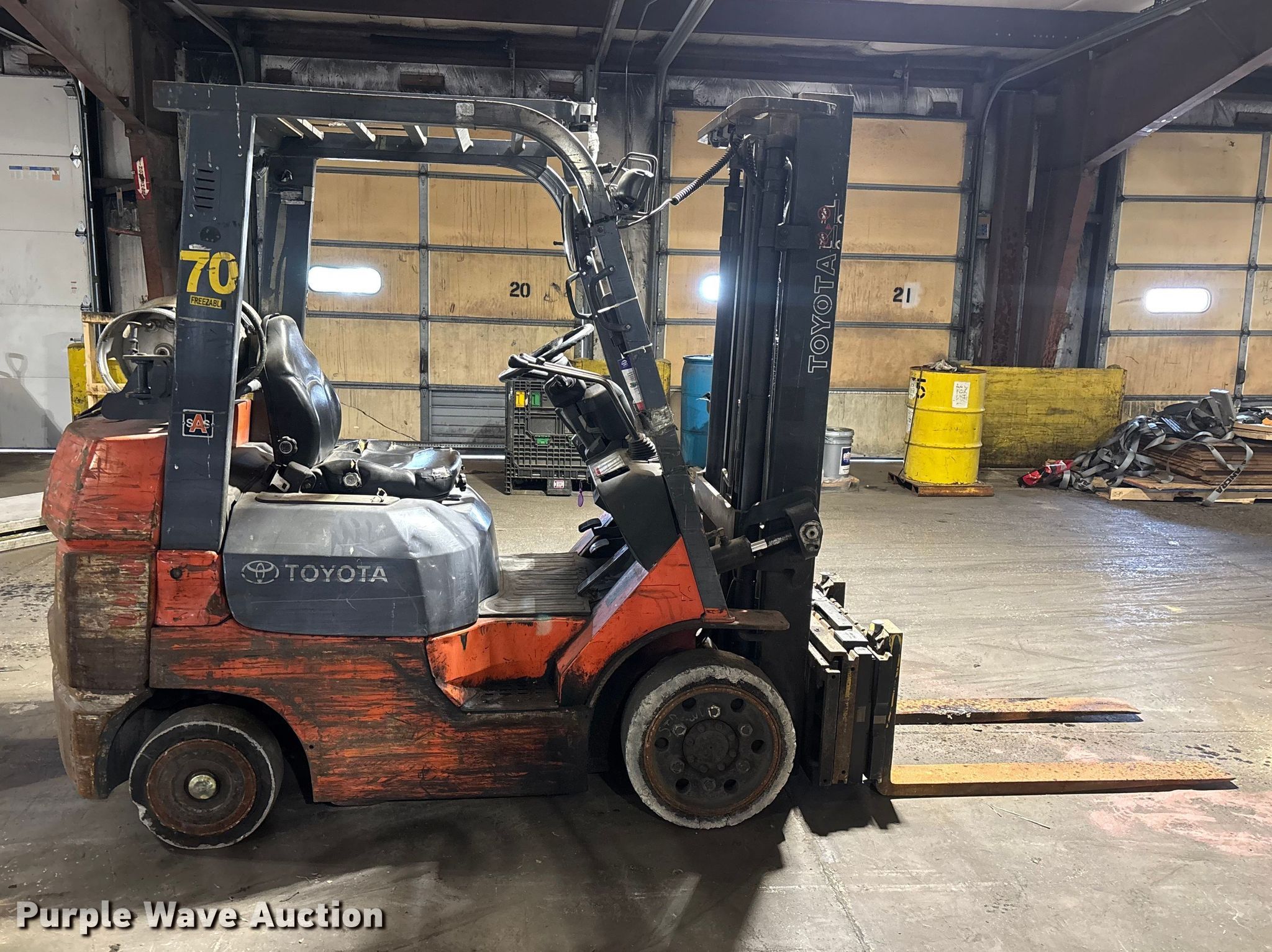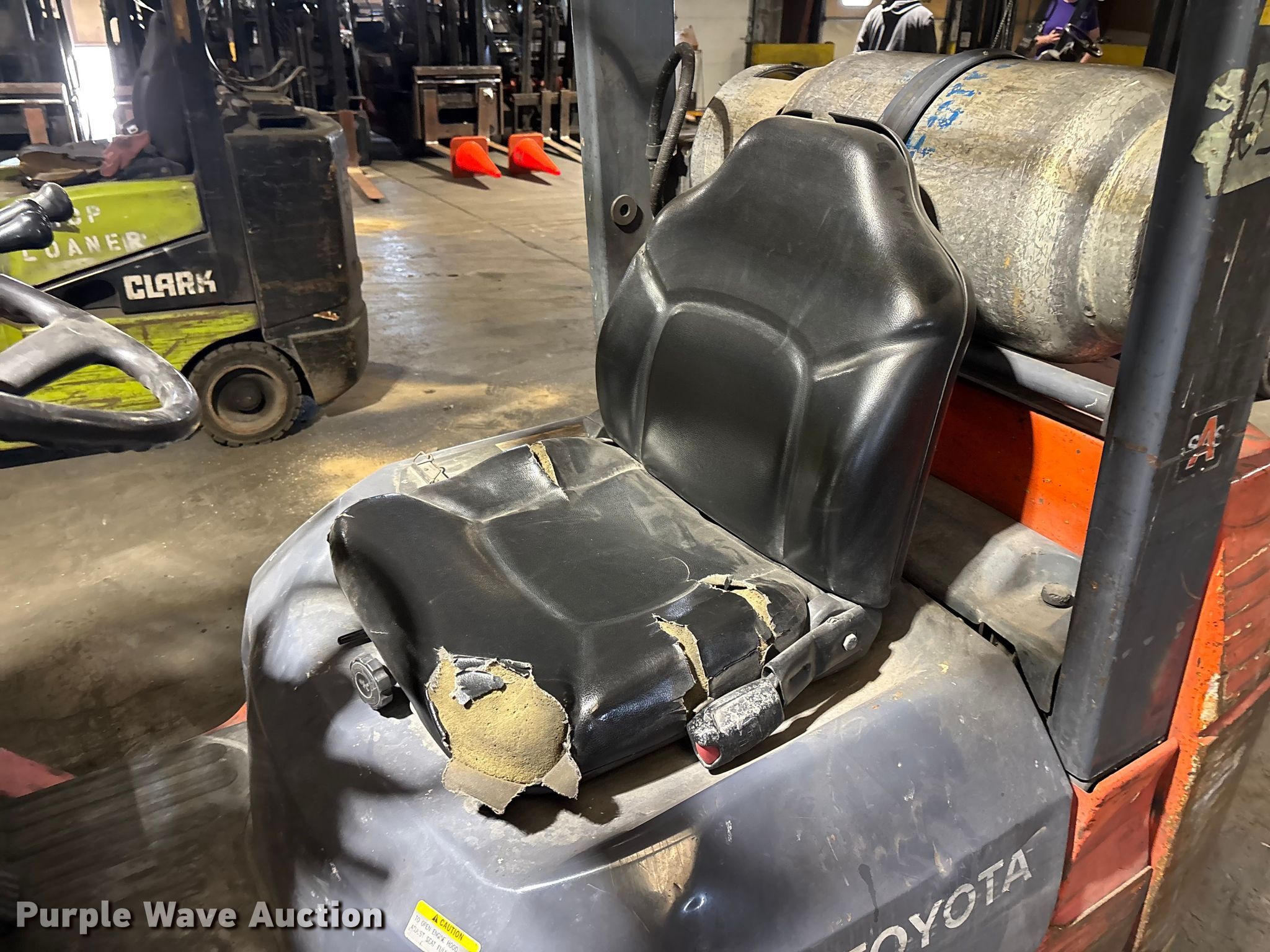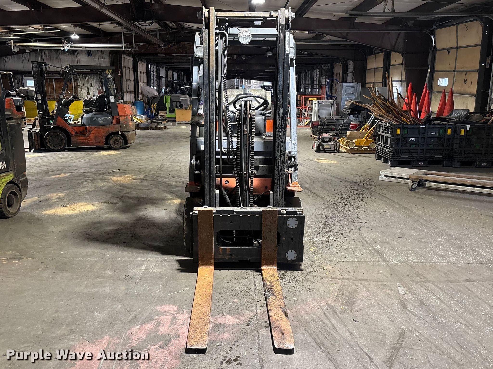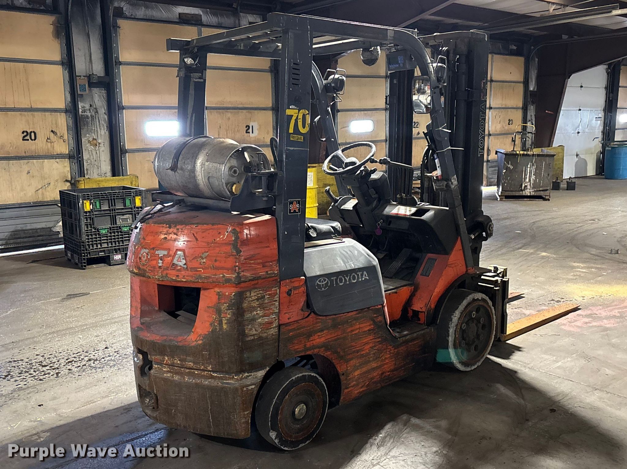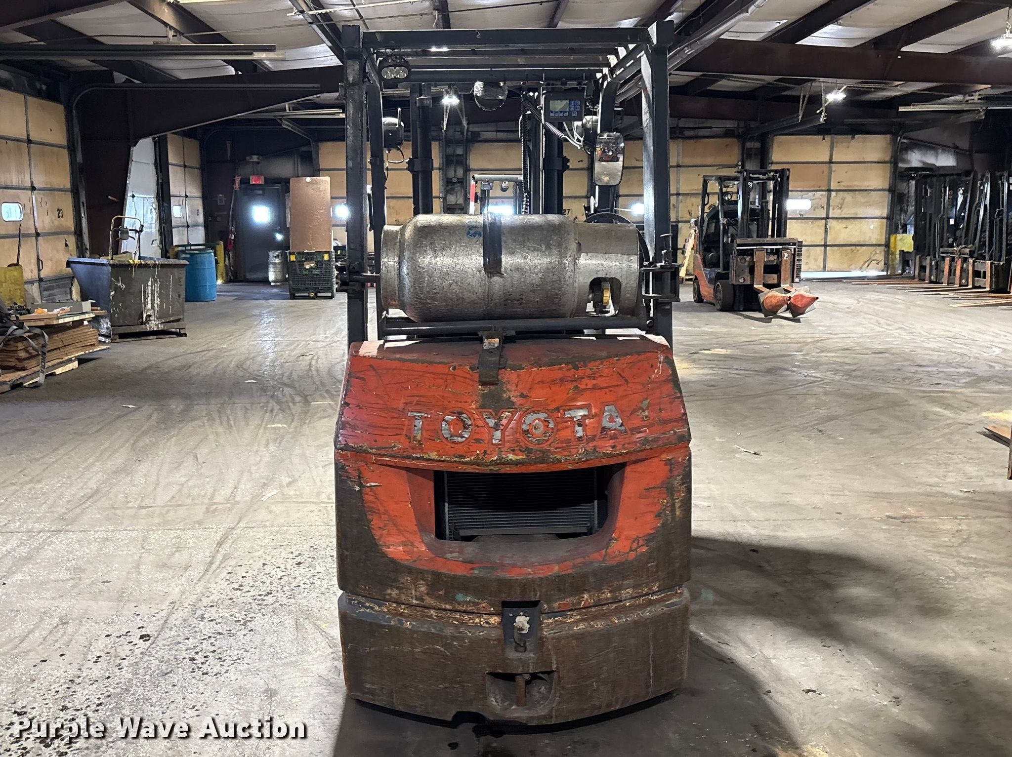 Purple Wave is selling a used Warehouse Forklift in Illinois. This item is a Toyota 7FGCU25 forklift with the following: Hours: 28,679 on meter, Serial: 91596, Unit #: 70