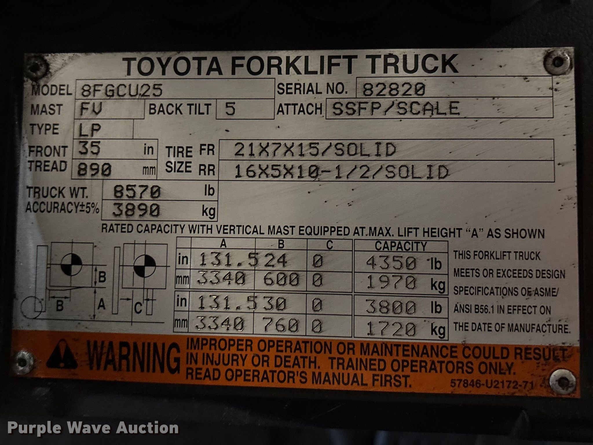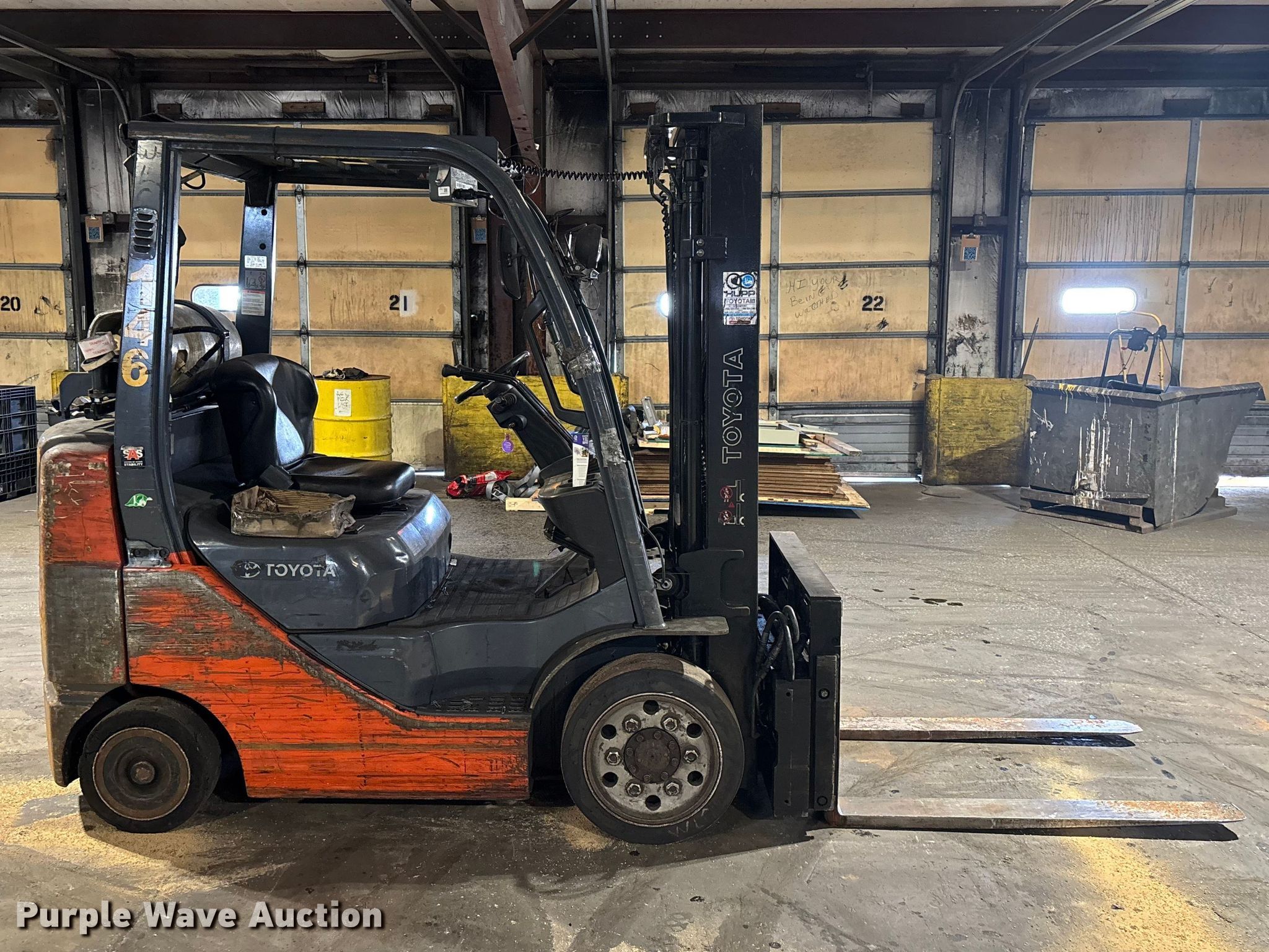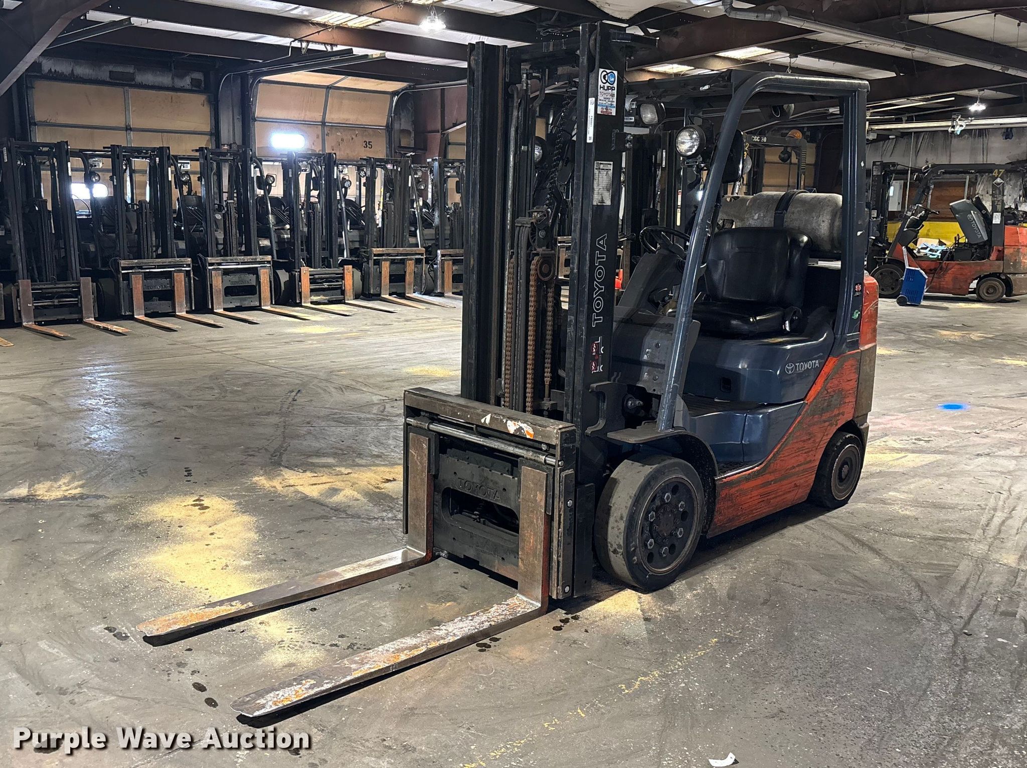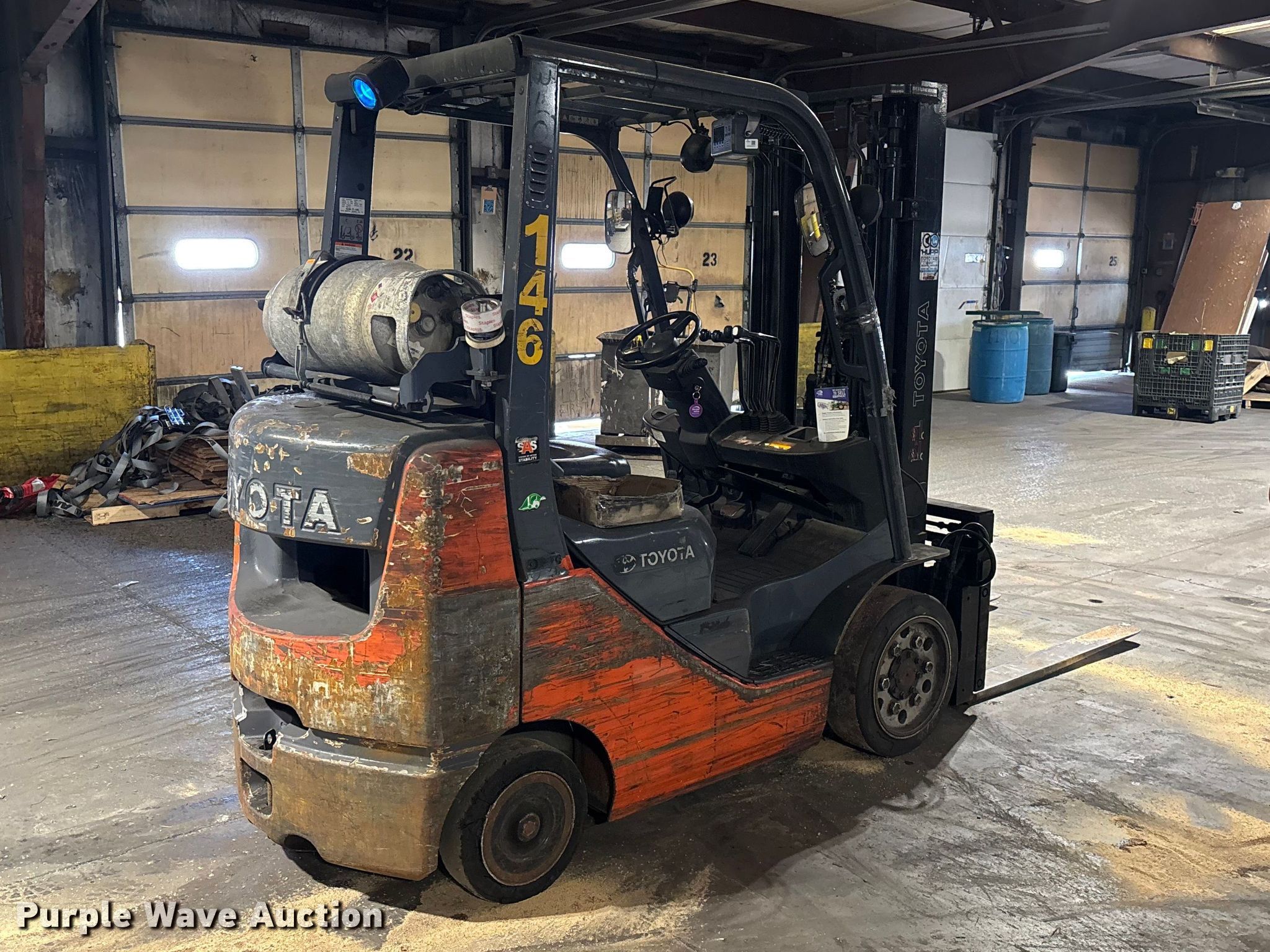 Purple Wave is selling a used Warehouse Forklift in Illinois. This item is a Toyota 8FGCU25 forklift with the following: Hours: 13,463 on meter, Serial: 82820, Unit #: 146