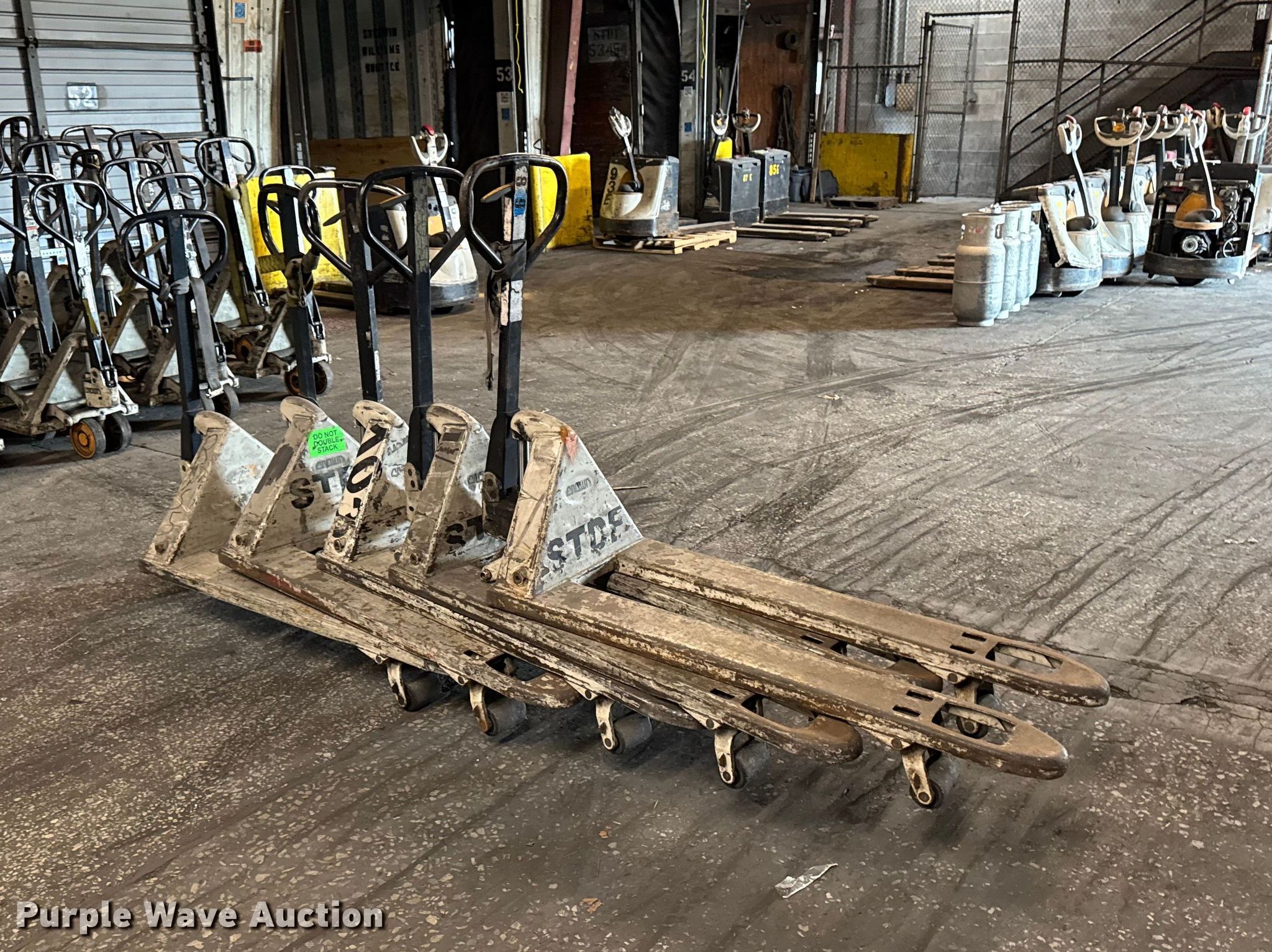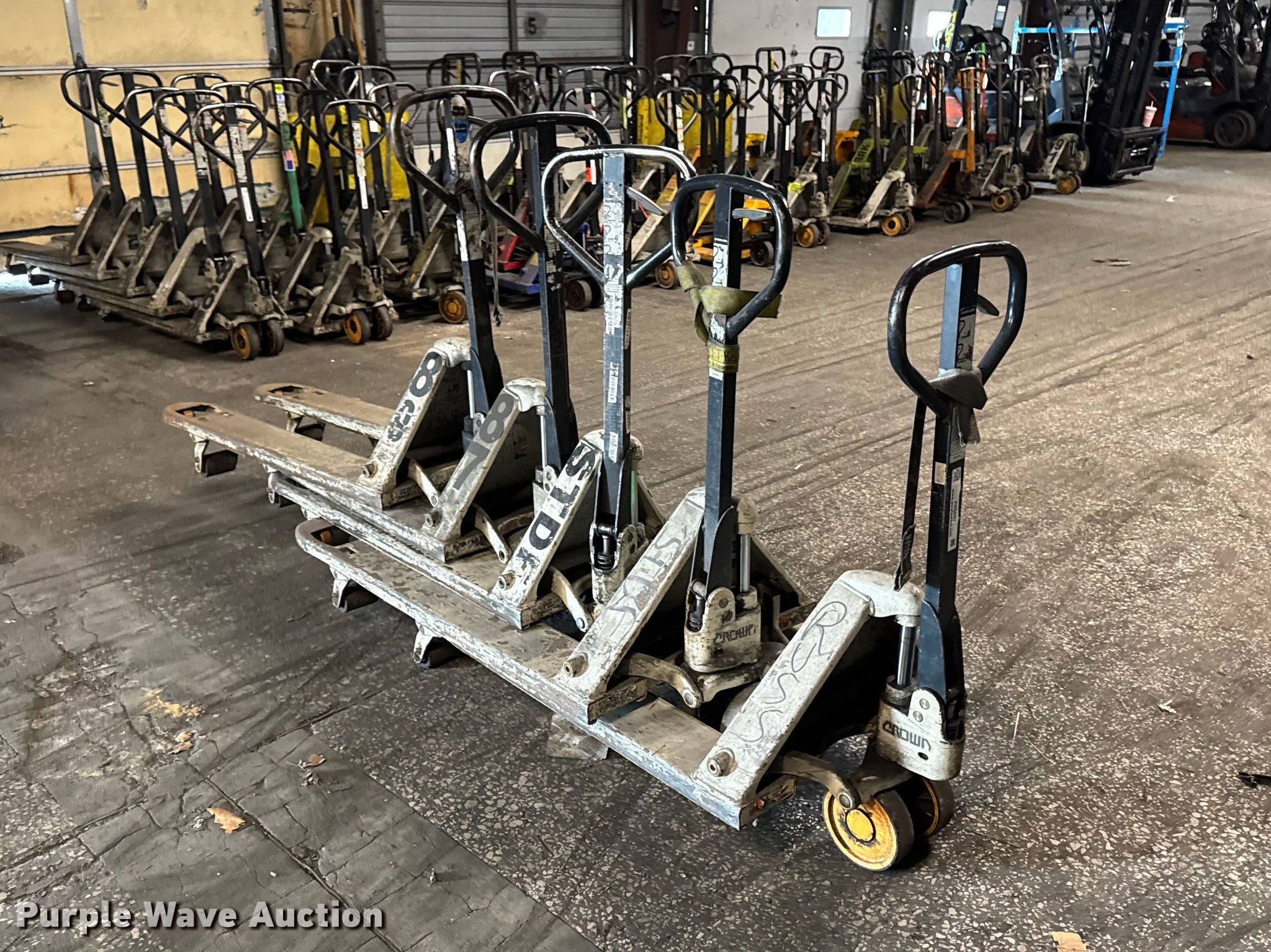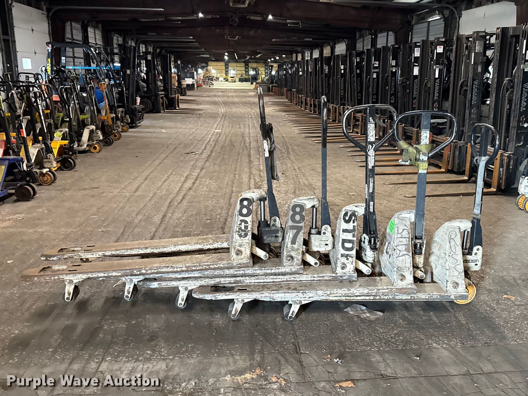 (5) Crown pallet jacks. Standard Forwarding, LLC Strategic Fleet Realignment Sale - Open Inspection April 20th 2026 from 9:00 a.m. to 3:00 p.m.. 2925 Morton Drive. East Moline, IL 61244