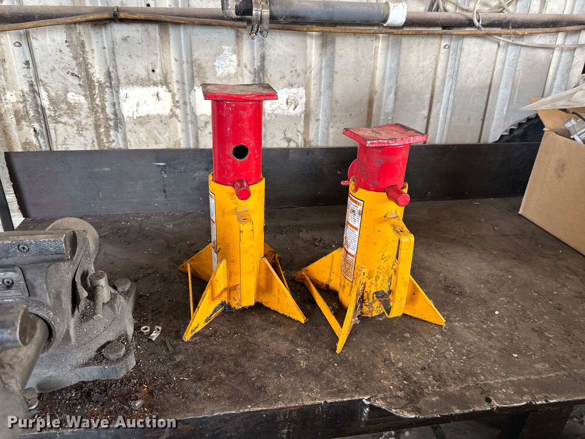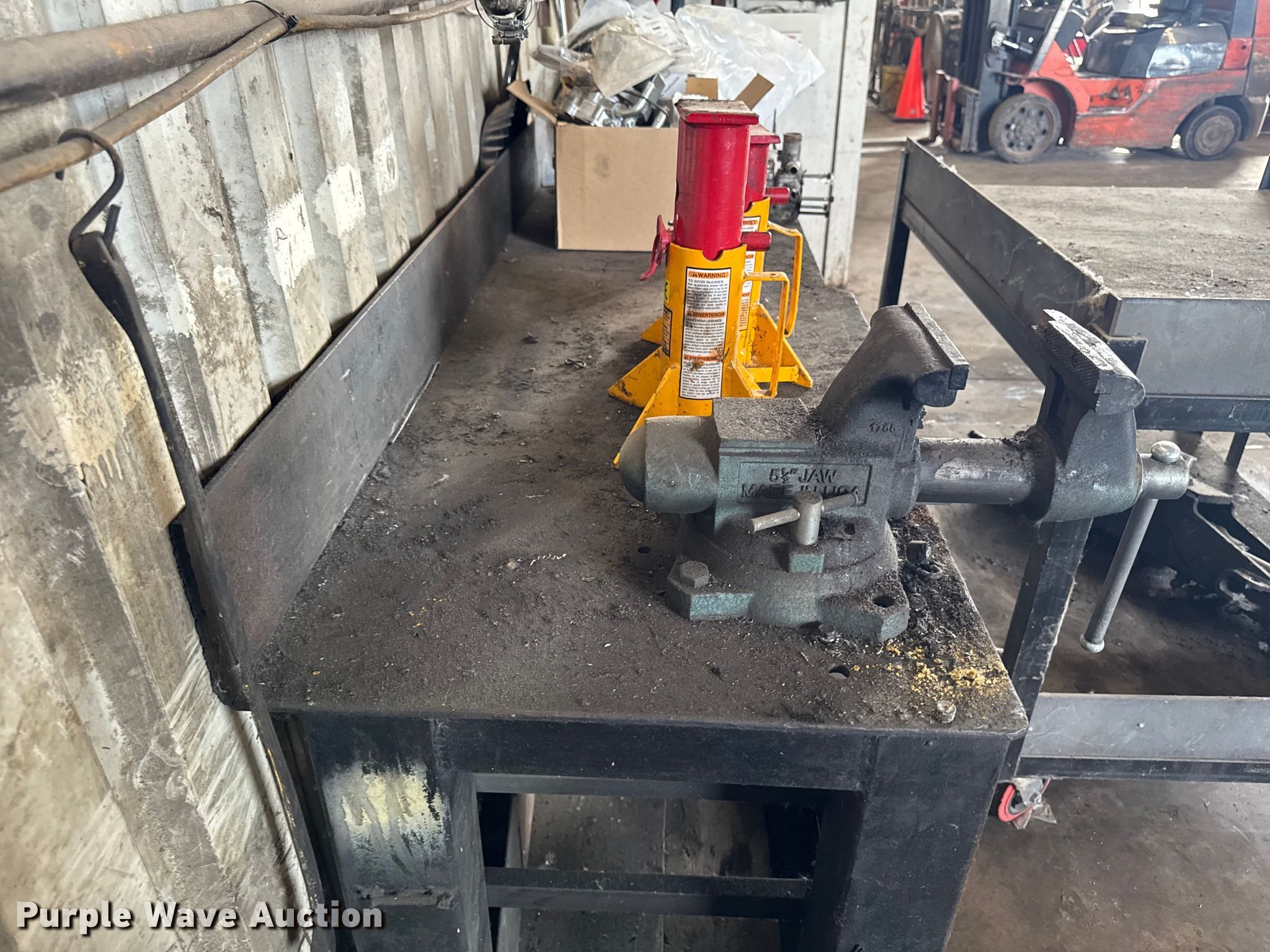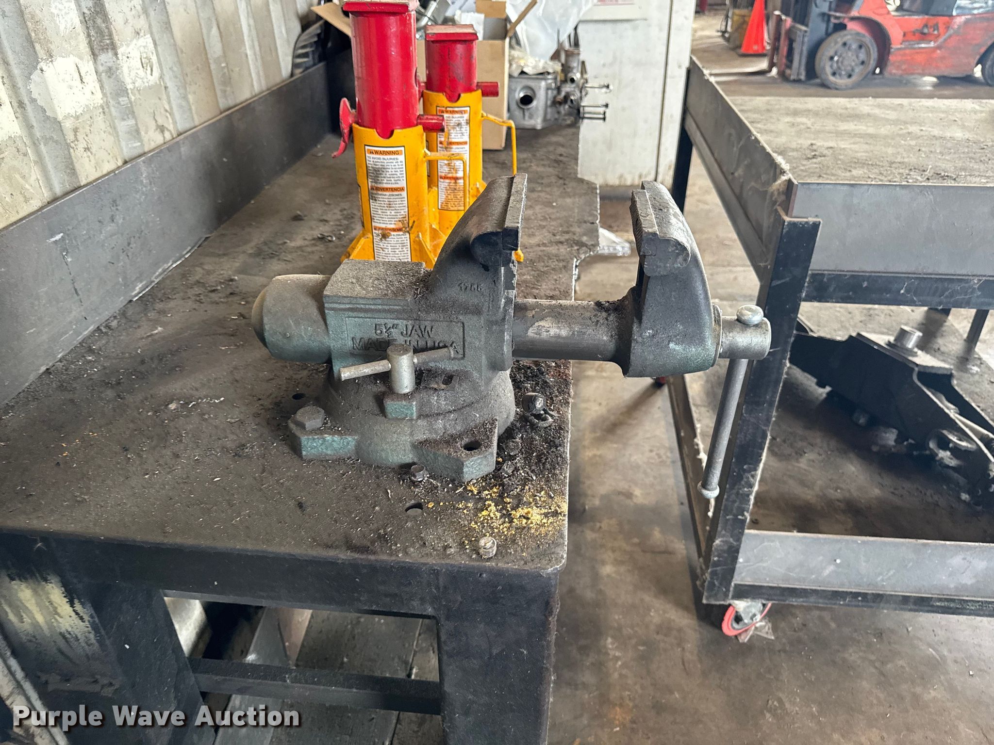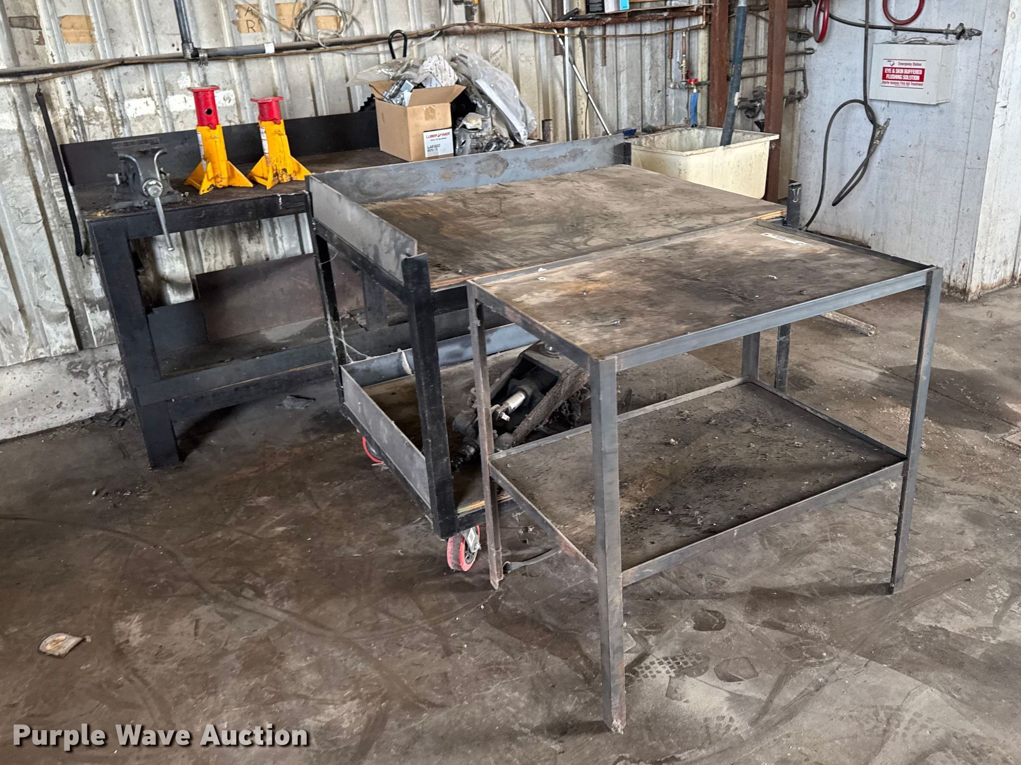 Purple Wave is selling a used Tools in Illinois. This item is a Tools with the following: (2) steel shop tables, Rolling shop table, Global jack stands, Parts, Jumbo metal harper dust pan, 5.5" Wilton vice
