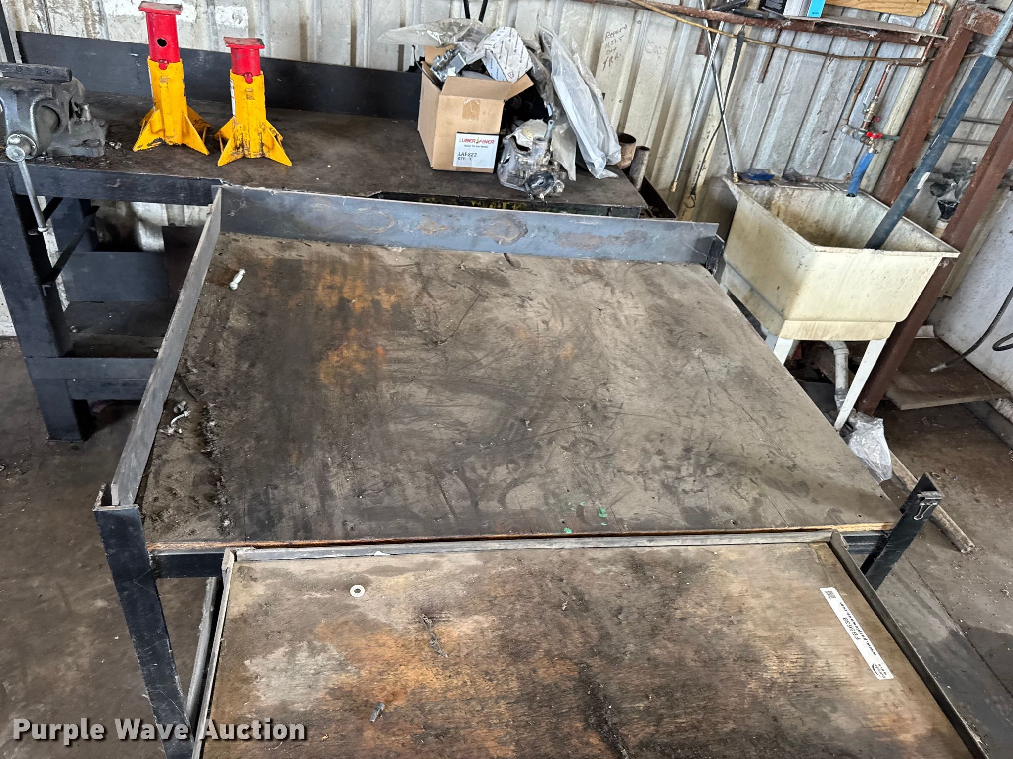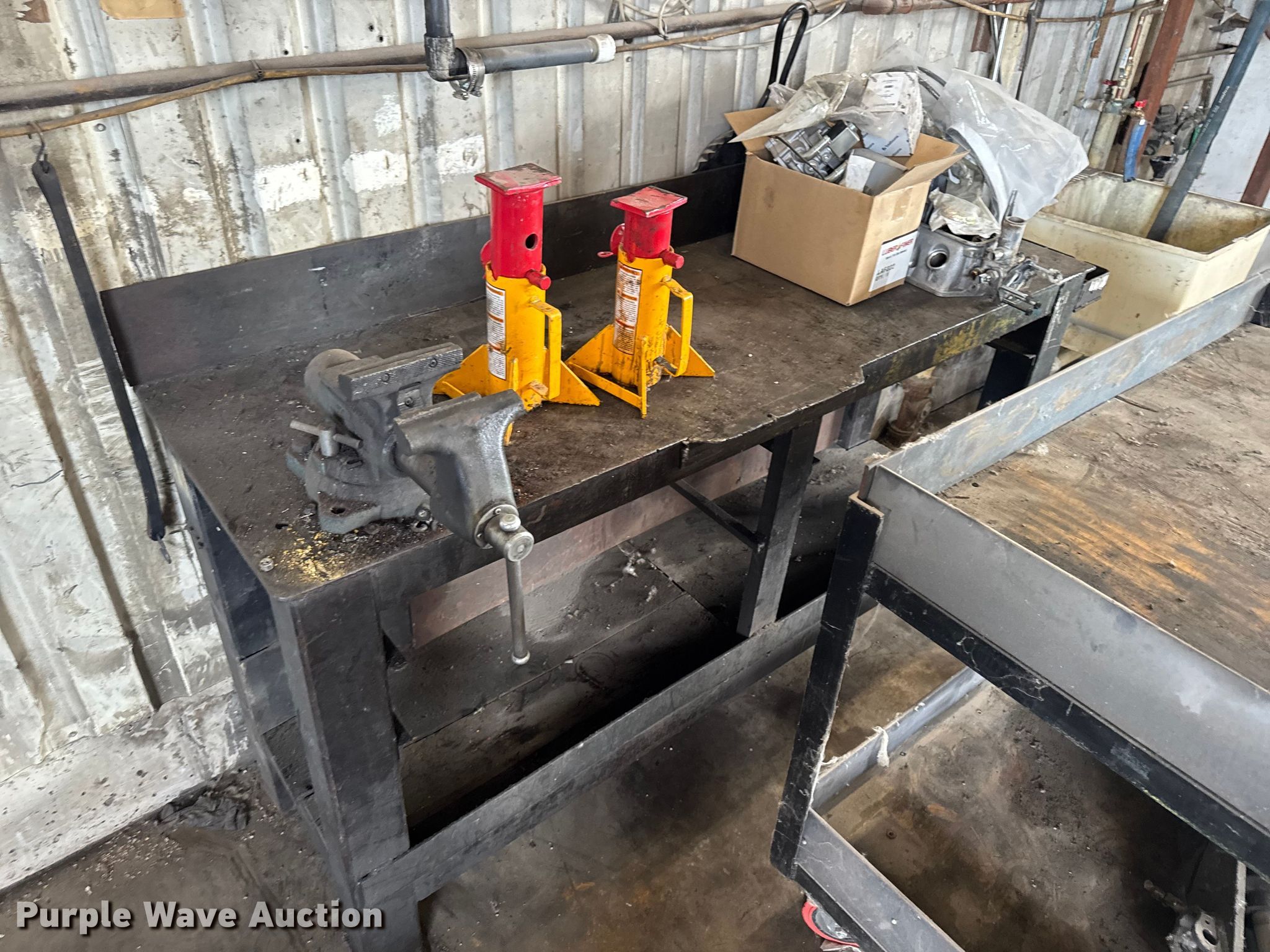 Tools. (2) steel shop tables, Rolling shop table, Global jack stands, Parts, Jumbo metal harper dust pan, 5.5" Wilton vice. Standard Forwarding, LLC Strategic Fleet Realignment Sale - Open Inspection April 20th 2026 from 9:00 a.m. to 3:00 p.m.. 2925 Morton Drive. East Moline, IL 61244