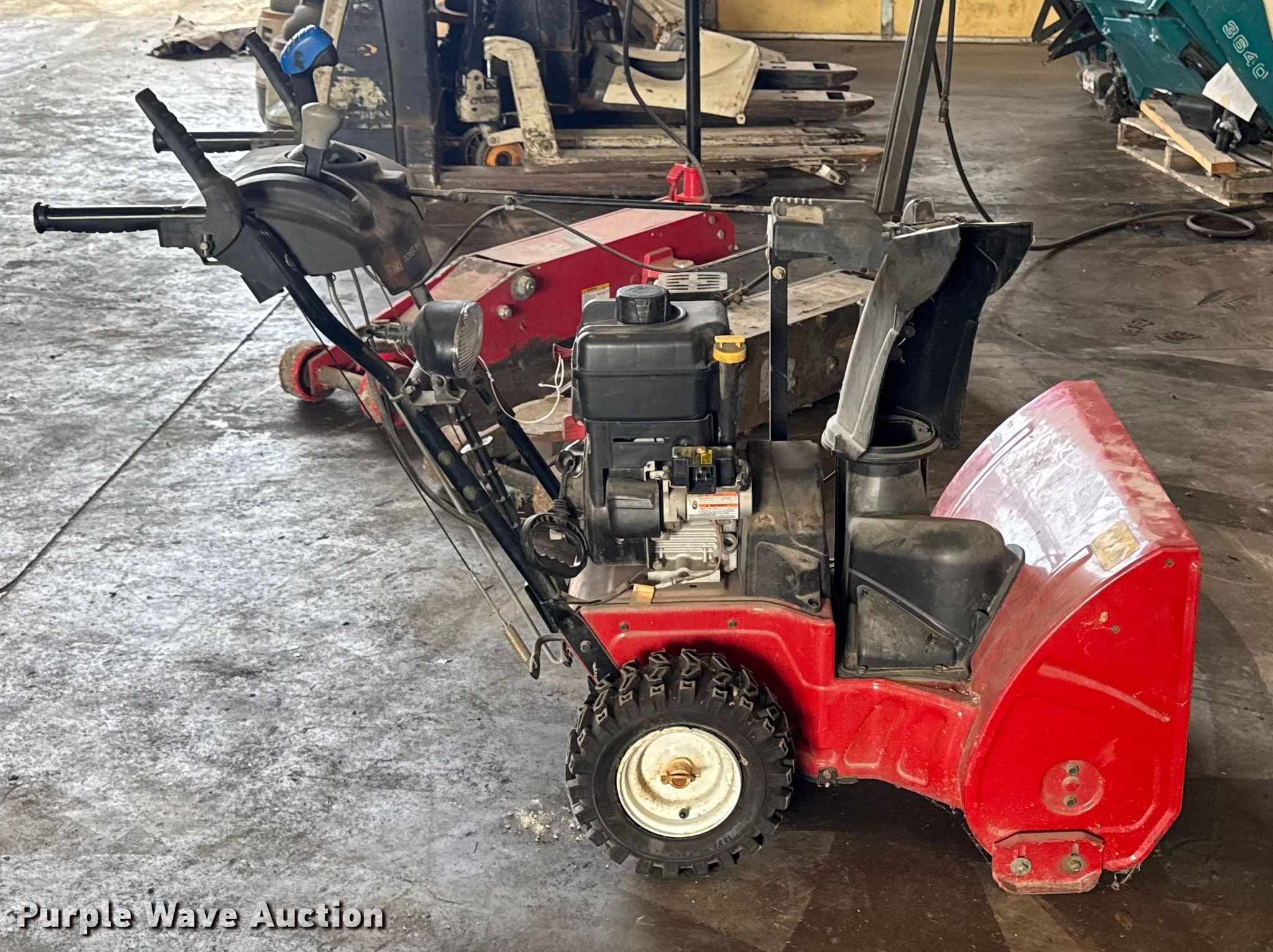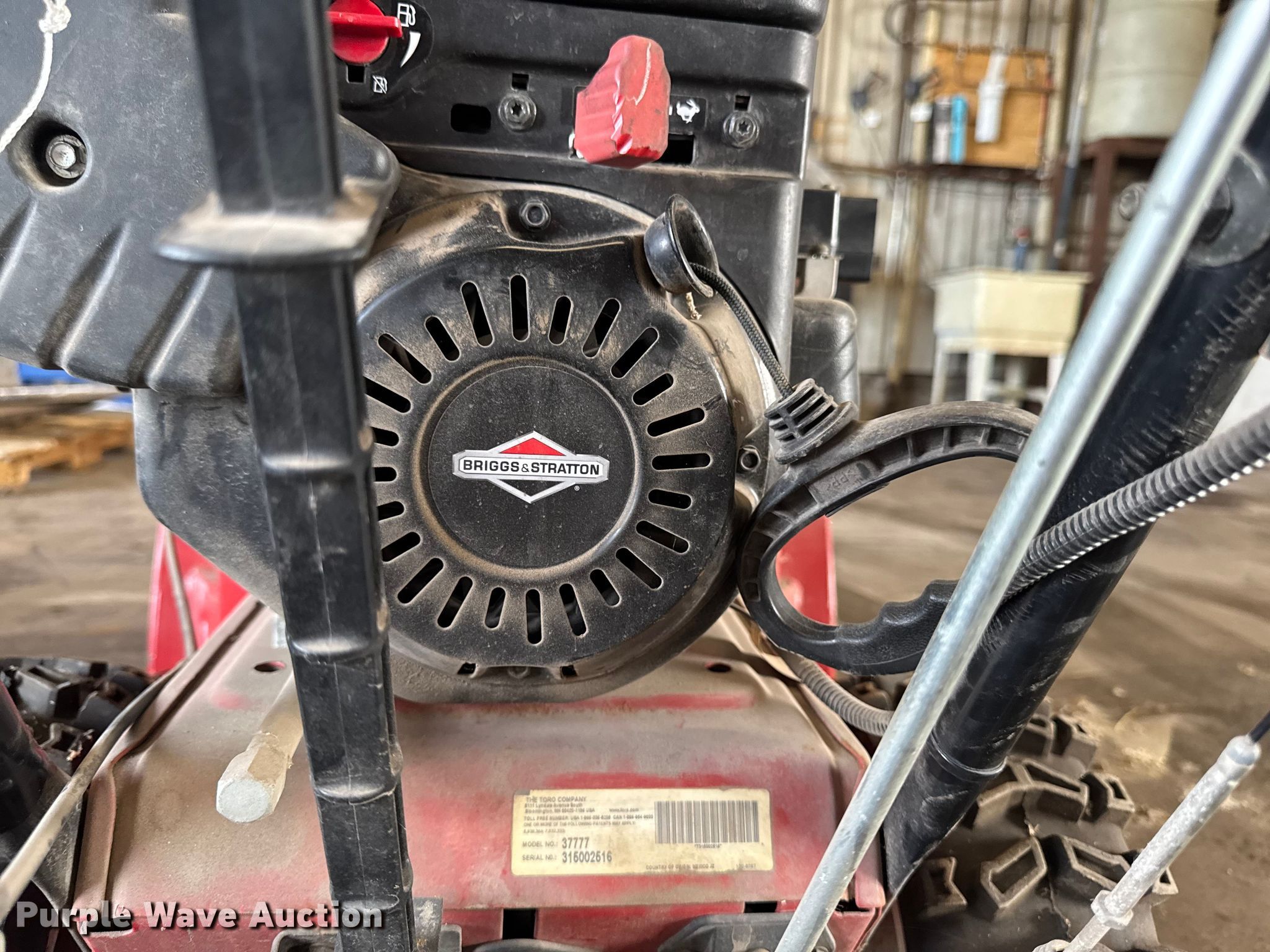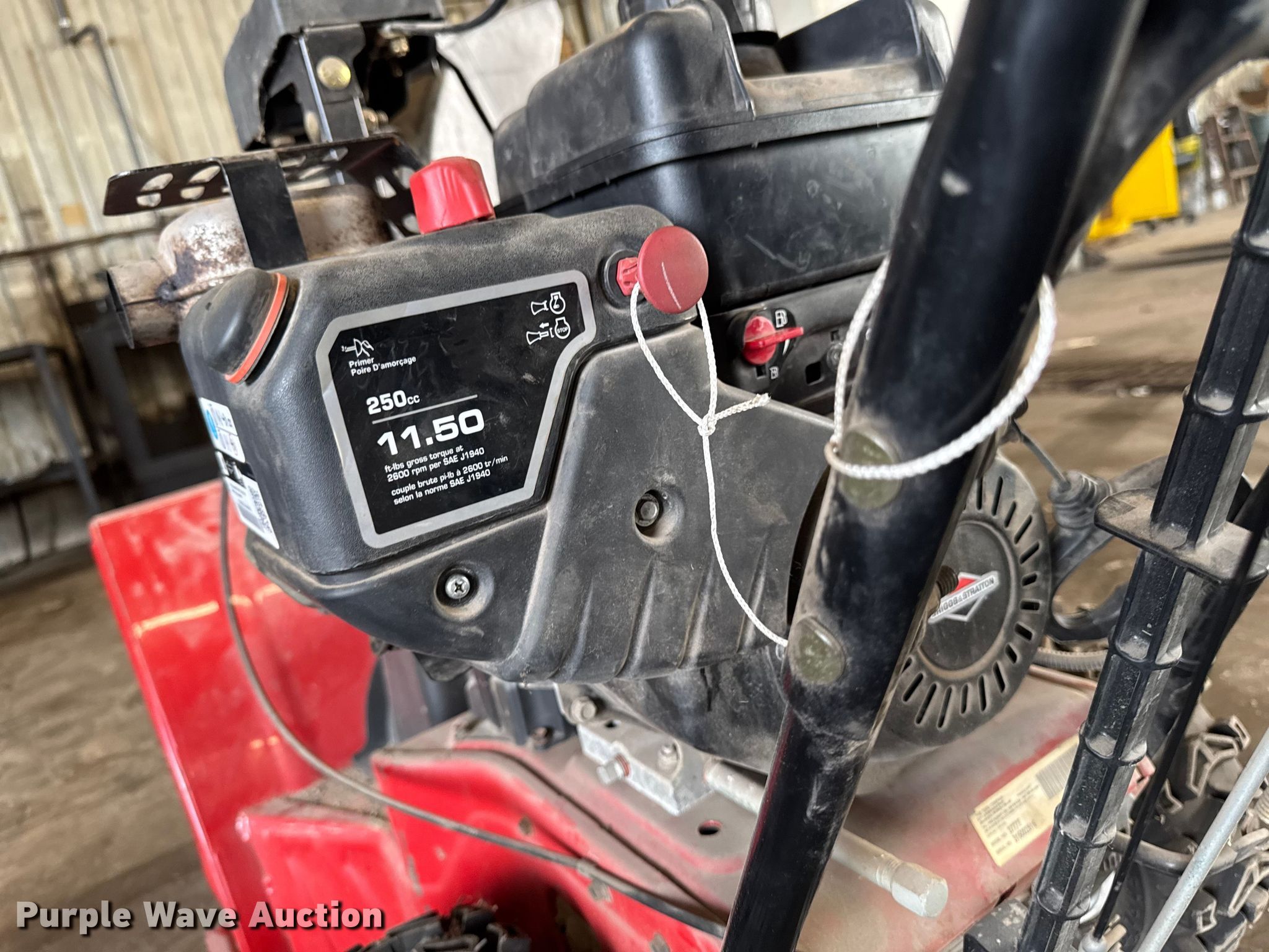 Toro Powermax 826 OTE snow blower. Serial: 315002516. Dimensions Width: 26". Engine Briggs & Stratton, Displacement: 250 cc, Cylinders: 1, Fuel type: Gas. Transmission 6F - 1R. Tires Size: 18x5-6. Standard Forwarding, LLC Strategic Fleet Realignment Sale - Open Inspection April 20th 2026 from 9:00 a.m. to 3:00 p.m.. 2925 Morton Drive. East Moline, IL 61244