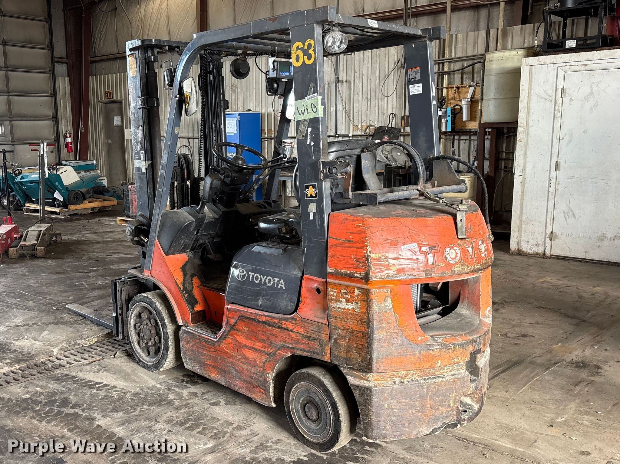 Toyota 7FGCU25 forklift for sale in East Moline, Illinois. Item FB5643 will sell on April 21st, 2026.