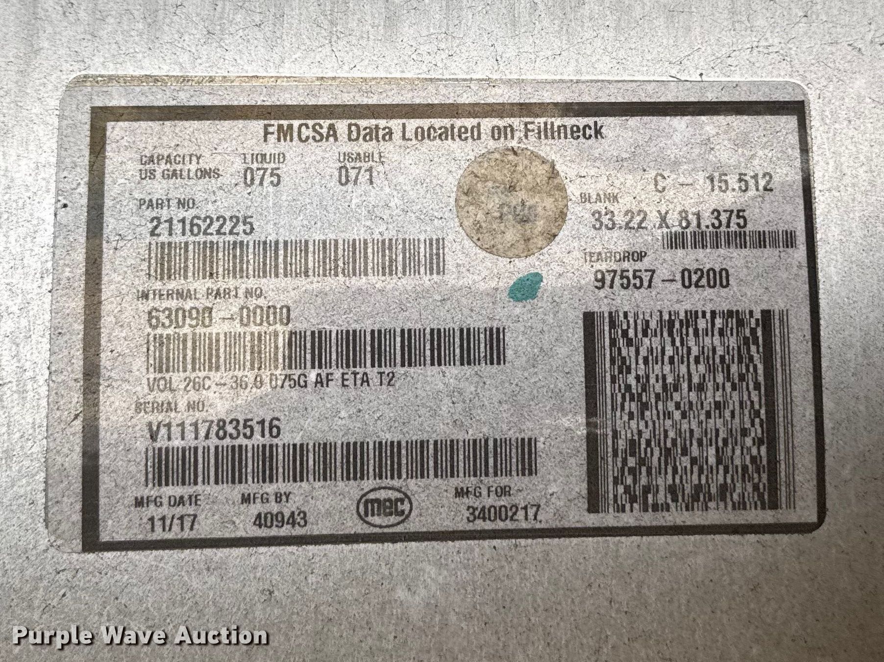 Purple Wave is selling a used Truck Part and Attach. in Illinois. This item is a (2) aluminum fuel tanks with the following: (2) aluminum fuel tanks. Standard Forwarding, LLC Strategic Fleet Realignment Sale - Open Inspection April 20th 2026 from 9:00 a.m. to 3:00 p.m.. 2925 Morton Drive. East Moline, IL 61244