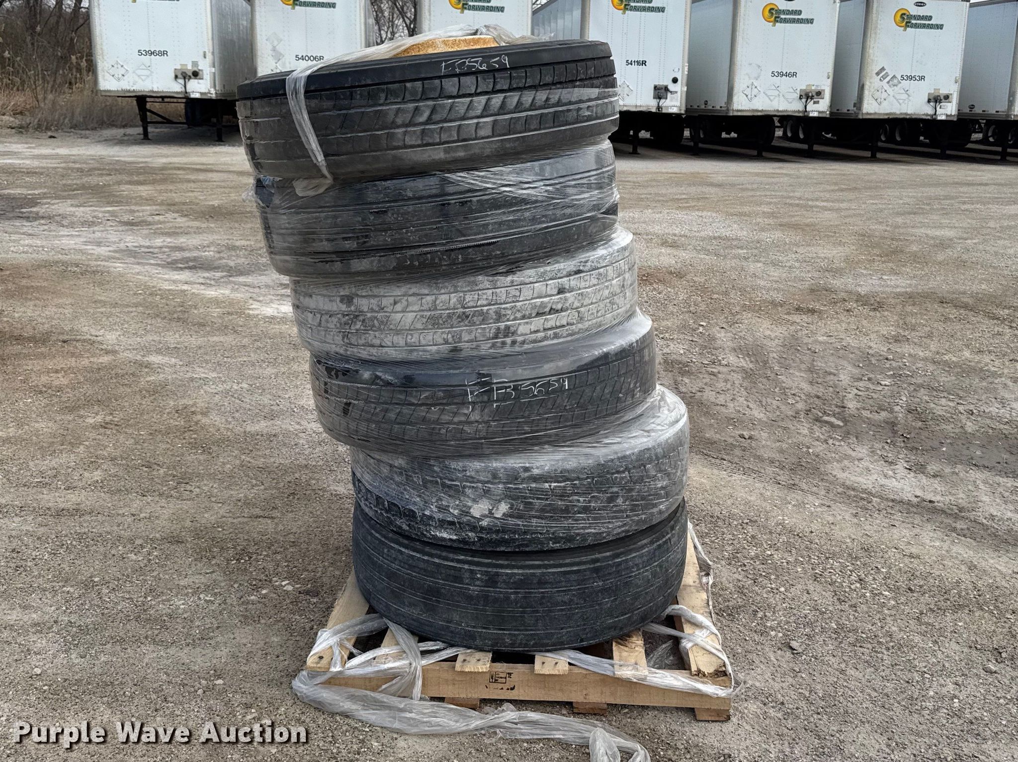 Purple Wave is selling a used Fleet Tires in Illinois. This item is a (6) 275/80R22.5 tires and wheels with the following: (6) 275/80R22.5 tires and wheels. Standard Forwarding, LLC Strategic Fleet Realignment Sale - Open Inspection April 20th 2026 from 9:00 a.m. to 3:00 p.m.. 2925 Morton Drive. East Moline, IL 61244