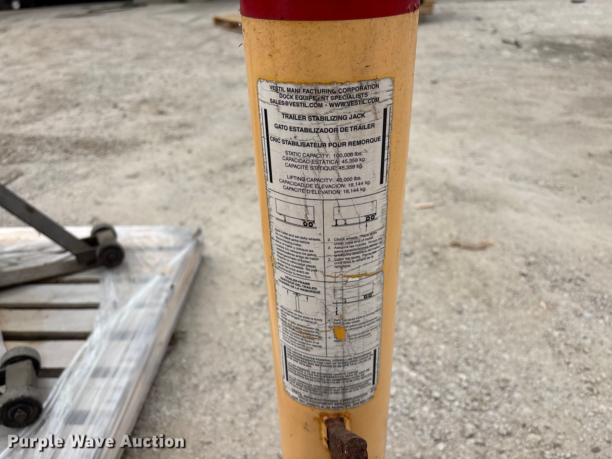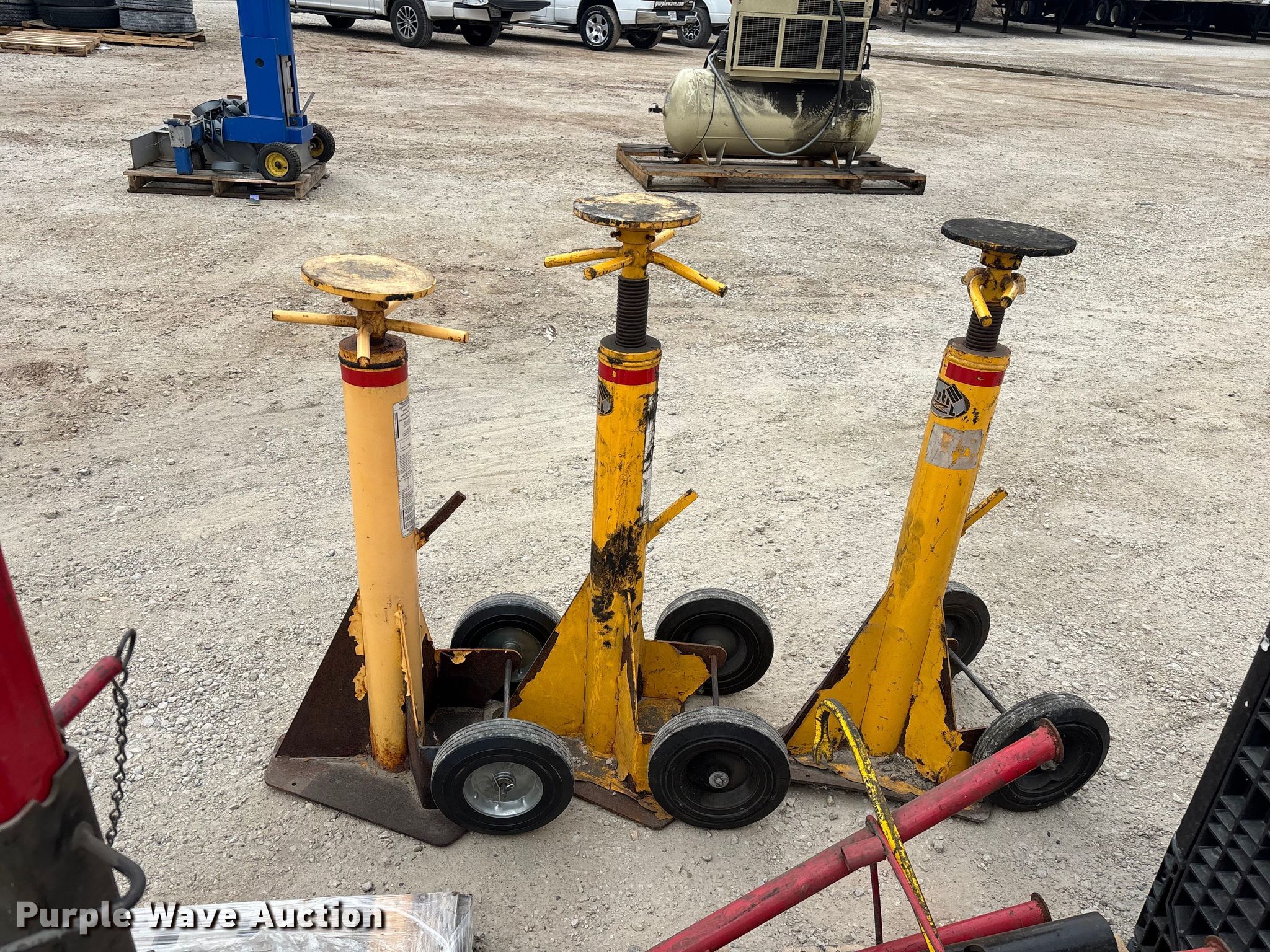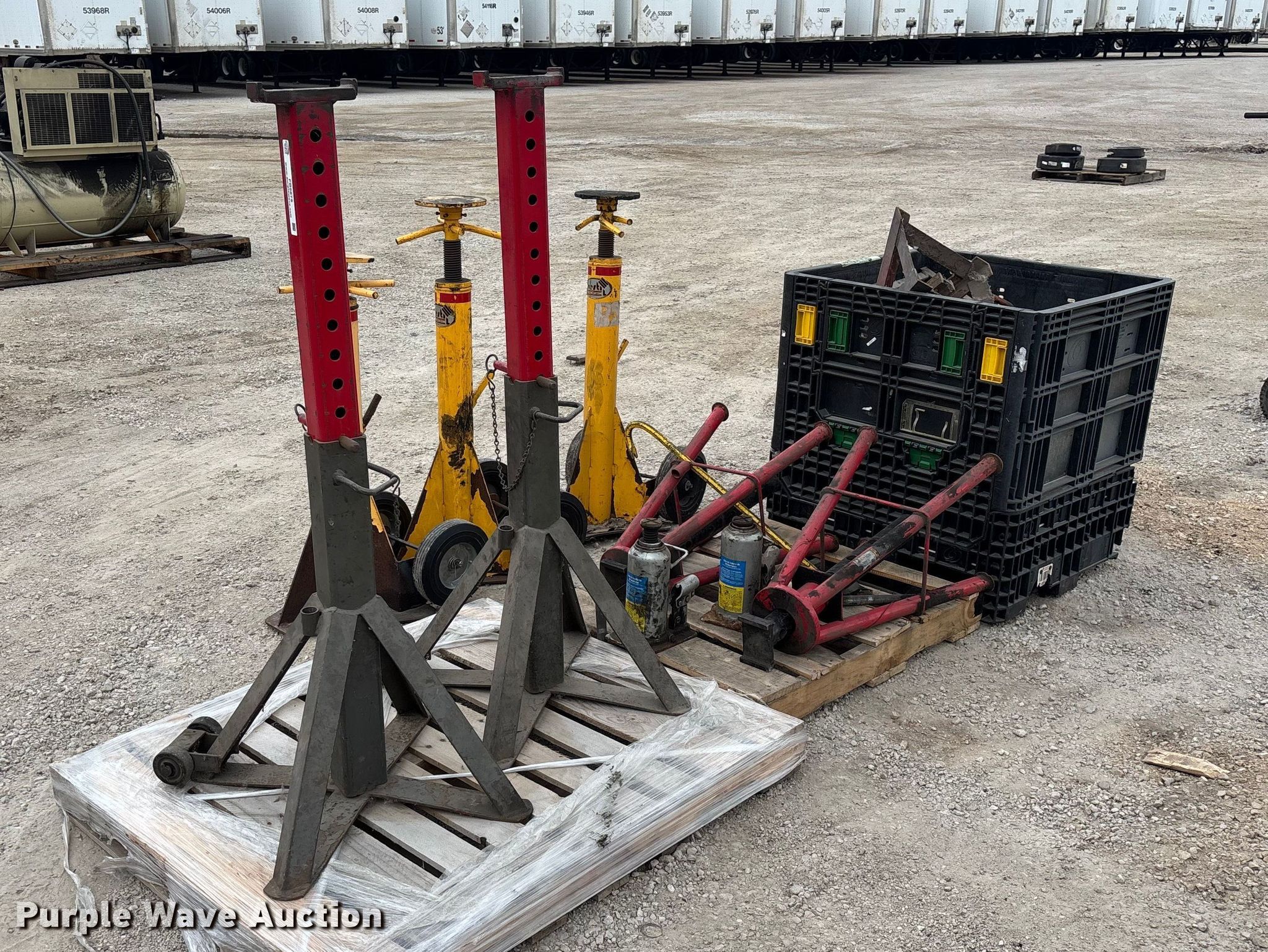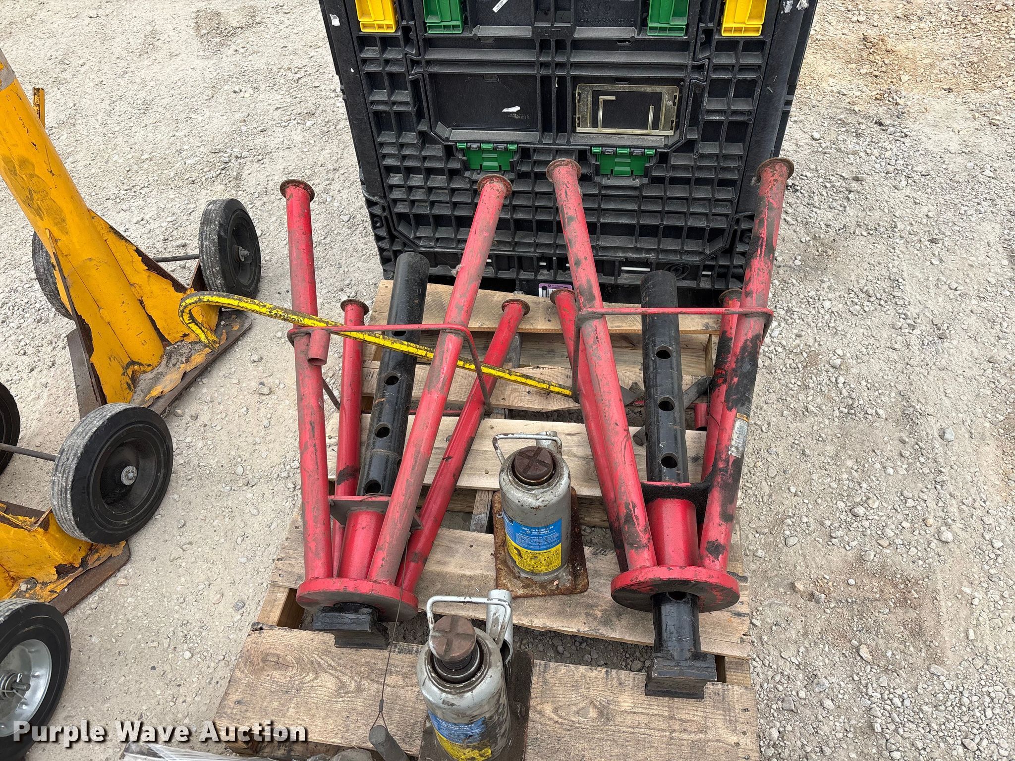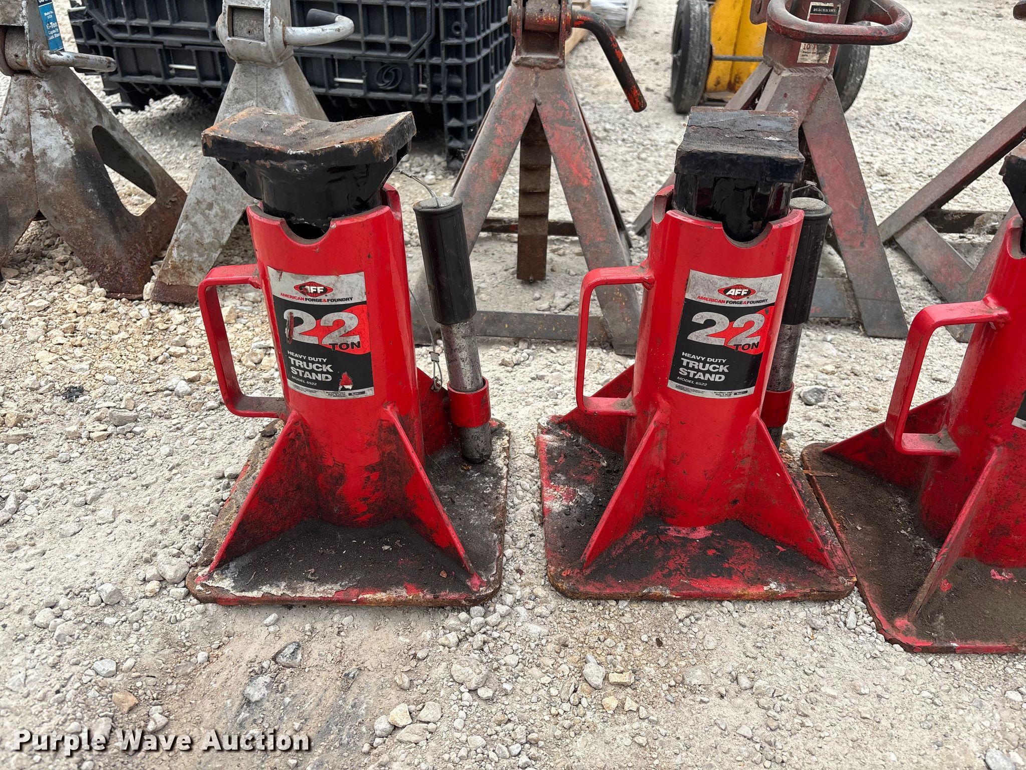 Purple Wave is selling a used Tools in Illinois. This item is a Jacks and jack stands with the following: (2) Gray No. 10-TH, Capacity: 20,000 lbs, (2) OTC 9320 bottle jacks, Capacity: 20 tons, (3) Vestil trailer stabilizer jacks, Capacity: 40,000 lbs, (4) AFF 6522 truck ttands, Capacity: 22 tons, (8) jacks stands