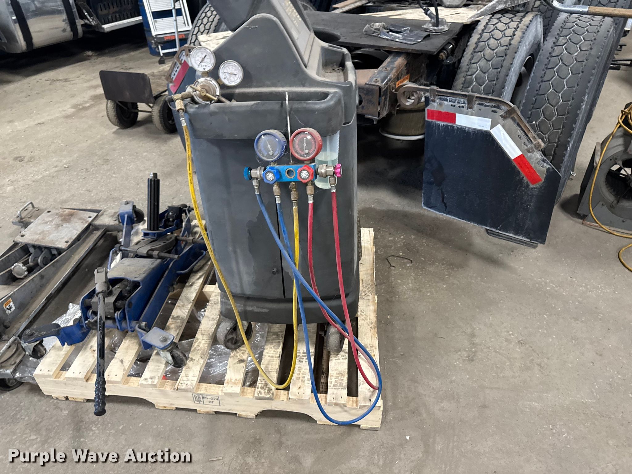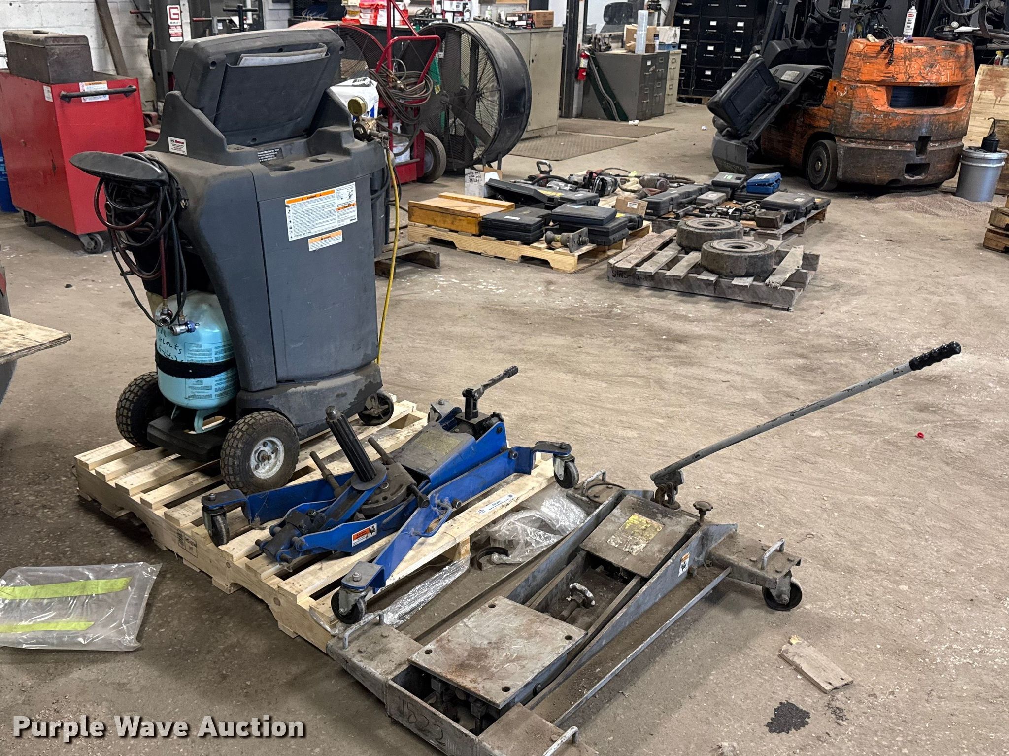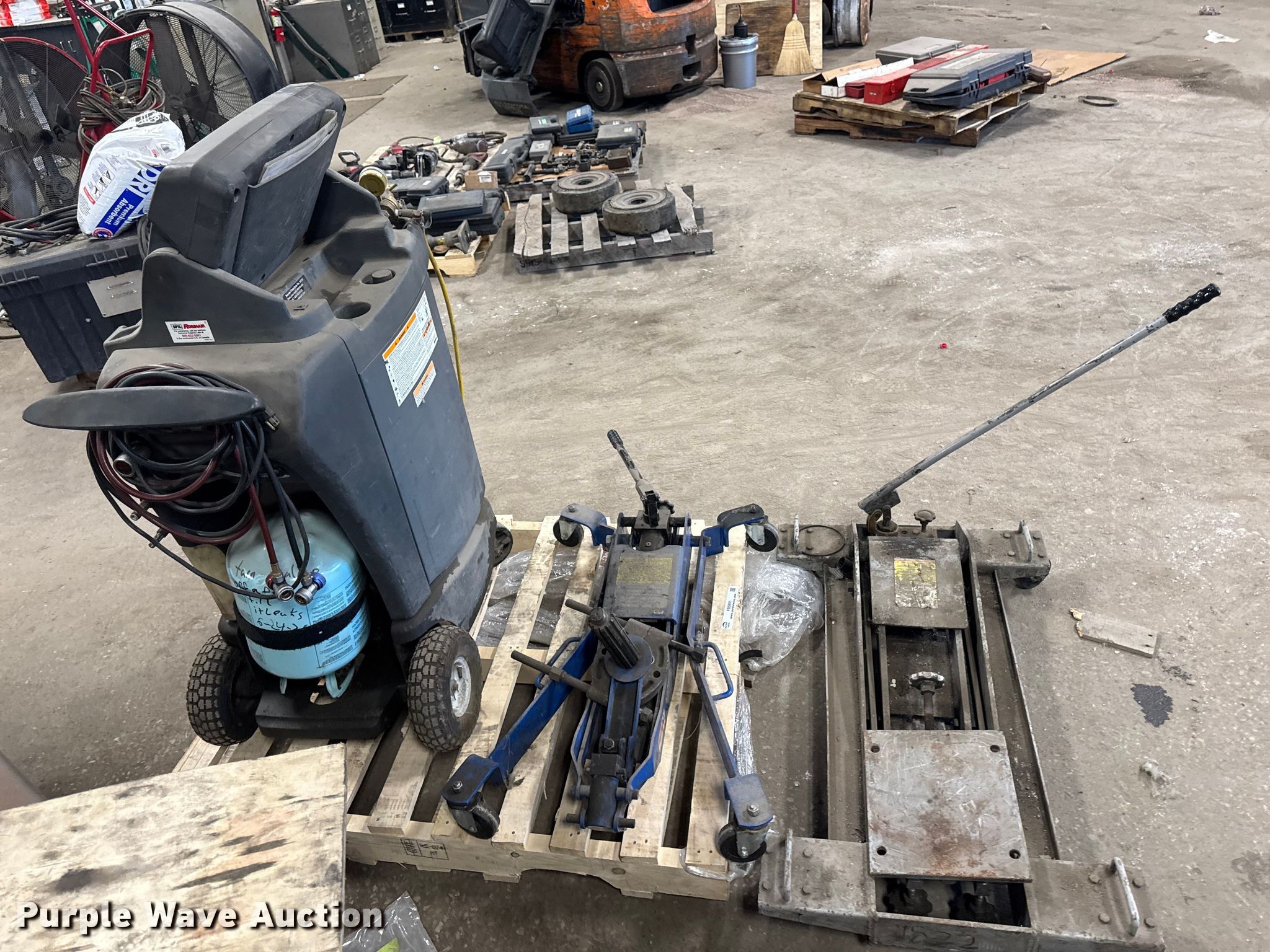 Purple Wave is selling a used Tools in Illinois. This item is a Tools with the following: Robinair 34788 R134A refrigerant recovery recycling unit, OTC 5018A clutch jack, OTC 1522 low lift transmission jack