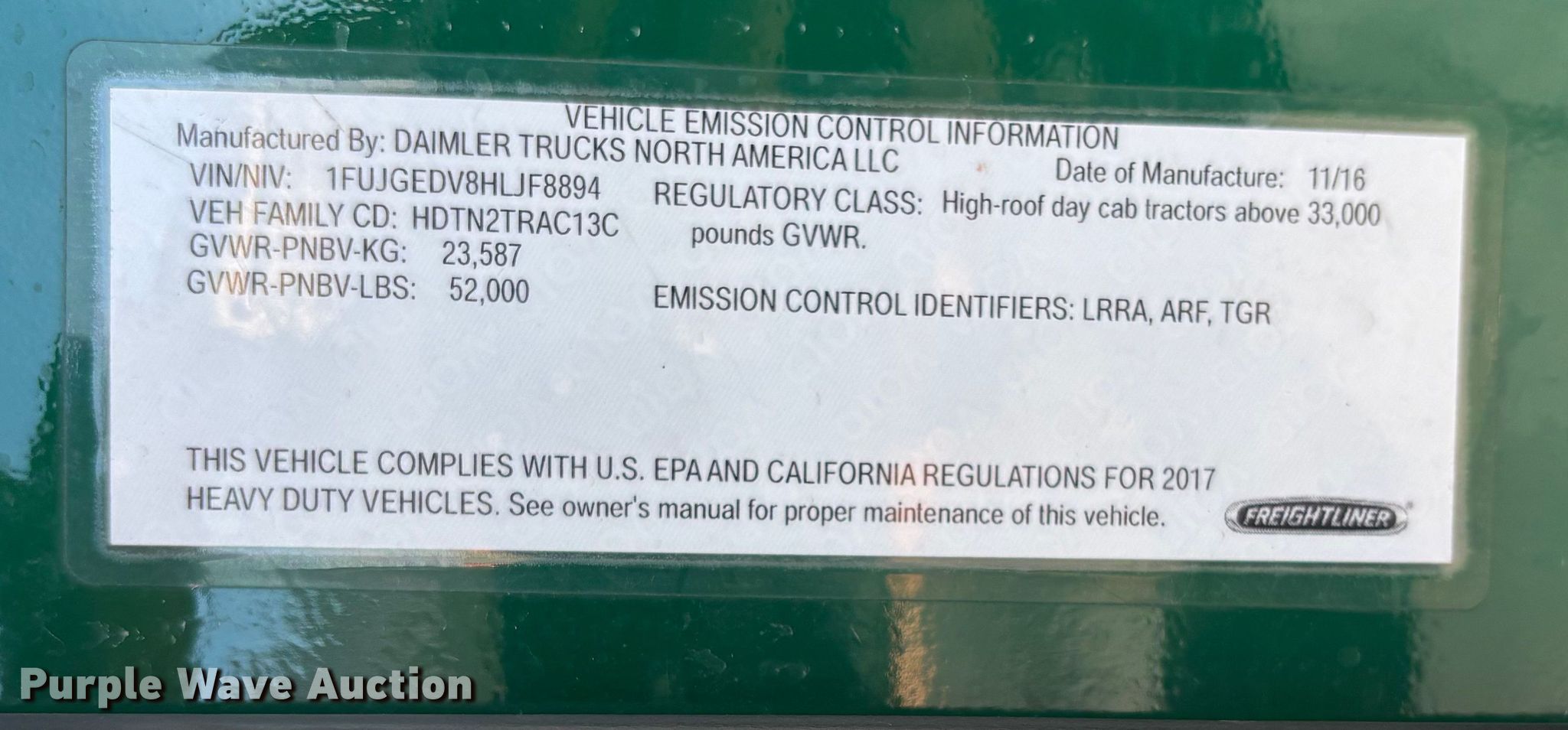 2017 Freightliner Cascadia 125 semi truck for sale in East Moline, Illinois. Item FG1018 will sell on April 21st, 2026.