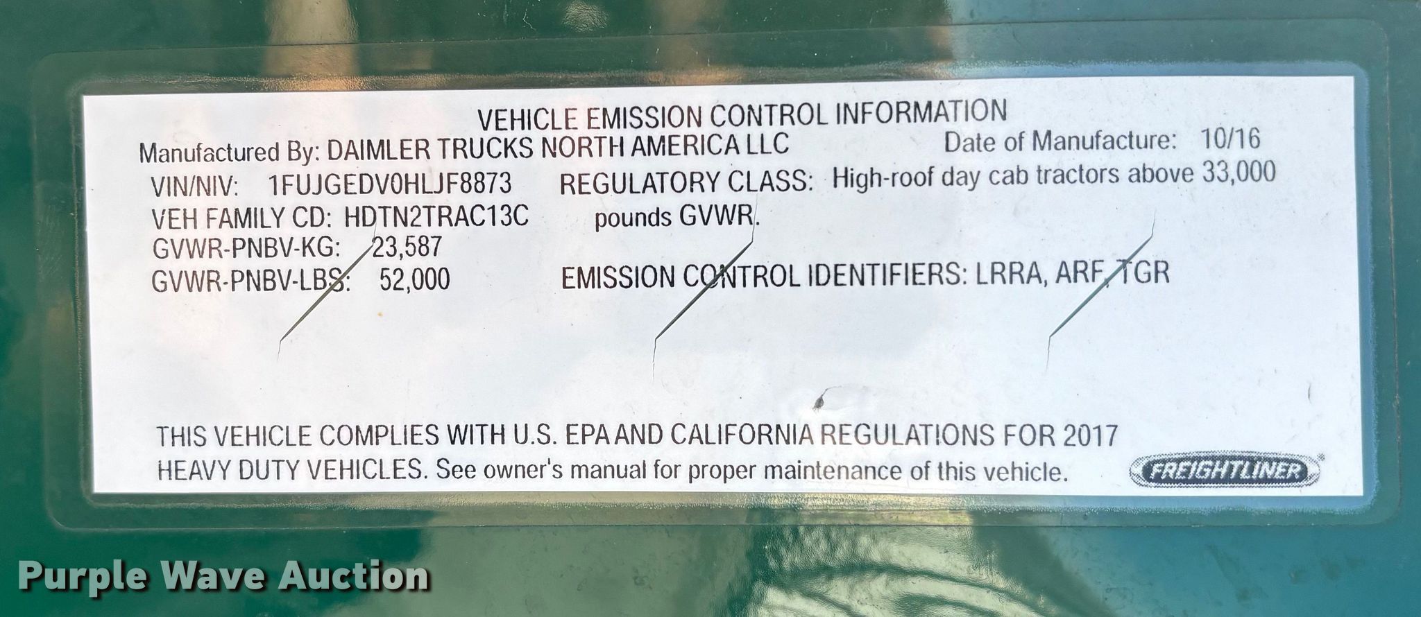 Purple Wave is selling a used Truck Tractor in Illinois. This item is a 2017 Freightliner Cascadia 125 semi truck with the following: Miles: Unknown, VIN: 1FUJGEDV0HLJF8873, Unit #: 1082