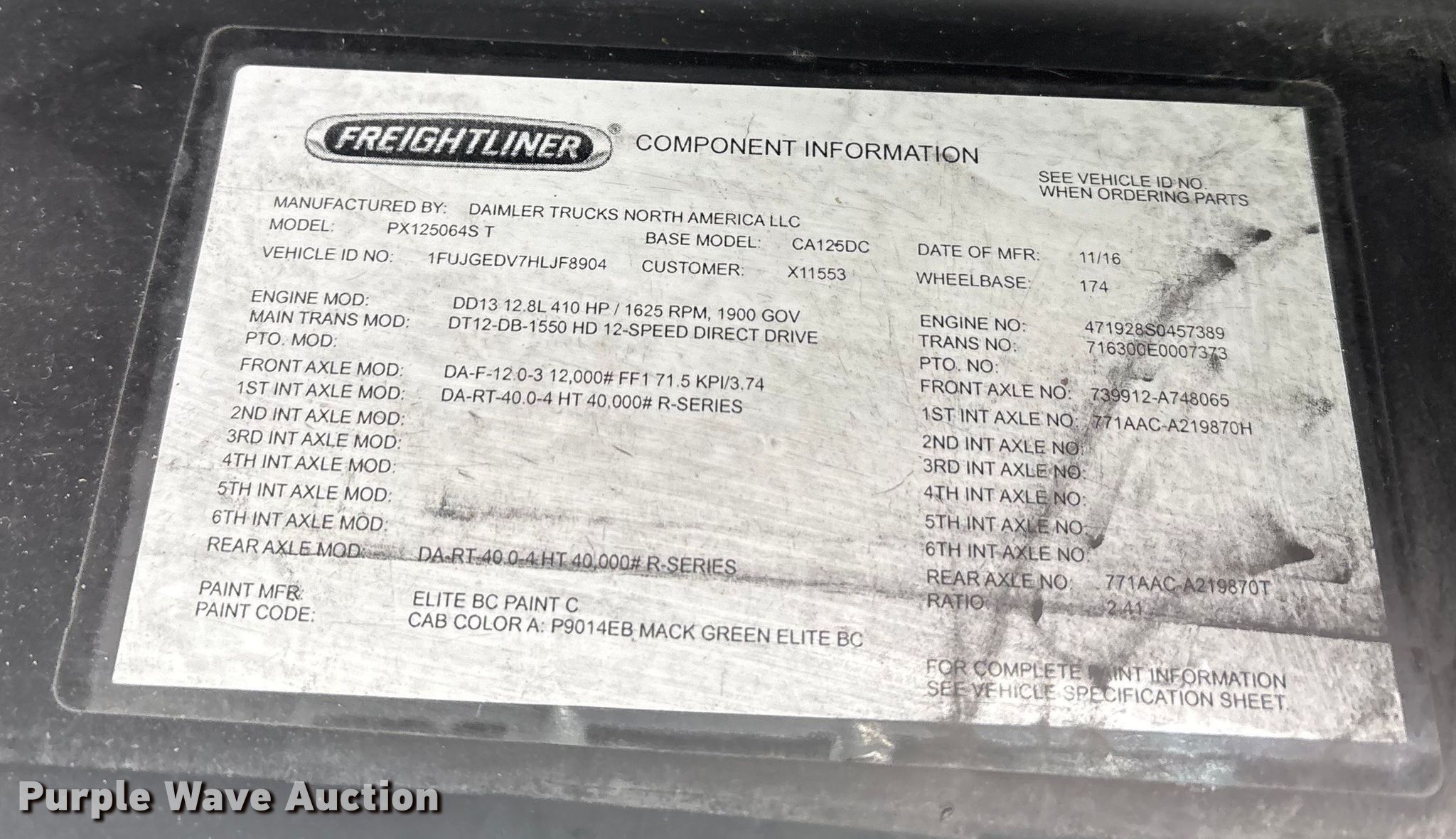 - VIN: 1FUJGEDV7HLJF8904