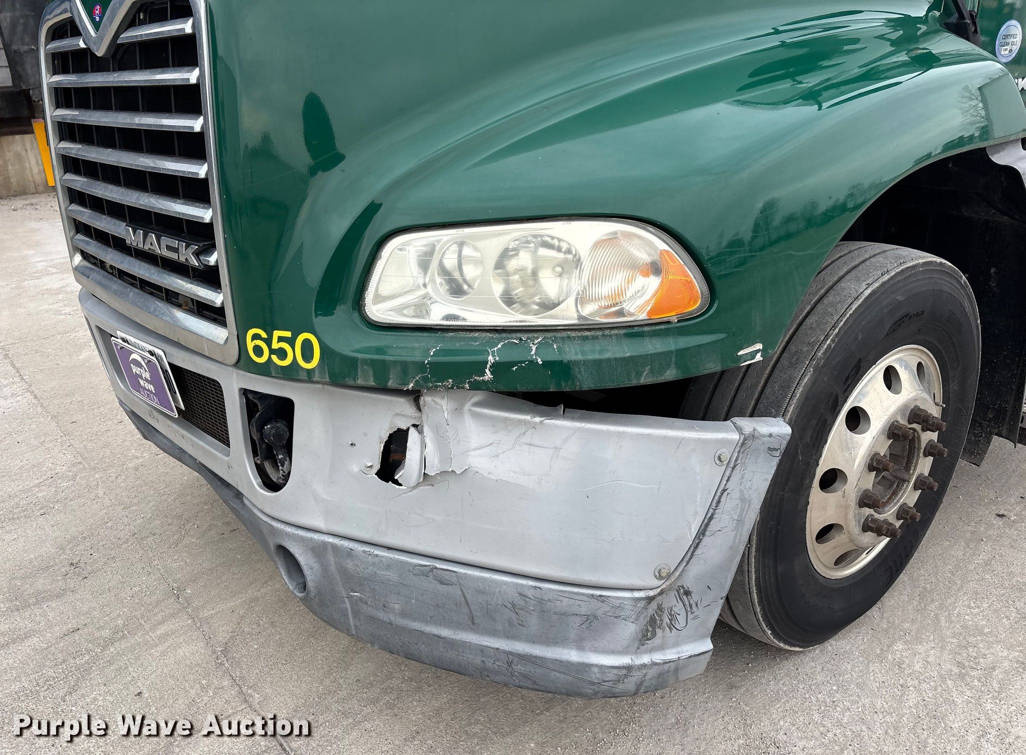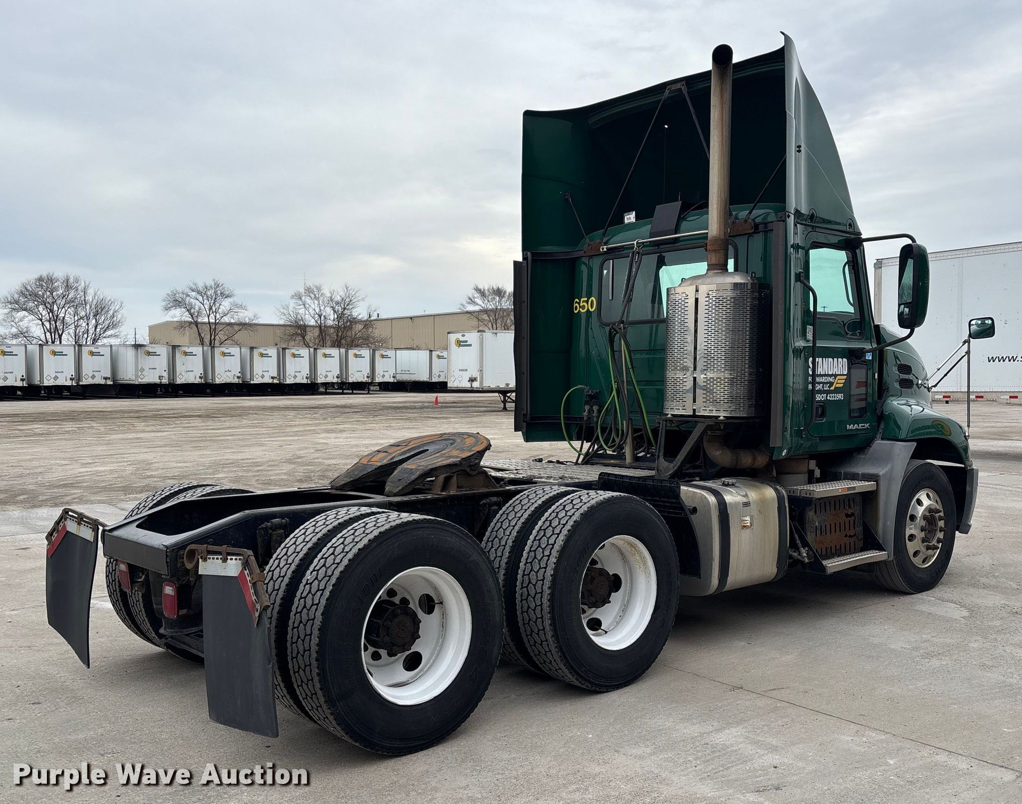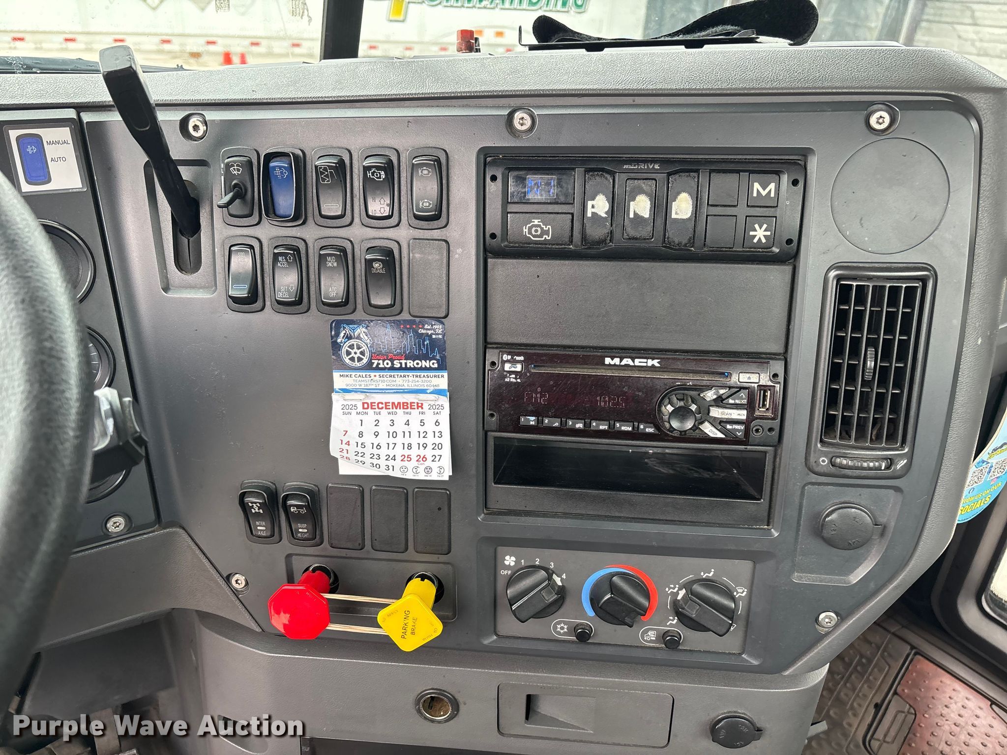 2016 Mack CXU613 semi truck. Miles: 315,743 on odometer, Hours: 18,082 on meter, VIN: 1M1AW02Y6GM053083, Unit #: 650. Engine Mack MP7, Displacement: 10.8L, Cylinders: 6, Fuel type: Diesel, HP: 395, Engine brake. Transmission Mack MDrive, Automated manual. Chassis Axles: Tandem, Differential lock: Inter-axle, Suspension: Air Dump valves, Brakes: Air, GVWR: 52,000 lbs FAWR: 12,000 lbs, IAWR: 20,000 lbs, RAWR: 20,000 lbs, Wheelbase: 162". Interior AC, Heat, Heated mirrors, Cruise control, Air ride cab, Brake controller. Features Deck plate: Aluminum, Fifth wheel type: Fixed, Fuel tank: Dual. Tires Size: 295/75R22.5. Notes Dash warning indicator: Check engine, Jump start required during on-site data collection. Indiana title. Title distribution may be delayed up to 30 days from verification of funds. Standard Forwarding, LLC Strategic Fleet Realignment Sale - Open inspection April 20 from 9:00 a.m. to 3:00 p.m.. 2925 Morton Drive. East Moline, IL 61244