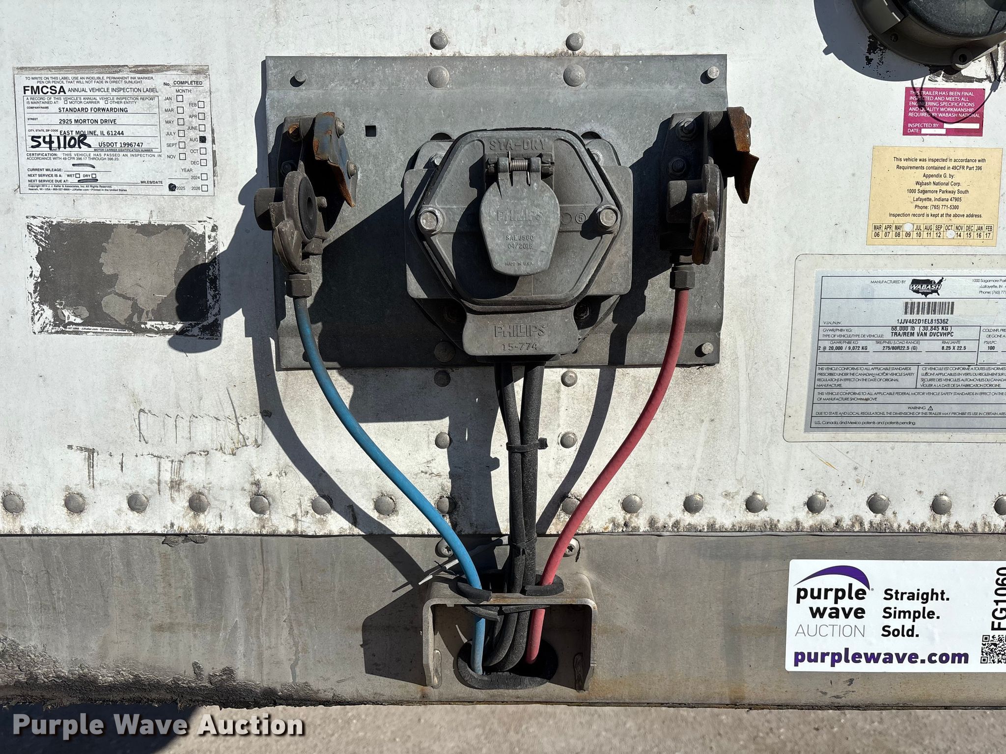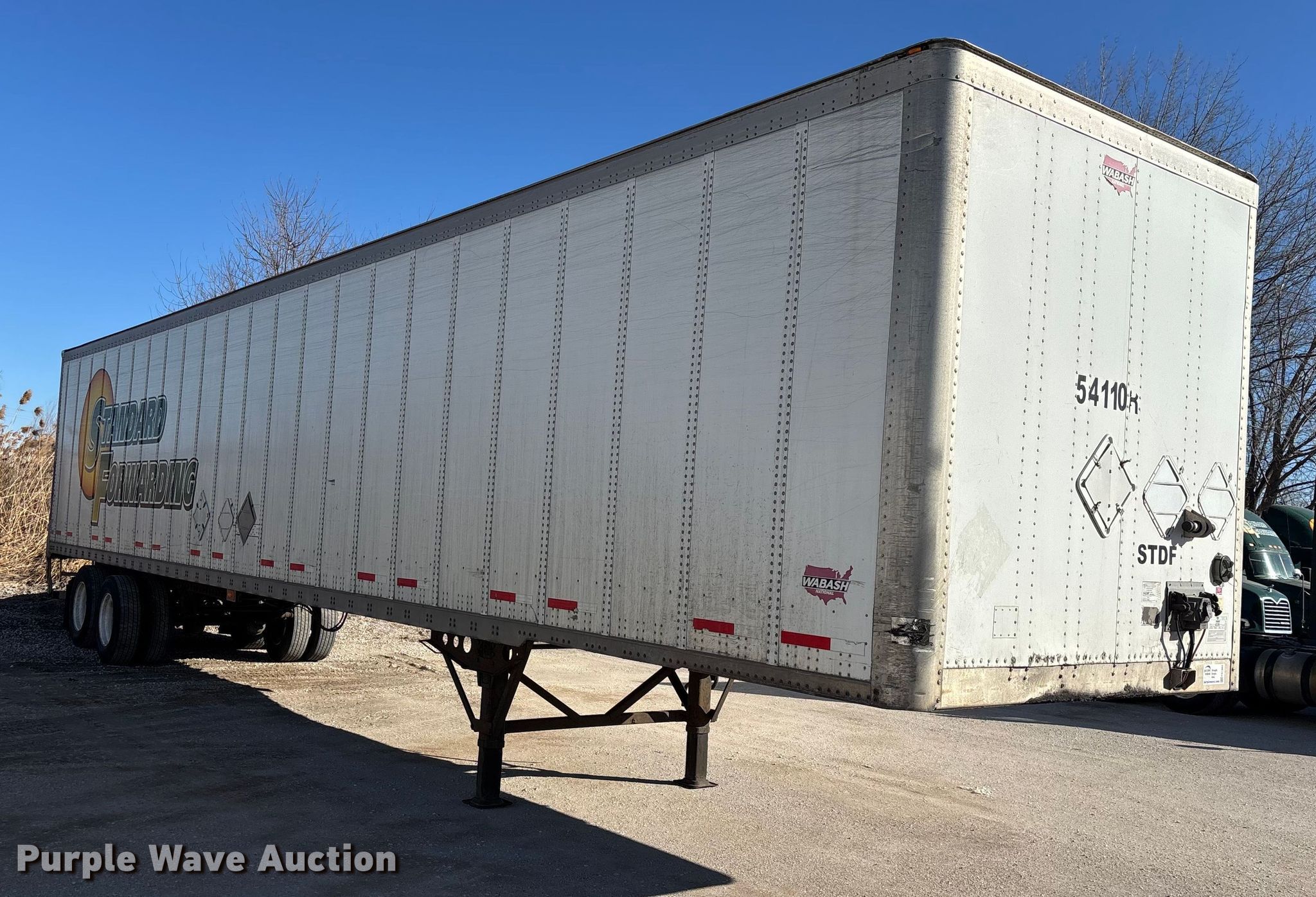 2014 Wabash Duraplate dry van trailer. VIN: 1JJV482D1EL815362, Unit #: 54110R. Dimensions Overall Length: 48' 3", Width: 102", Body Length: 43', Width: 102", Rear door / ramp Width: 93". Features Deck type: Wood. Chassis Landing gear: Dual, Suspension: Spring, Brakes: Air, Axles: Tandem, GVWR: 65,000 lbs, GAWR: 20,000 lbs. Tires Steel wheels, Size: 295/75R22.5. Indiana title. Title distribution may be delayed up to 30 days from verification of funds. Standard Forwarding, LLC Strategic Fleet Realignment Sale - Open inspection April 20 from 9:00 a.m. to 3:00 p.m.. 2925 Morton Drive. East Moline, IL 61244