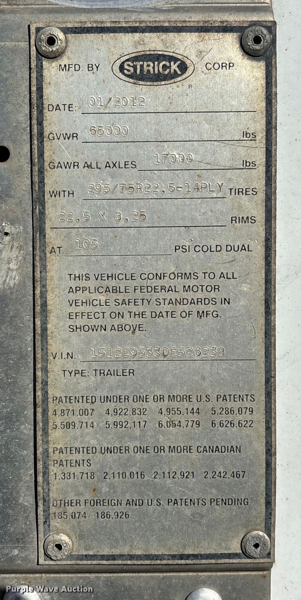 Purple Wave is selling a used Dry Van Trailer in Illinois. This item is a 2013 Strick dry van trailer with the following: VIN: 1S12E9533DE526238, Unit #: 53976R