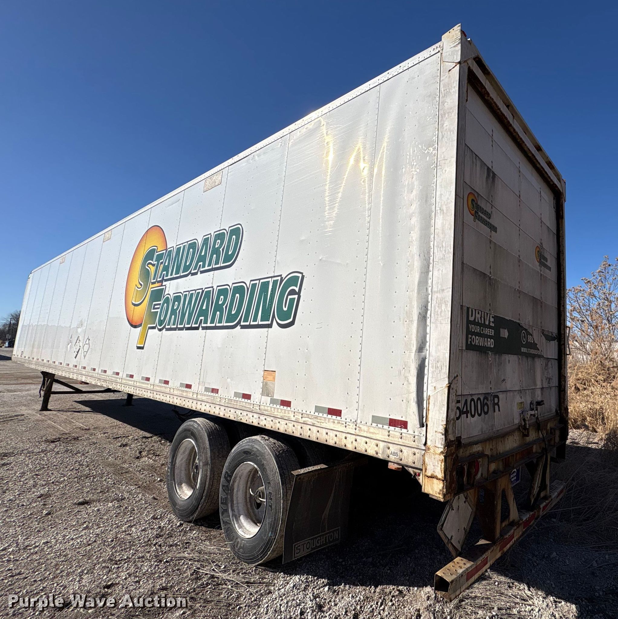 2013 Strick dry van trailer. VIN: 1S12E9531DE526268, Unit #: 54006R. Dimensions Overall Length: 53', Width: 102", Rear door / ramp Width: 93". Features Deck type: Wood, E-track rail system. Chassis Landing gear: Dual, Suspension: Spring, Brakes: Air, Axles: Tandem, GVWR: 65,000 lbs, GAWR: 17,000 lbs. Indiana title. Title distribution may be delayed up to 30 days from verification of funds. Standard Forwarding, LLC Strategic Fleet Realignment Sale - Open inspection April 20 from 9:00 a.m. to 3:00 p.m.. 2925 Morton Drive. East Moline, IL 61244