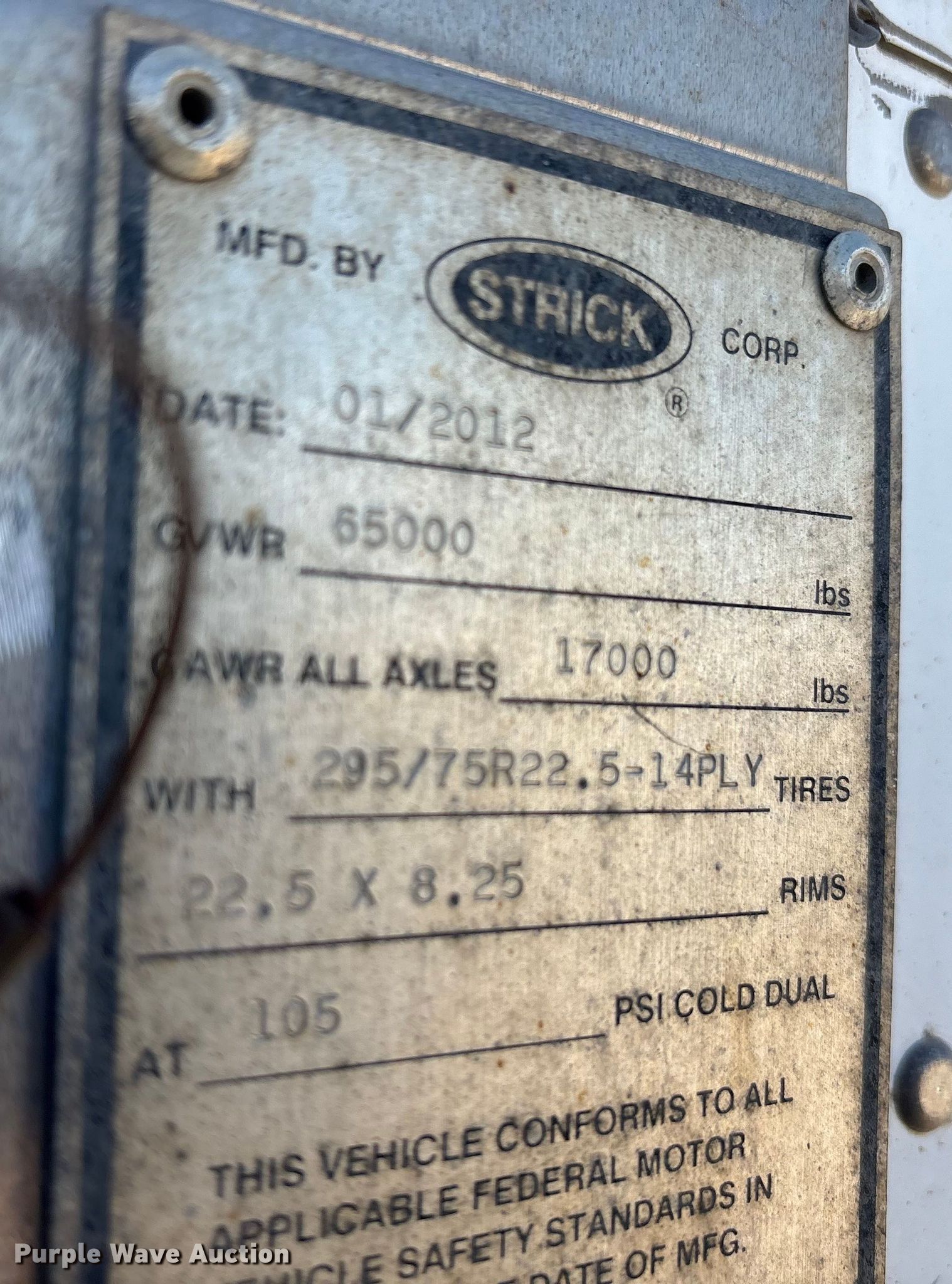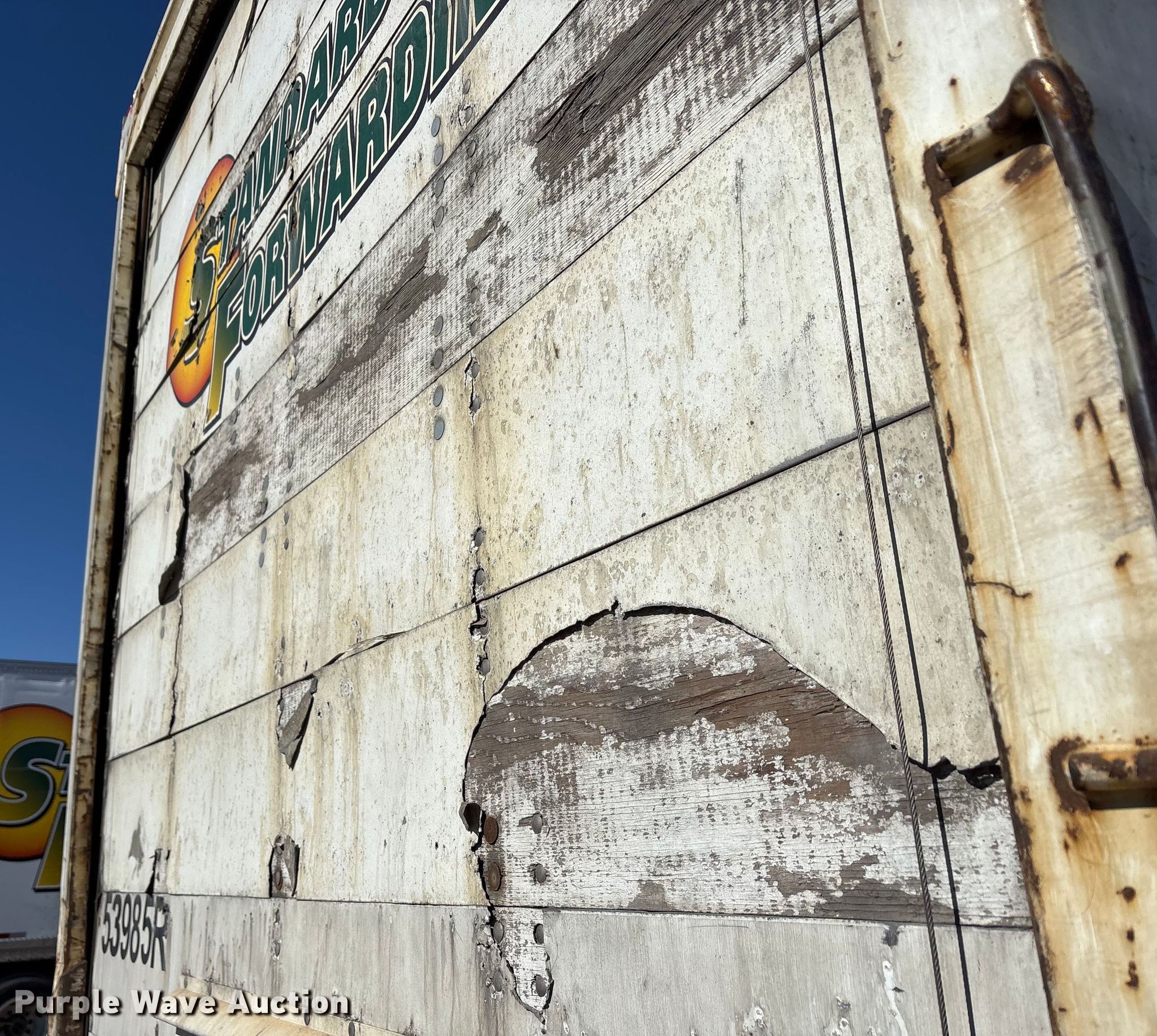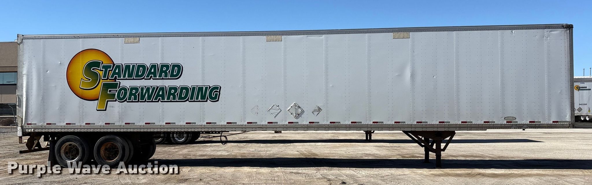 2013 Strick dry van trailer. VIN: 1S12E9534DE526247, Unit #: 53985R. Dimensions Overall Length: 53', Width: 102", Rear door / ramp Width: 93". Features Deck type: Wood, E-track rail system. Chassis Landing gear: Dual, Suspension: Spring, Brakes: Air, Axles: Tandem, GVWR: 65,000 lbs, GAWR: 17,000 lbs. Tires Steel wheels, Size: 295/75R22.5. Indiana title. Title distribution may be delayed up to 30 days from verification of funds. Standard Forwarding, LLC Strategic Fleet Realignment Sale - Open inspection April 20 from 9:00 a.m. to 3:00 p.m.. 2925 Morton Drive. East Moline, IL 61244